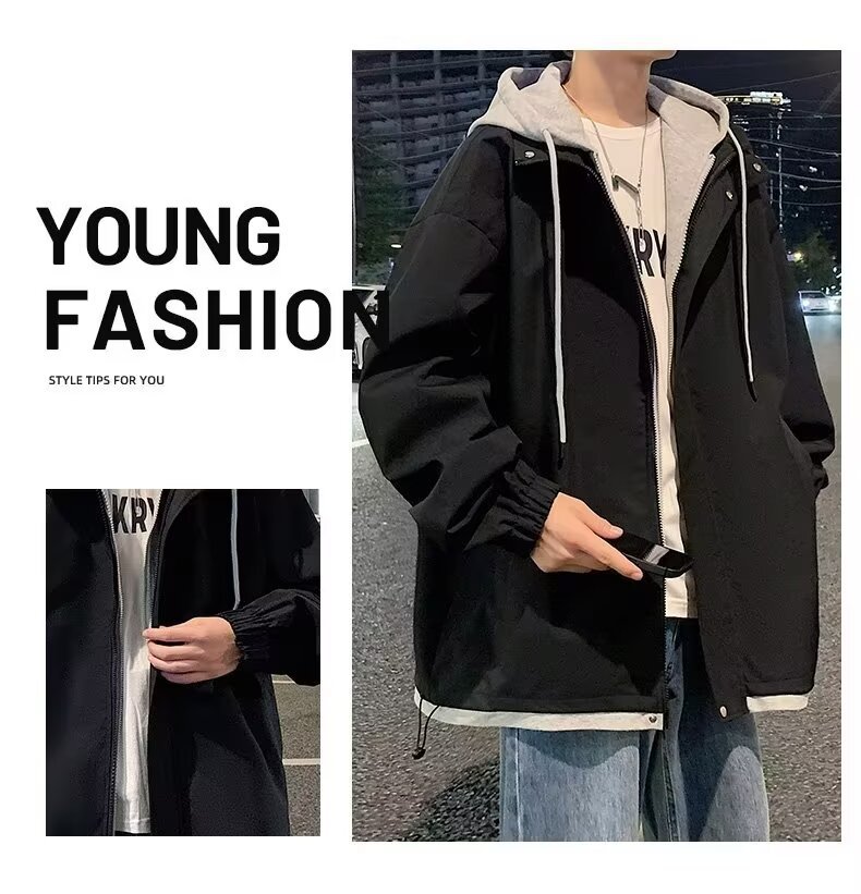 충전 재킷 남자 봄 트렌디 브랜드 툴링 홍콩 스타일 플럼 수트 핸섬 가짜 투피스 후드 루즈 방수 캐주얼 자켓