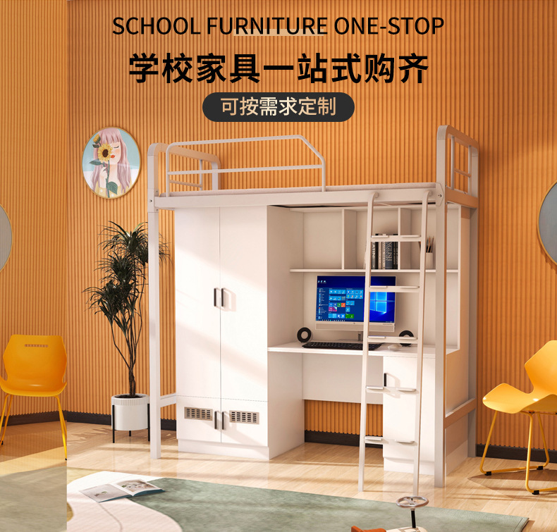 학교 기숙사 가구 전체 세트 고정/만든 철제 롯지 침대 위아래로 이층 침대 아파트 침대 테이블 및 의자 가구스토어 가기