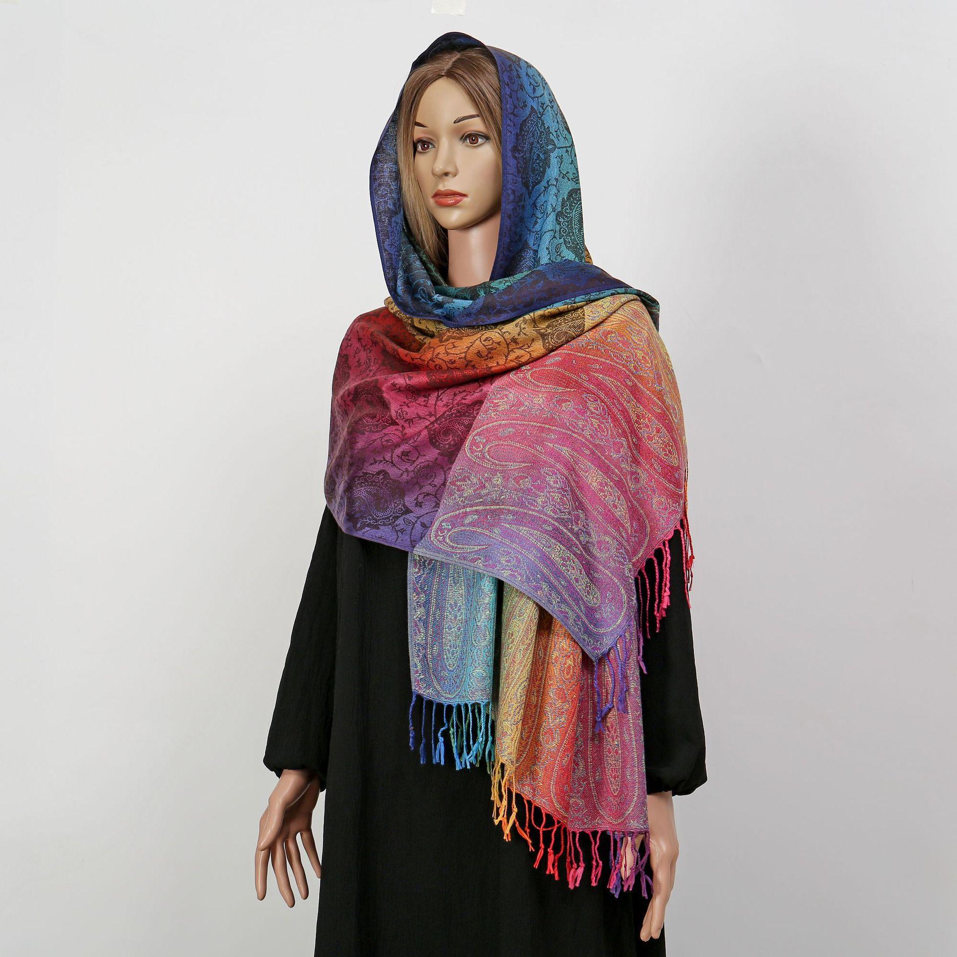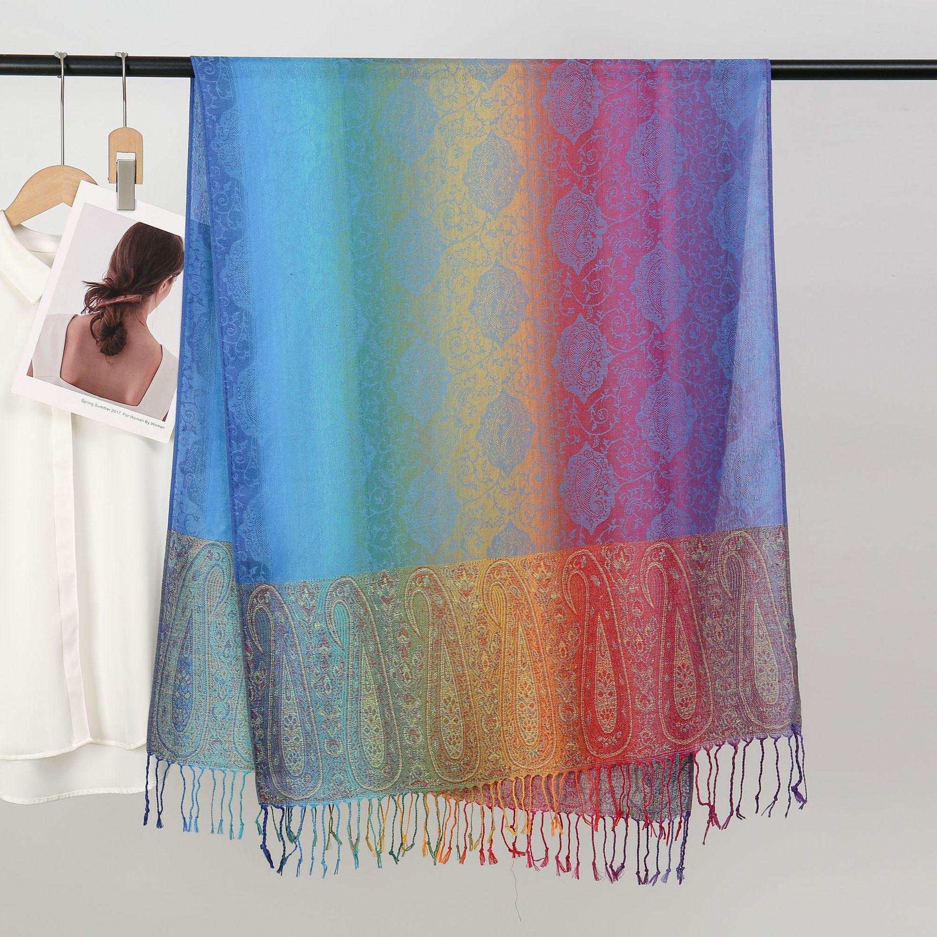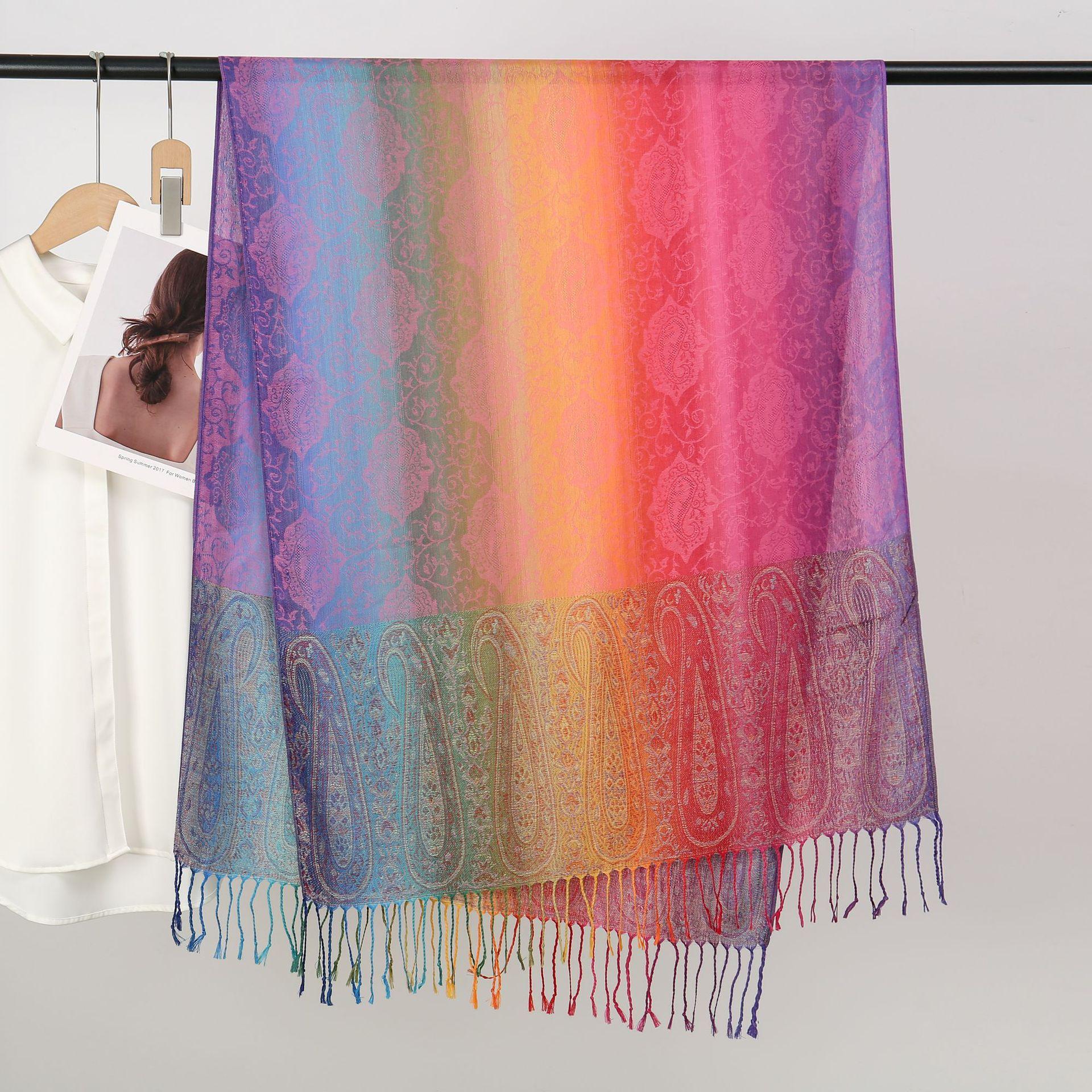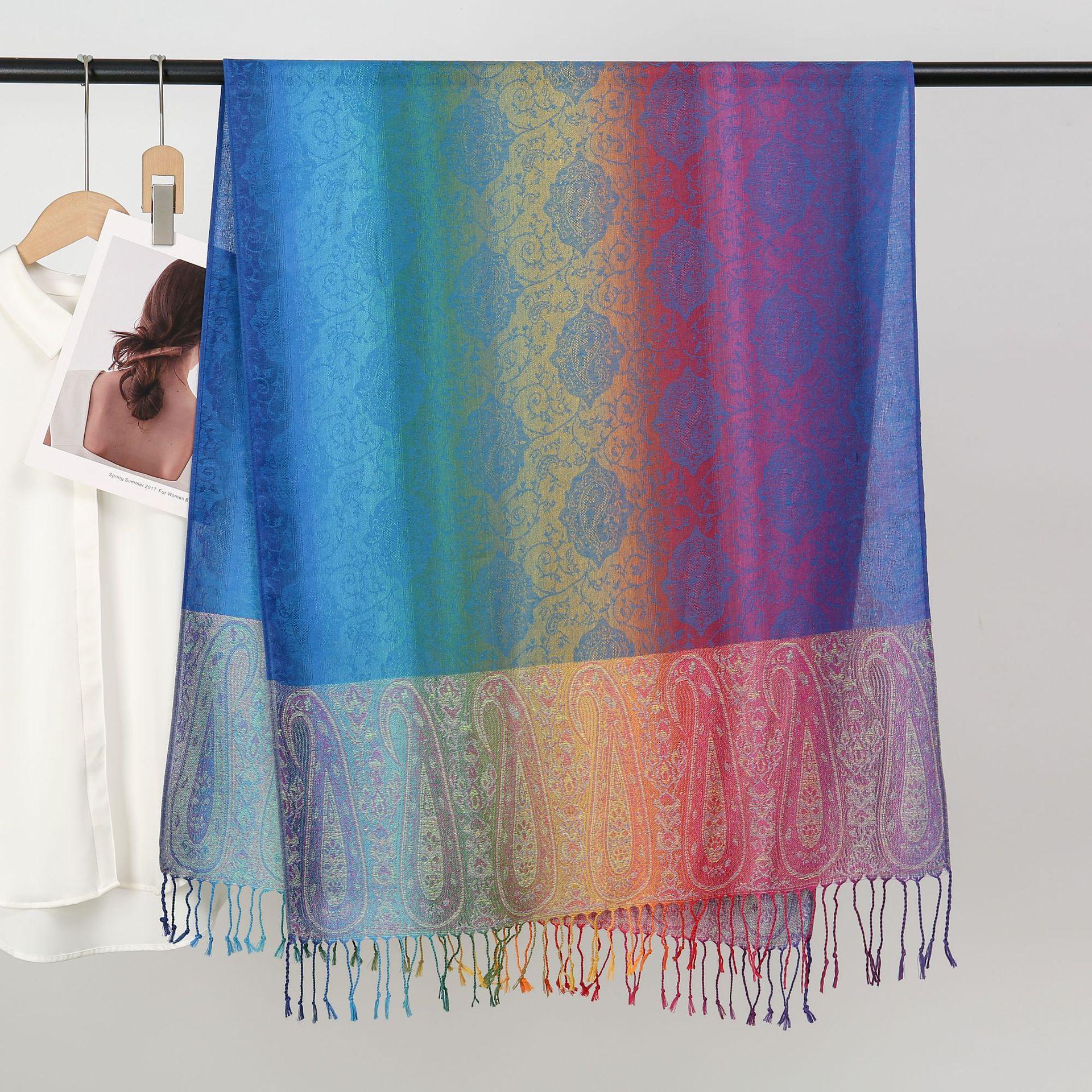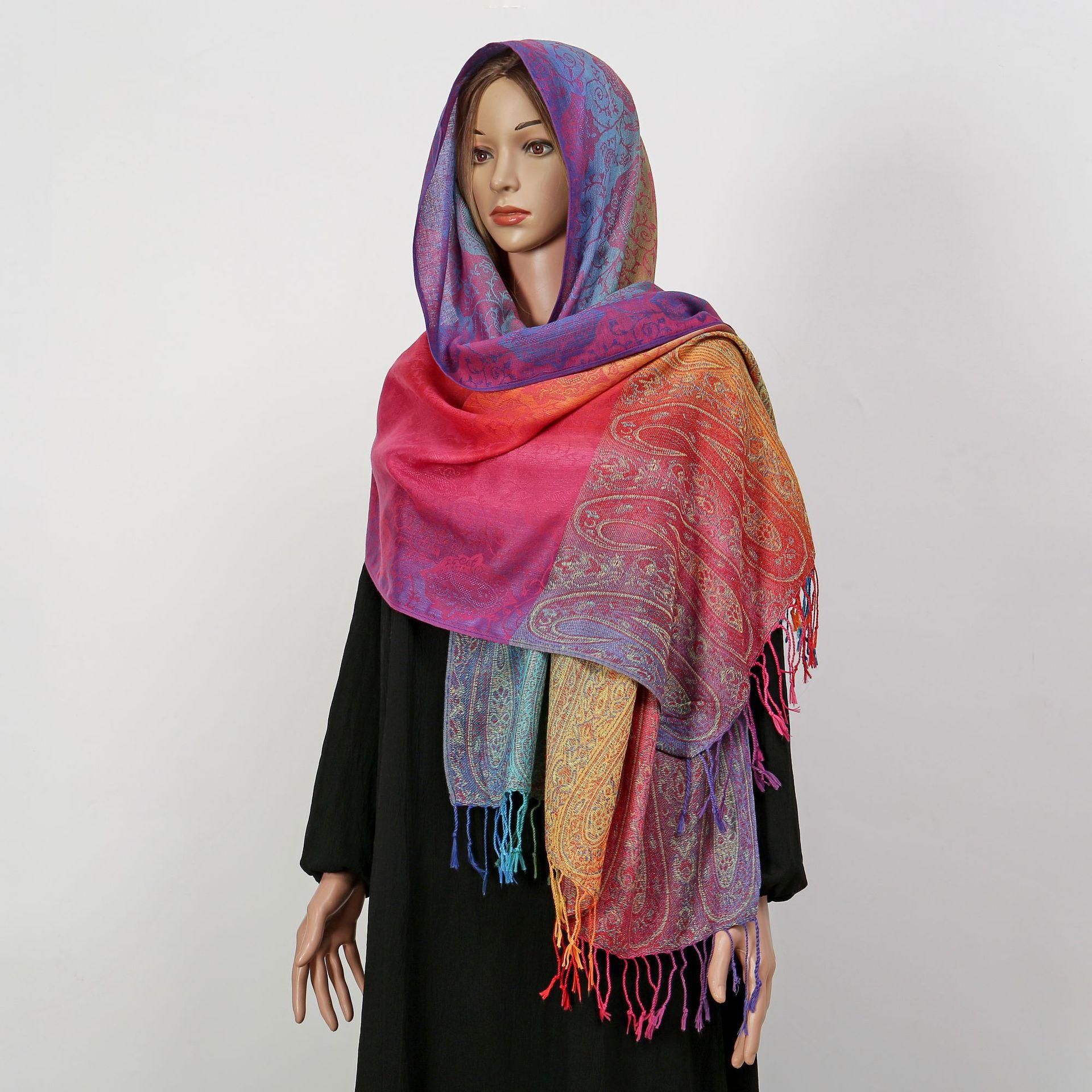 자카드 컬러 캐슈 롱 스카프 여행 사진 목도리 이중 사용 스카프 여성 민족 스타일 선 스크린 믹스 앤 매치 스카프스토어 가기