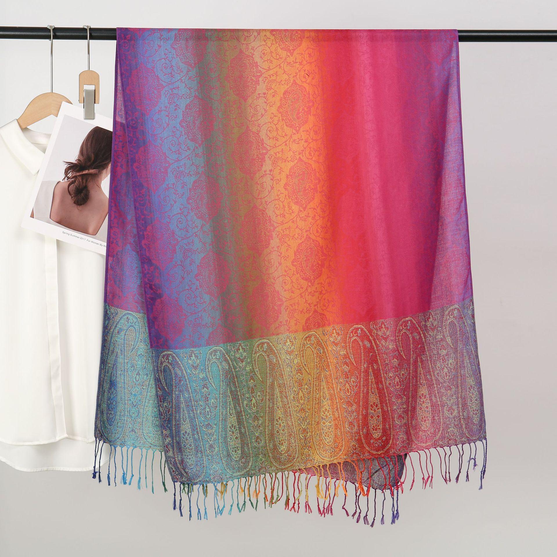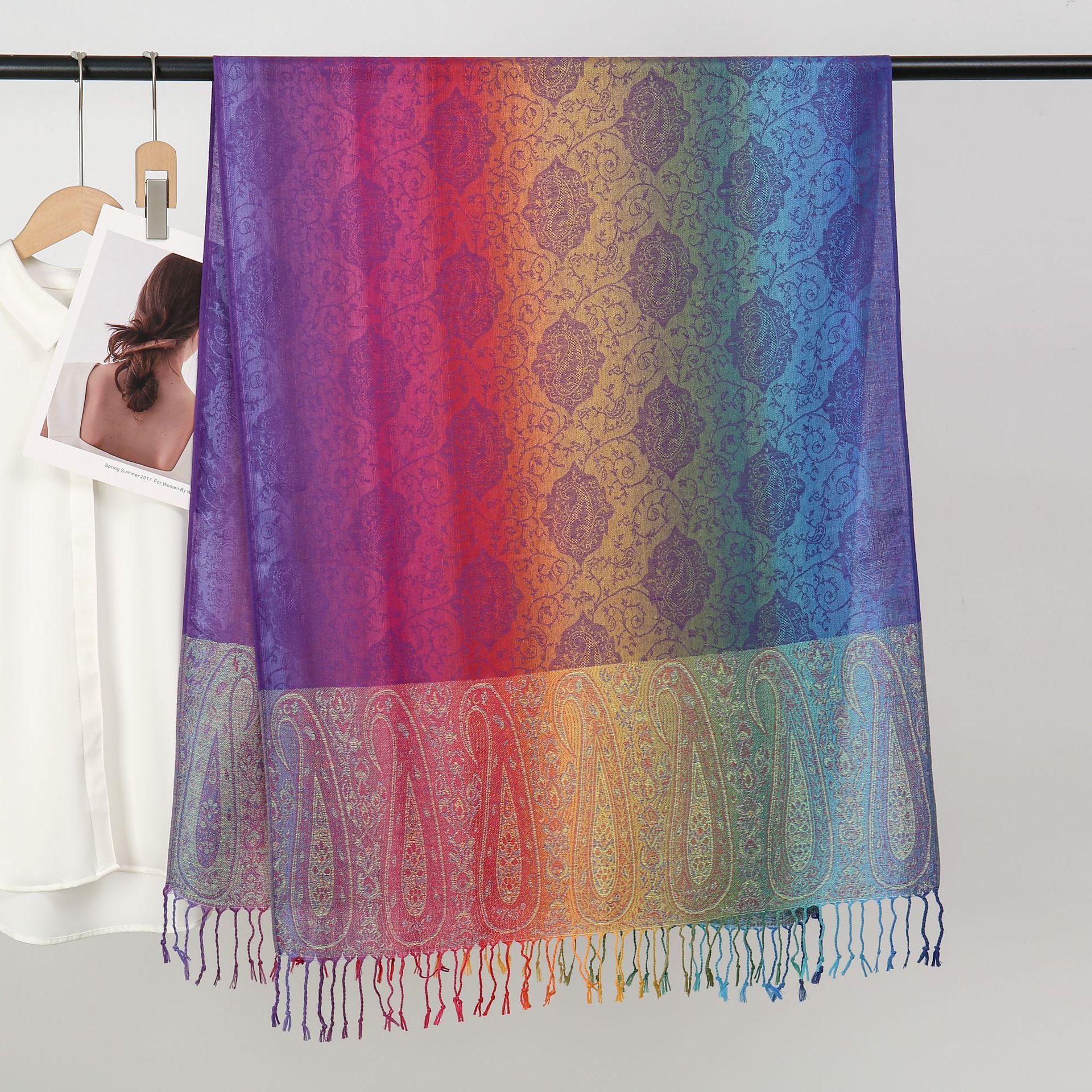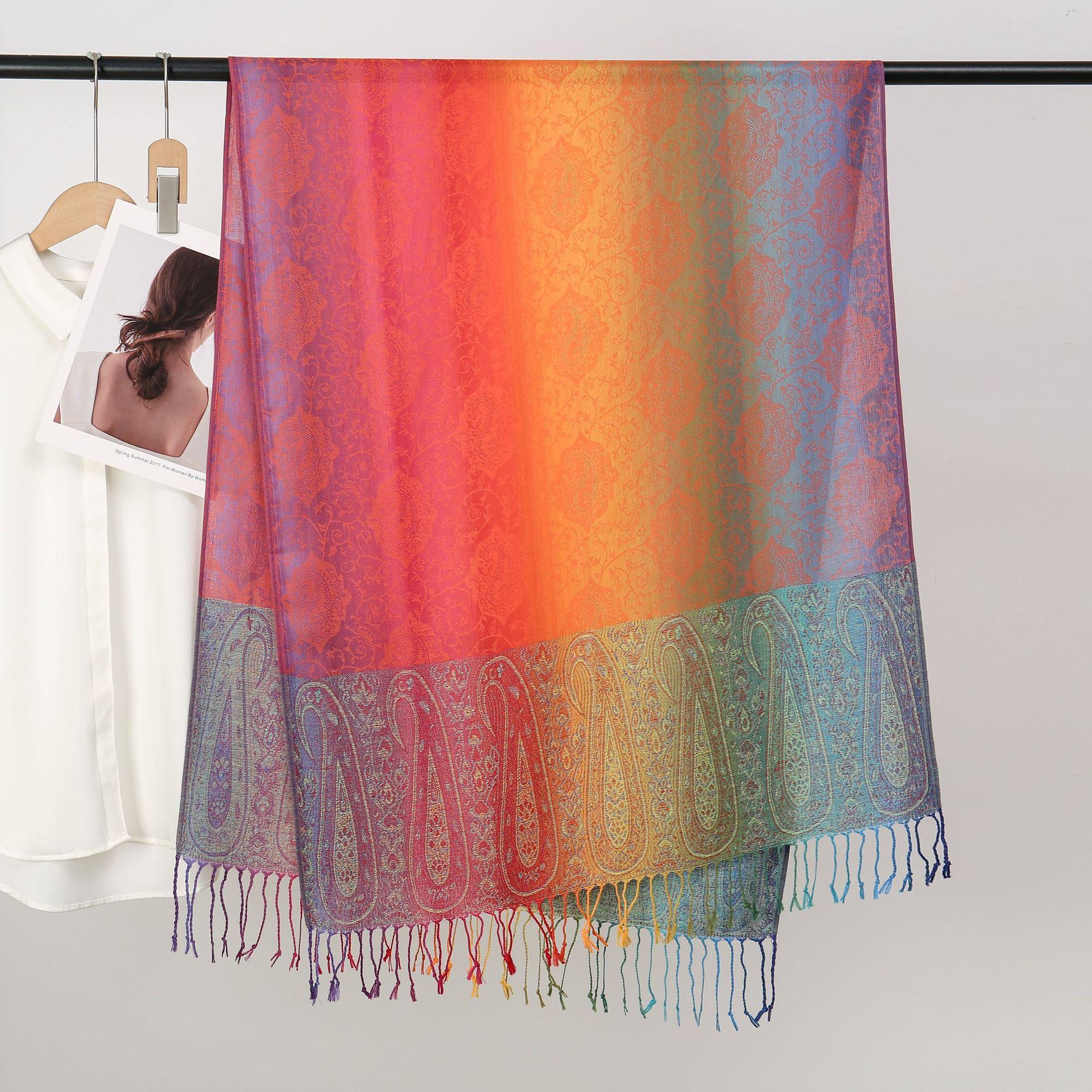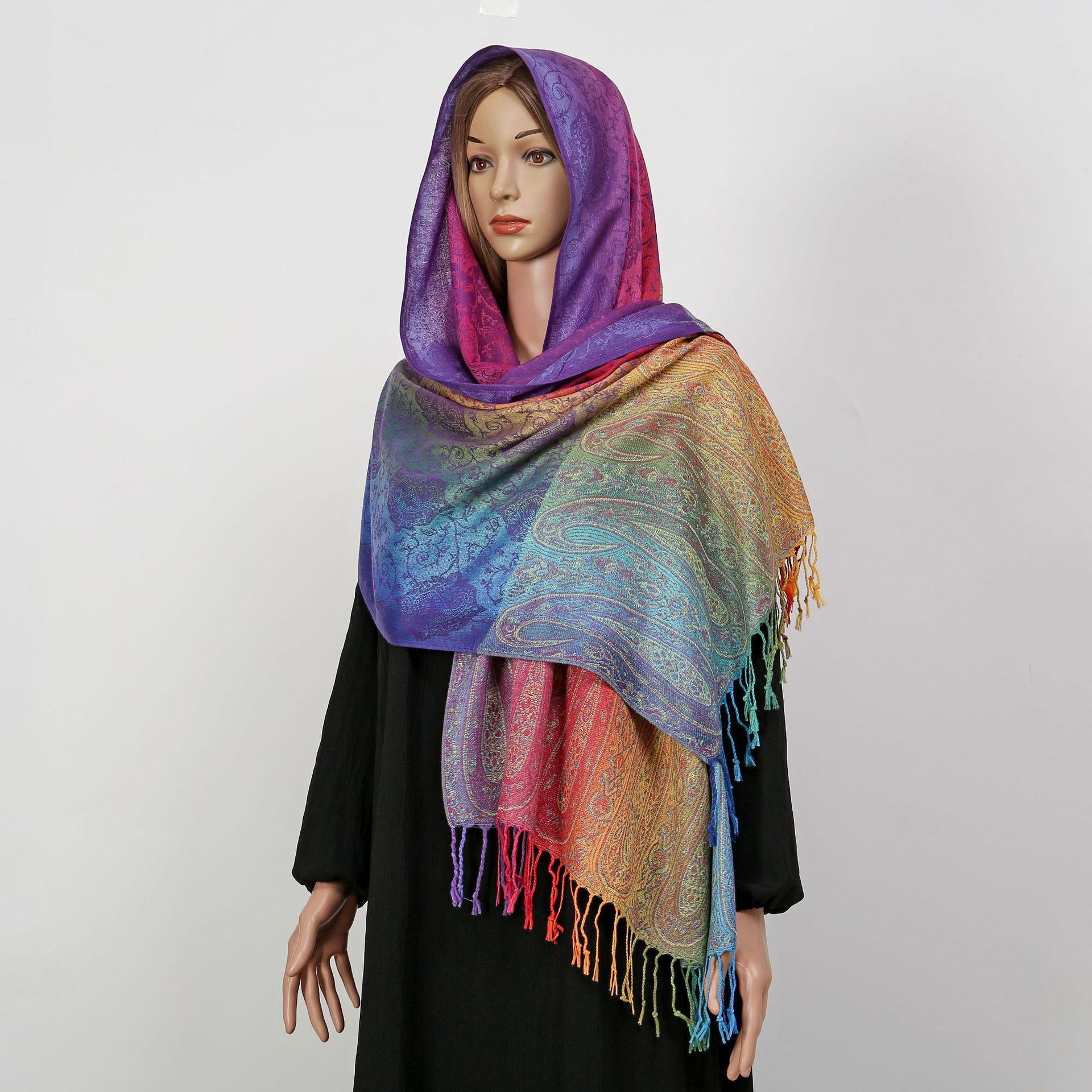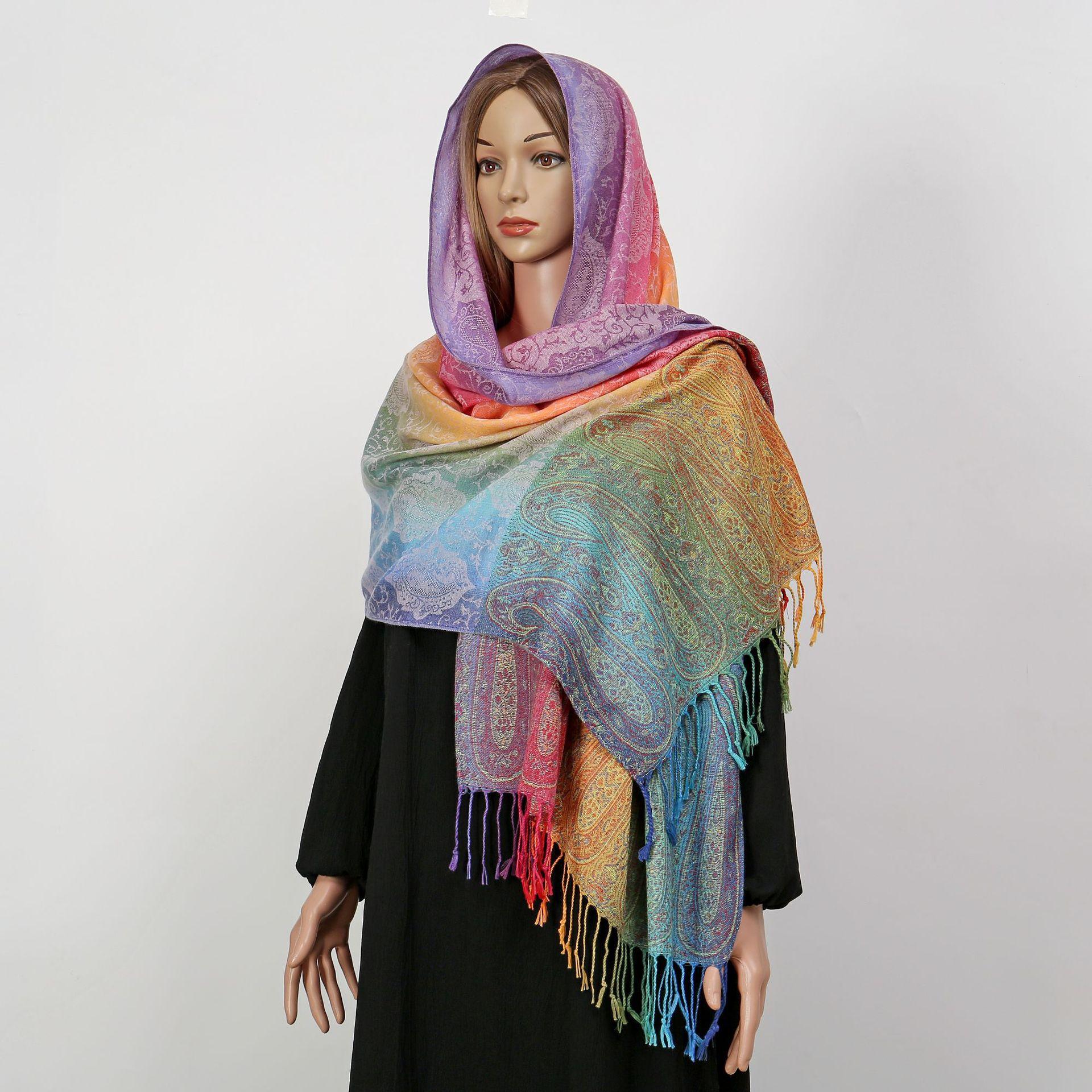 자카드 컬러 캐슈 롱 스카프 여행 사진 목도리 이중 사용 스카프 여성 민족 스타일 선 스크린 믹스 앤 매치 스카프스토어 가기