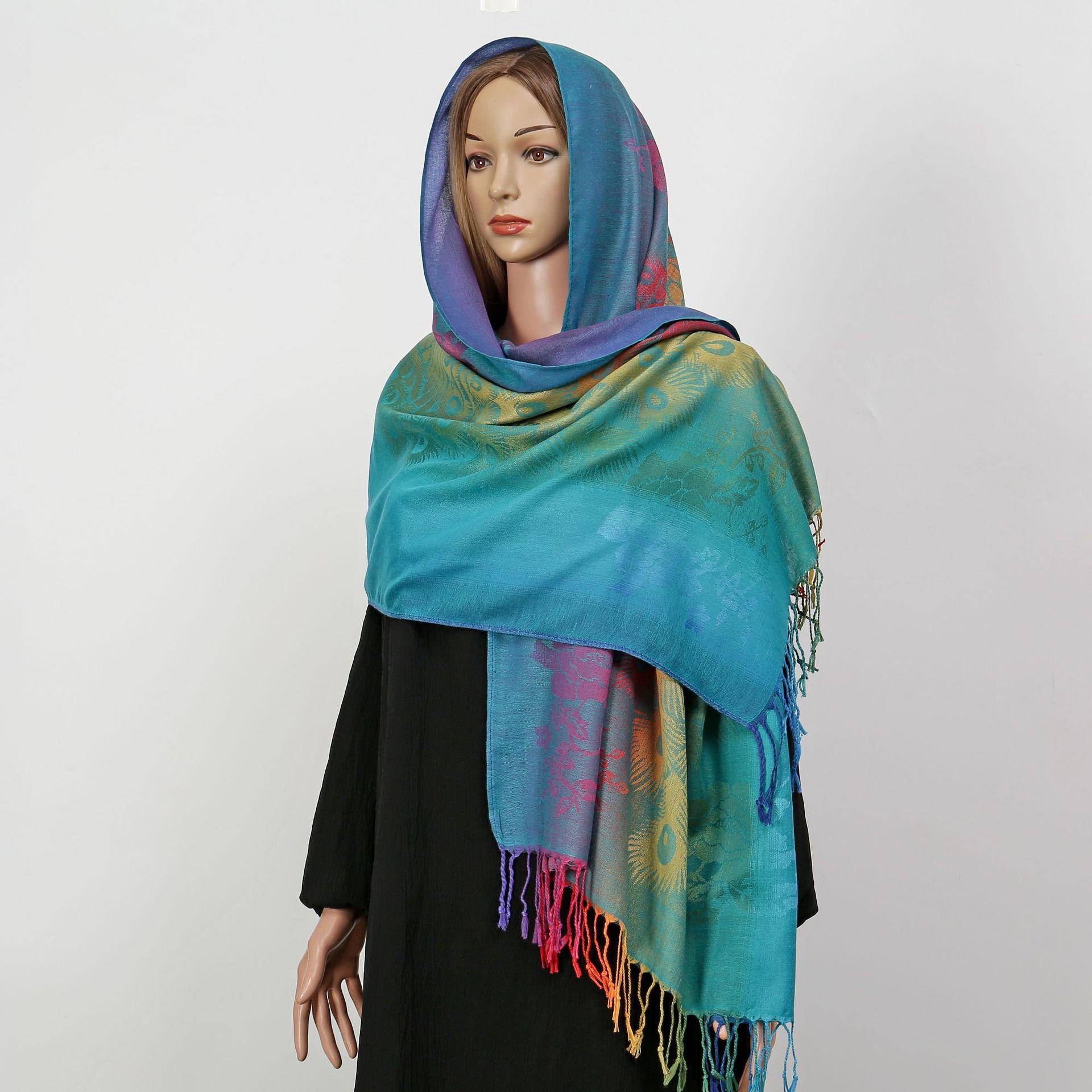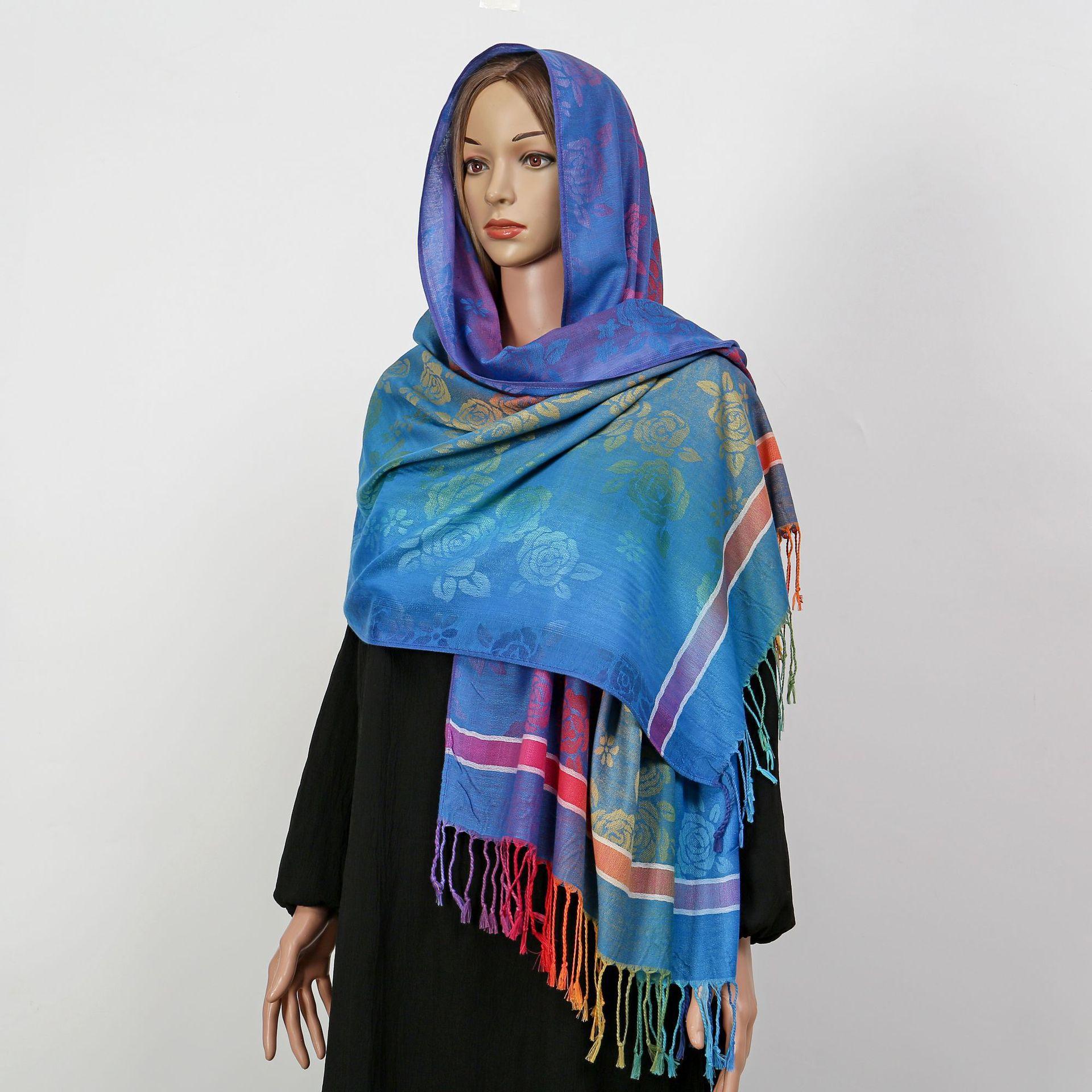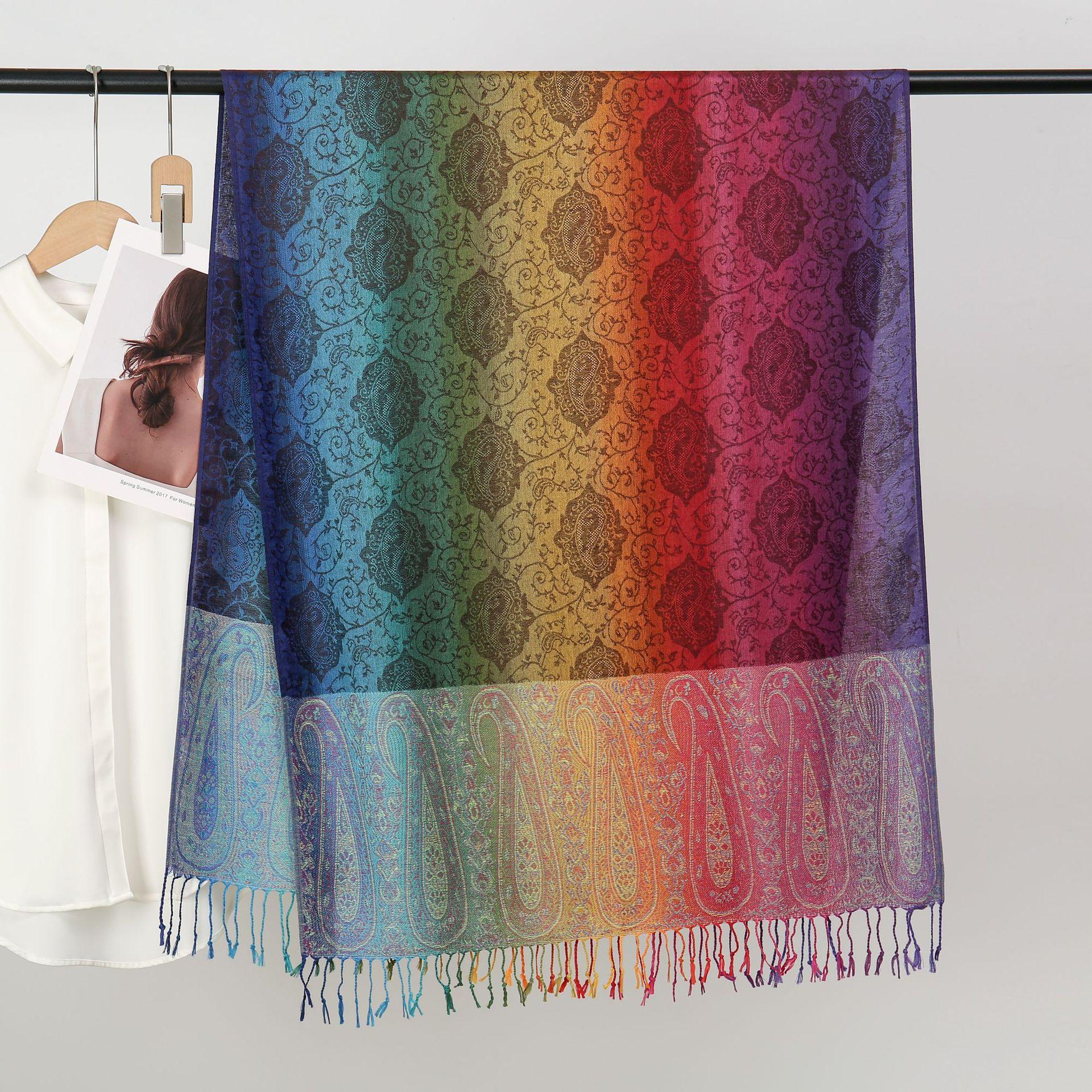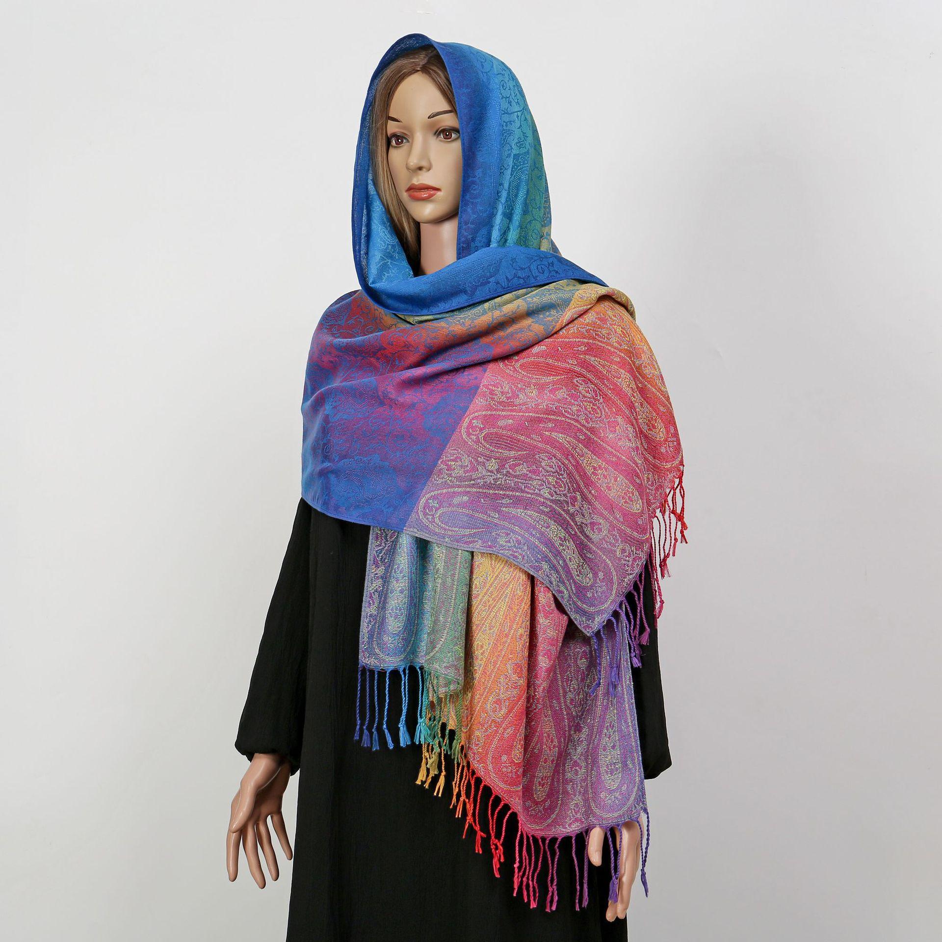 자카드 컬러 캐슈 롱 스카프 여행 사진 목도리 이중 사용 스카프 여성 민족 스타일 선 스크린 믹스 앤 매치 스카프스토어 가기