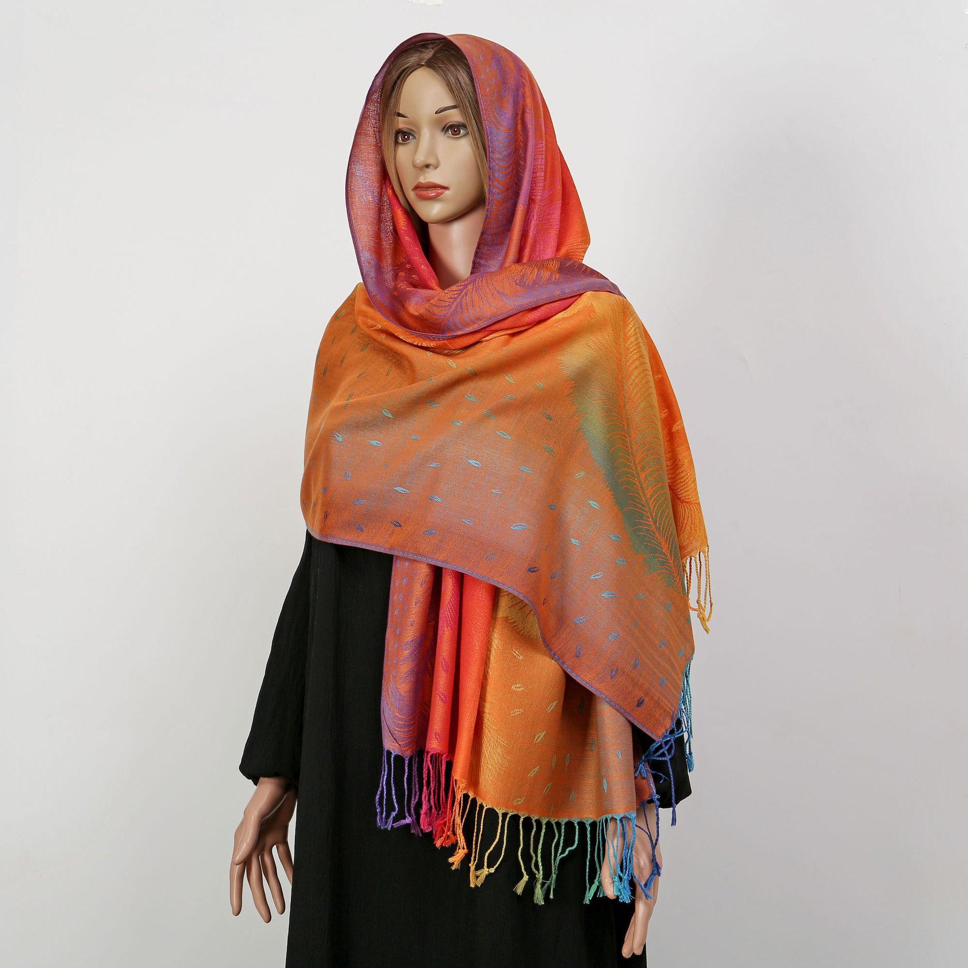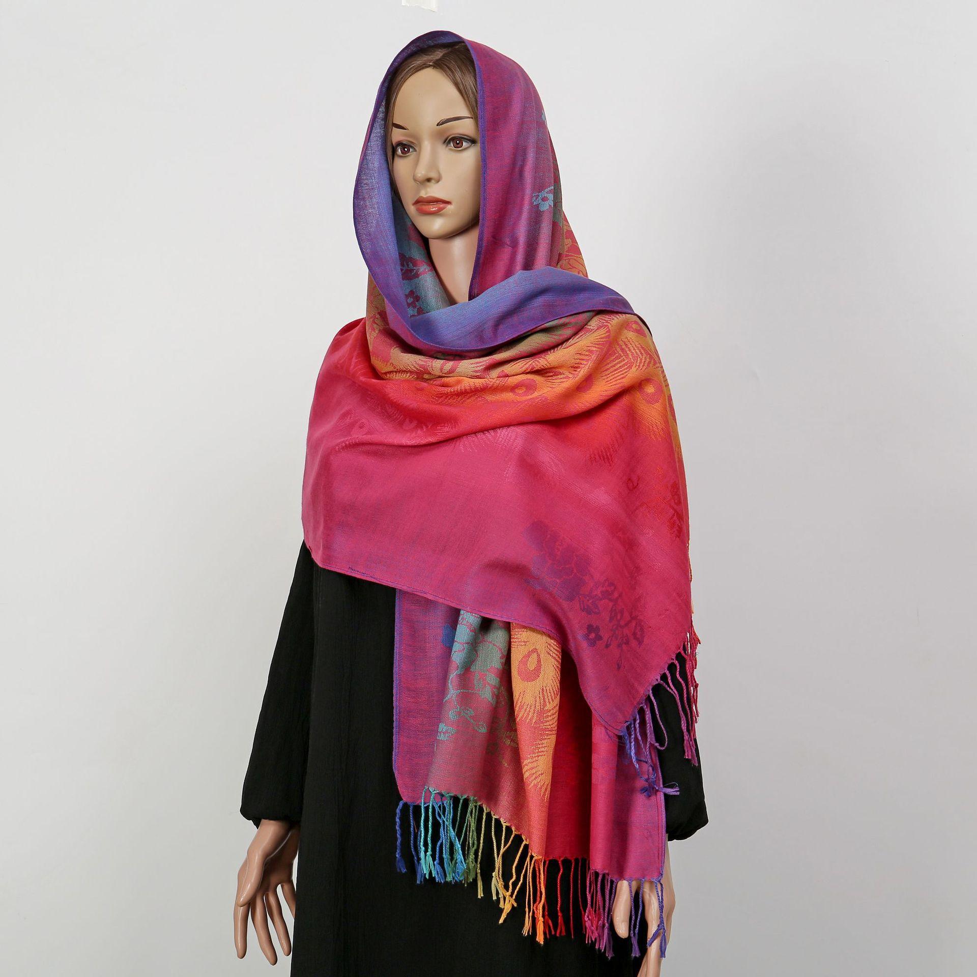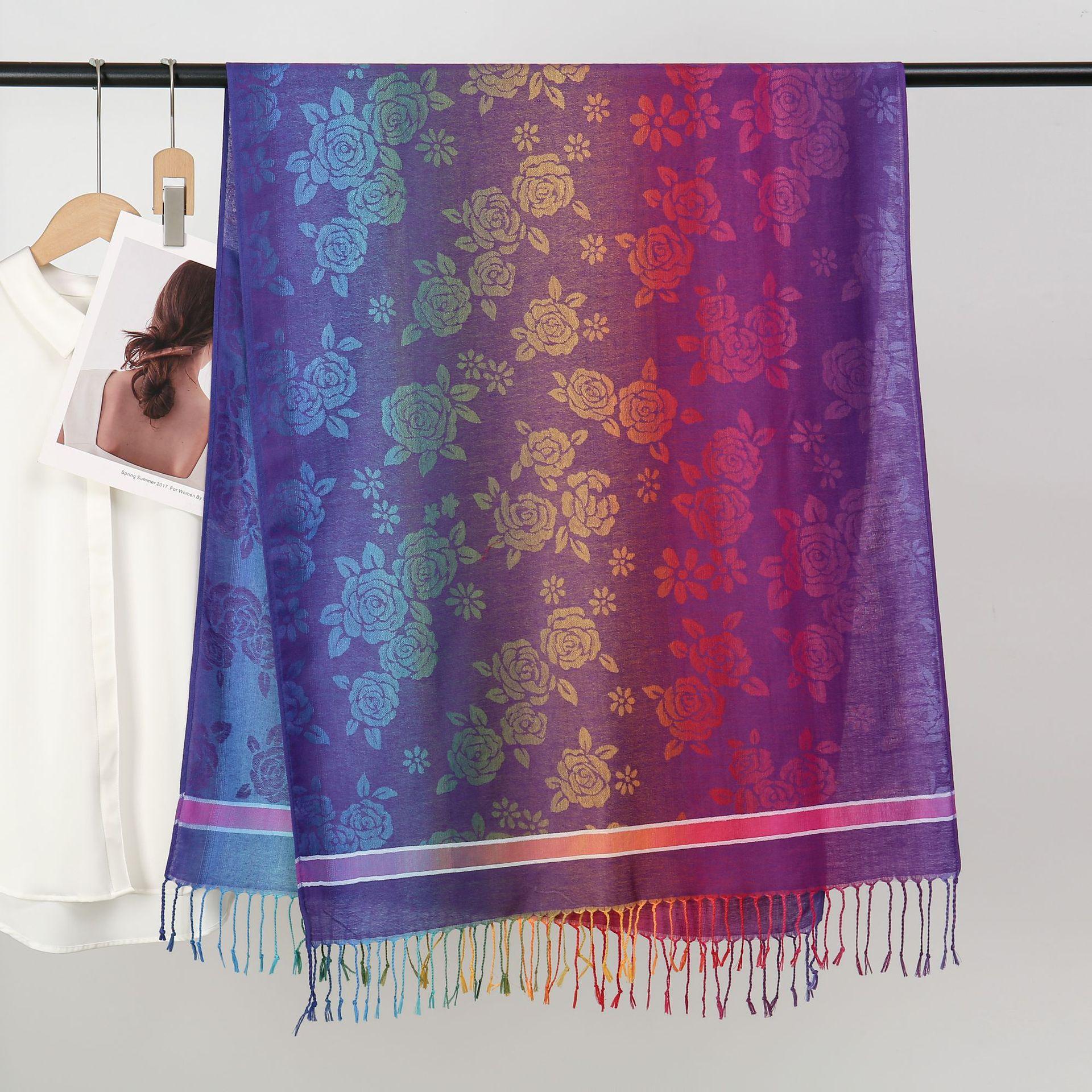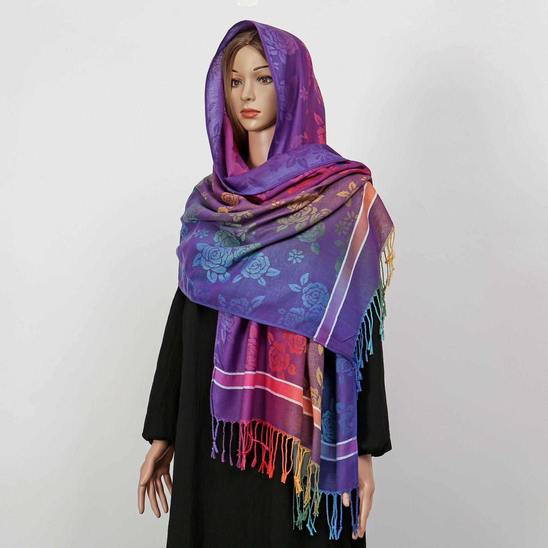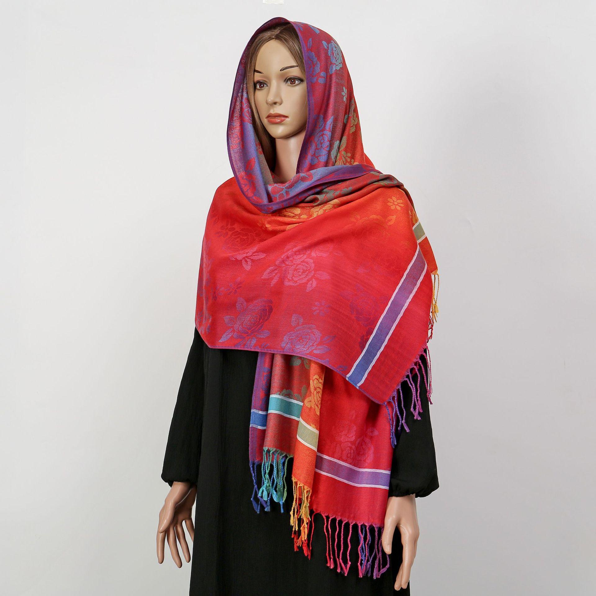 자카드 컬러 캐슈 롱 스카프 여행 사진 목도리 이중 사용 스카프 여성 민족 스타일 선 스크린 믹스 앤 매치 스카프스토어 가기