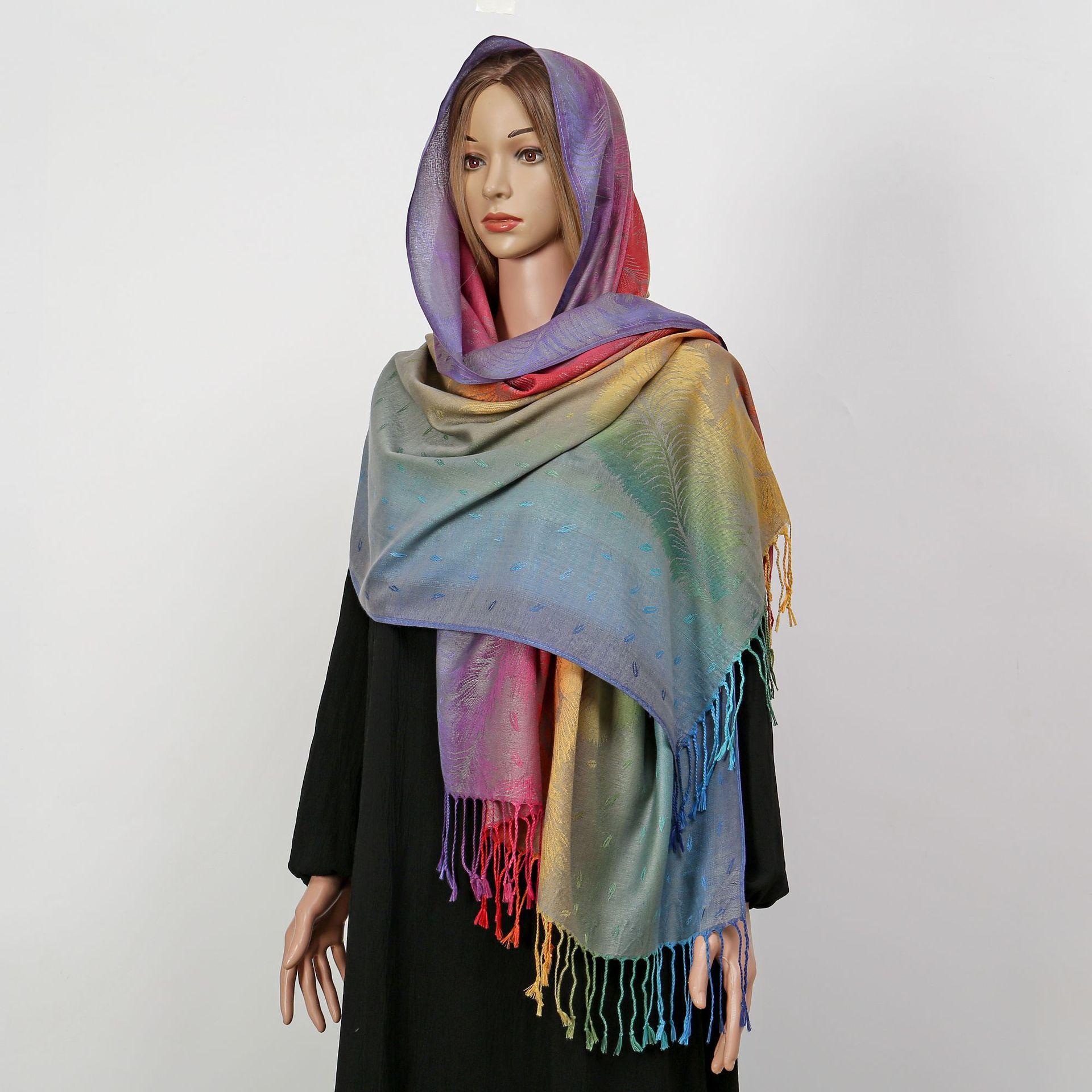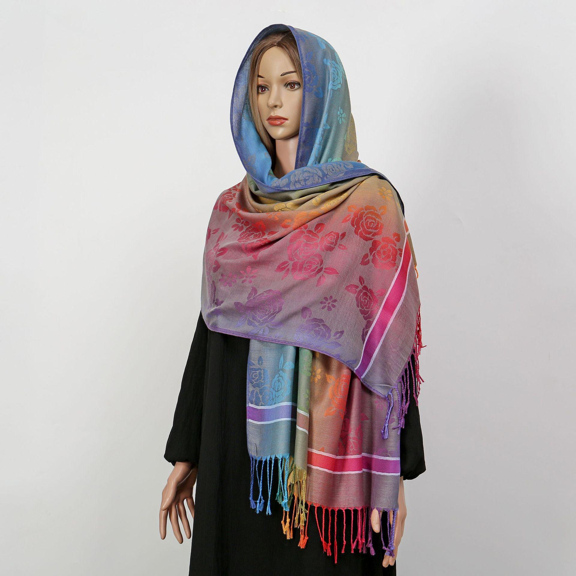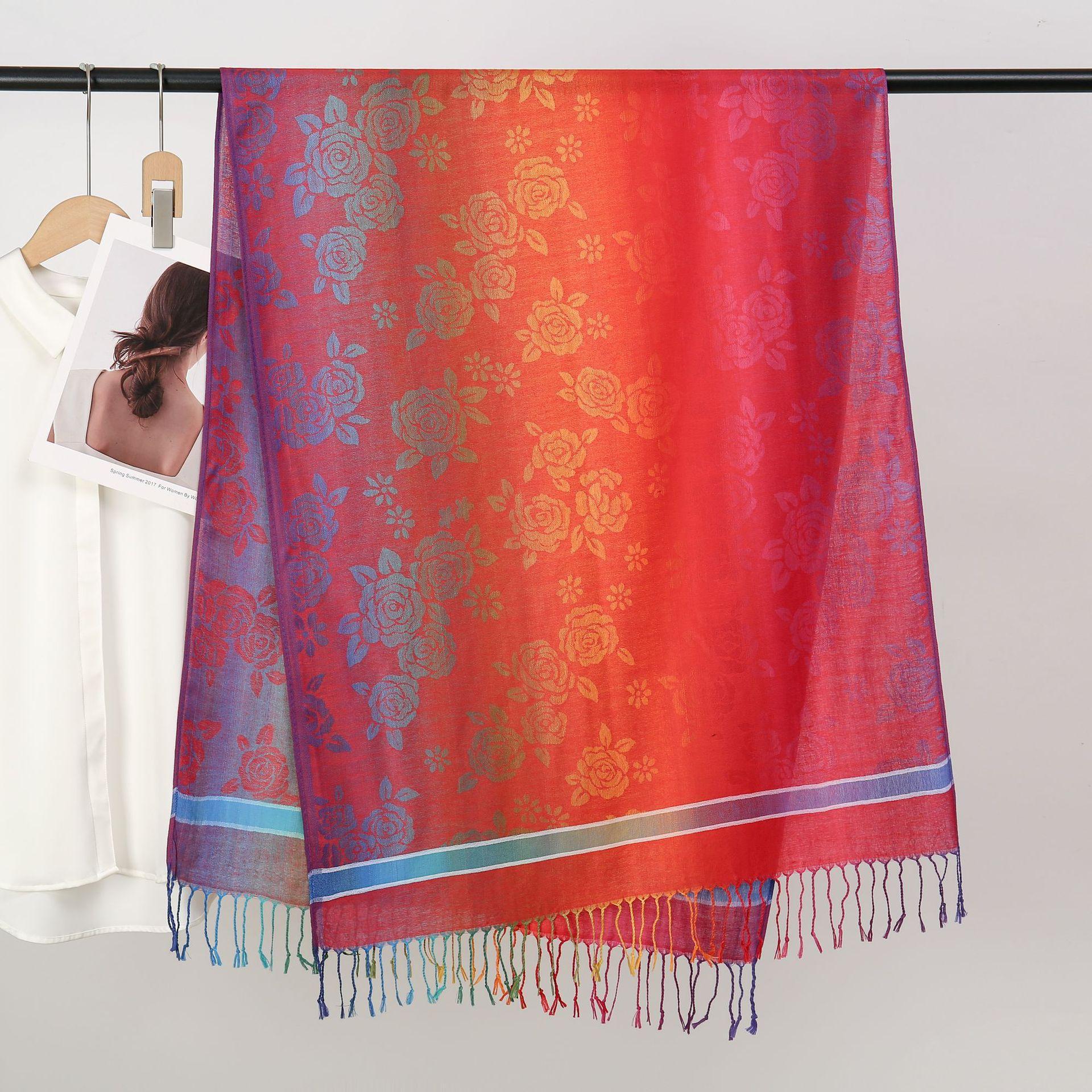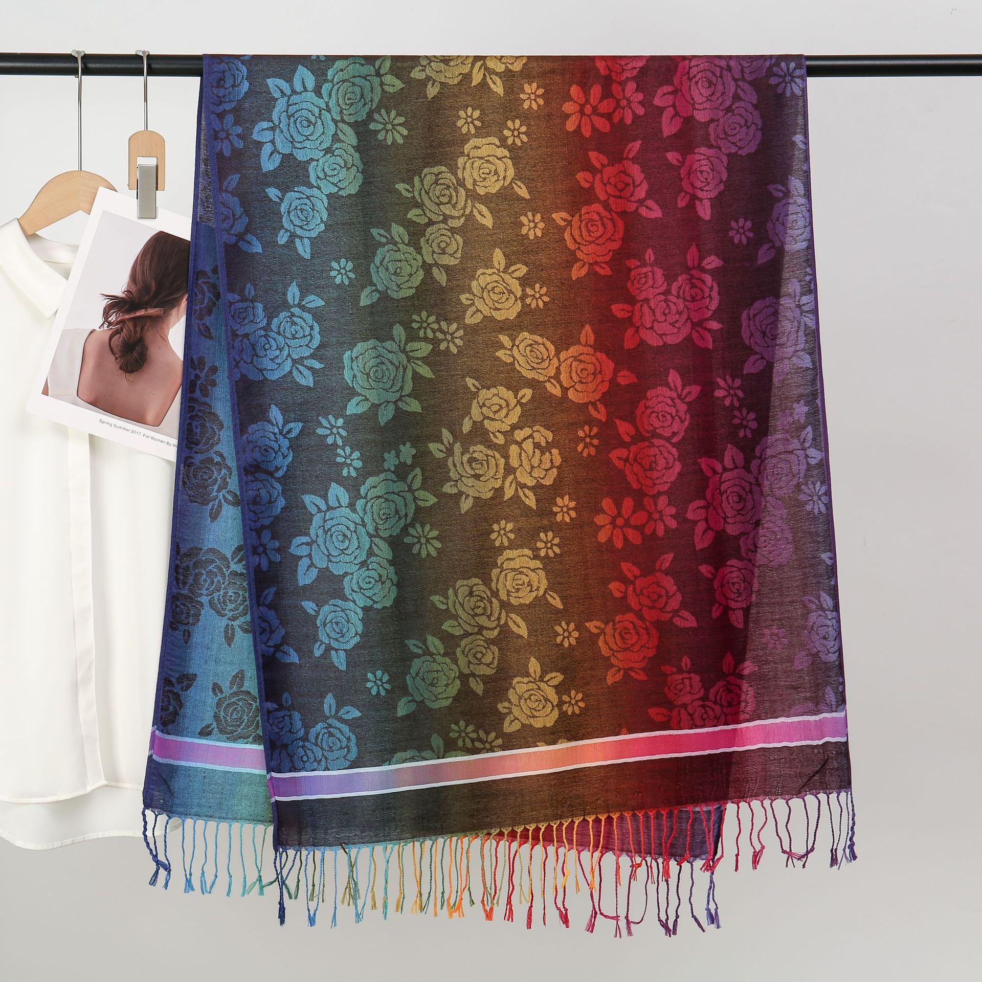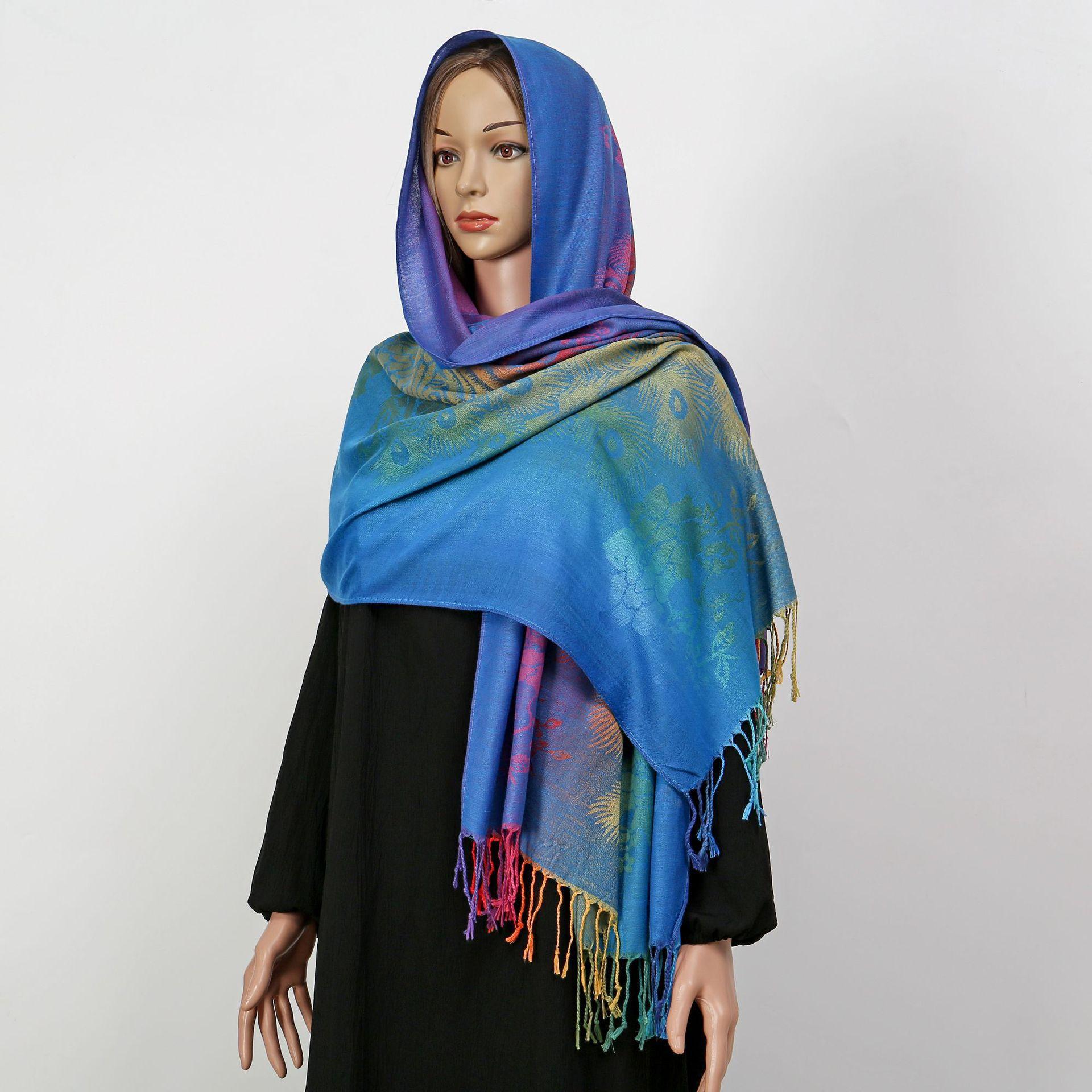 자카드 컬러 캐슈 롱 스카프 여행 사진 목도리 이중 사용 스카프 여성 민족 스타일 선 스크린 믹스 앤 매치 스카프스토어 가기