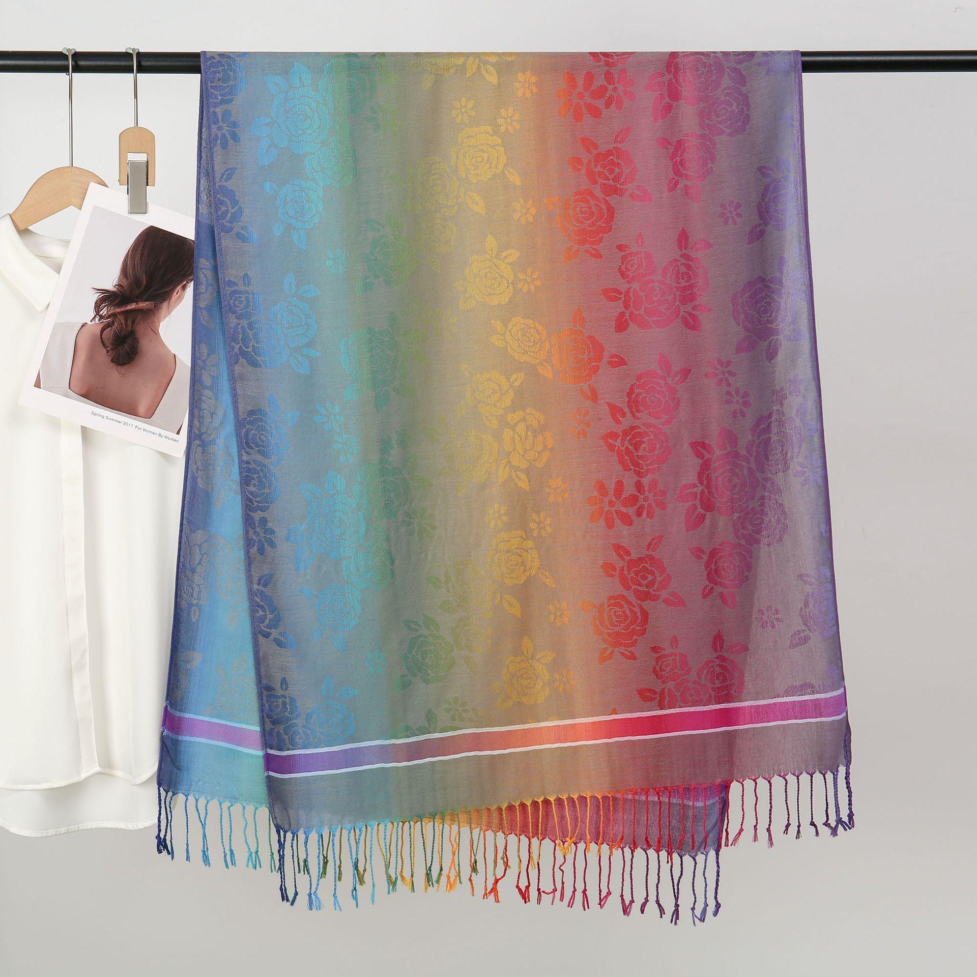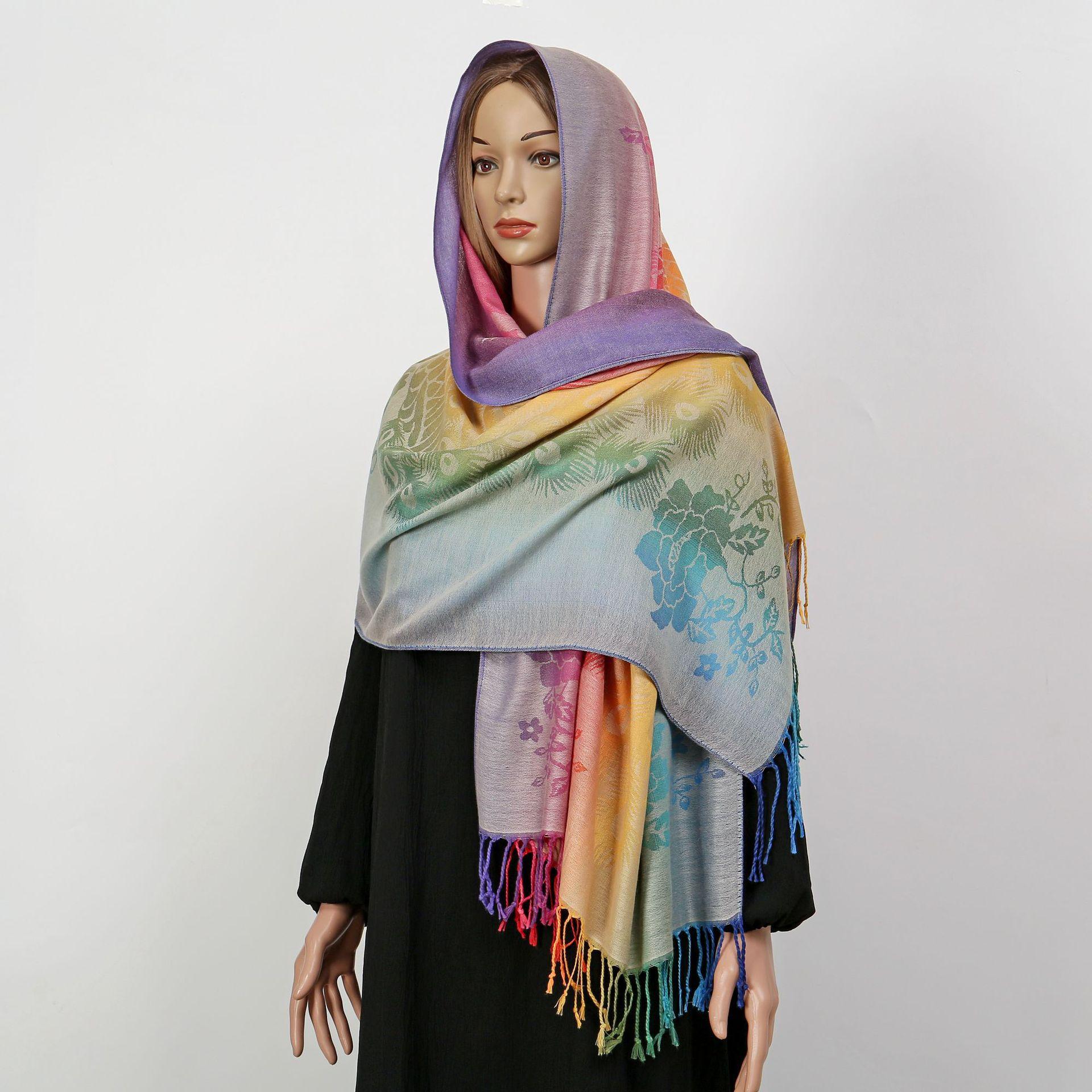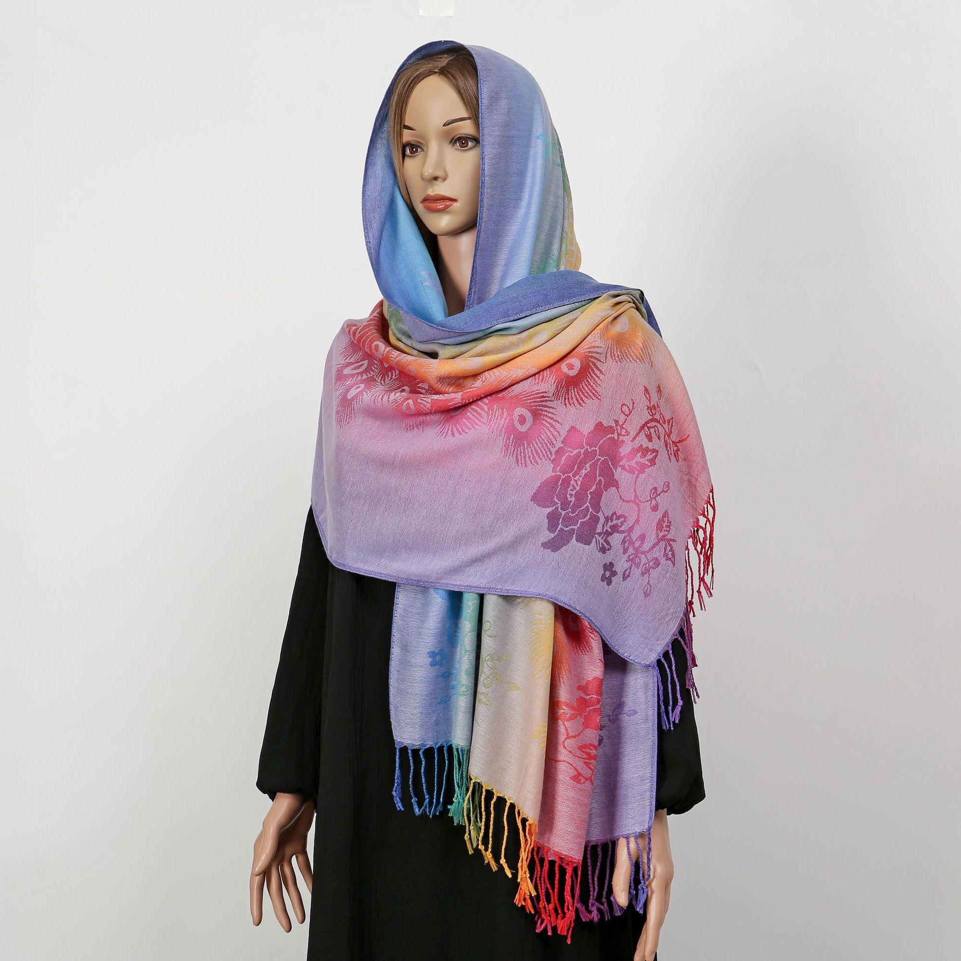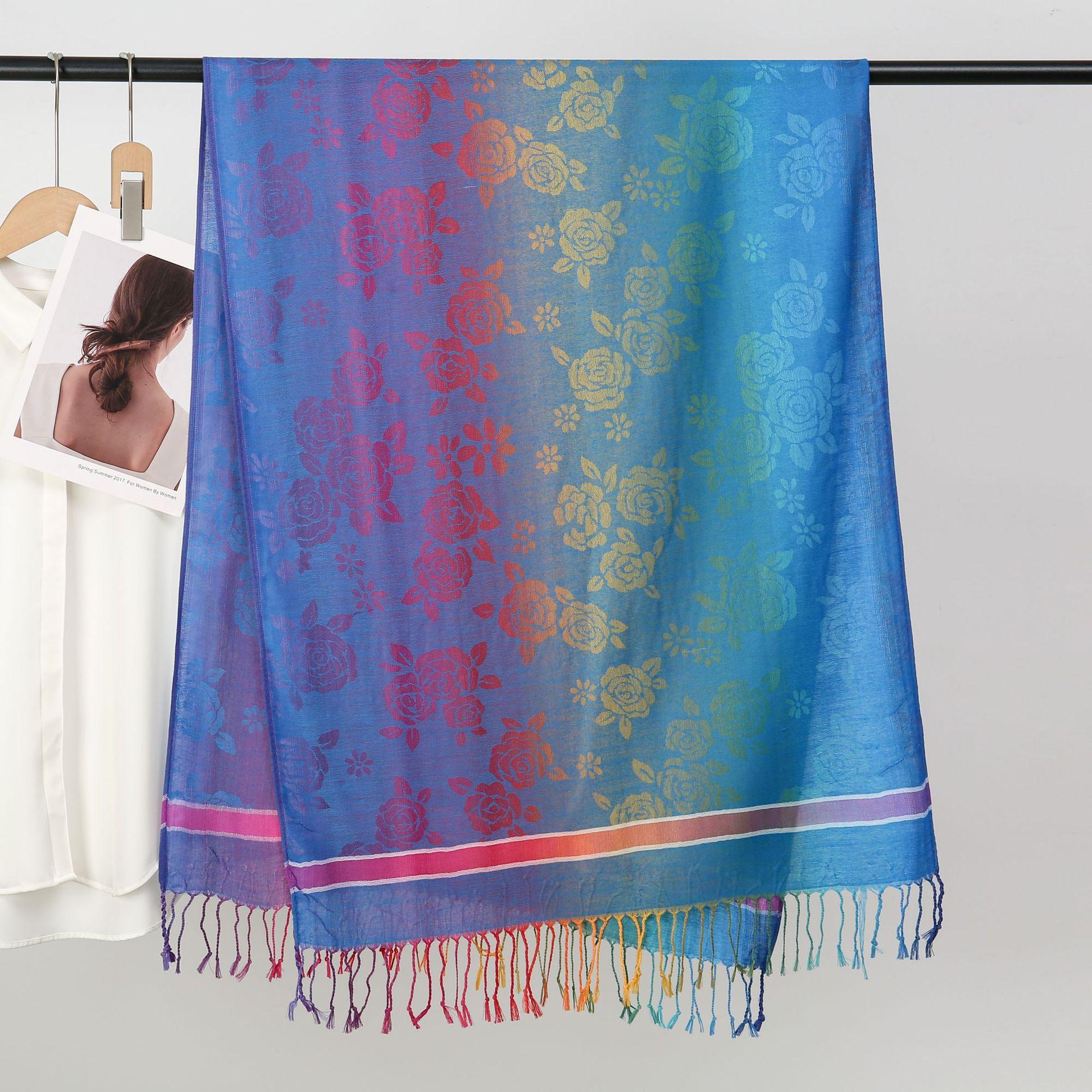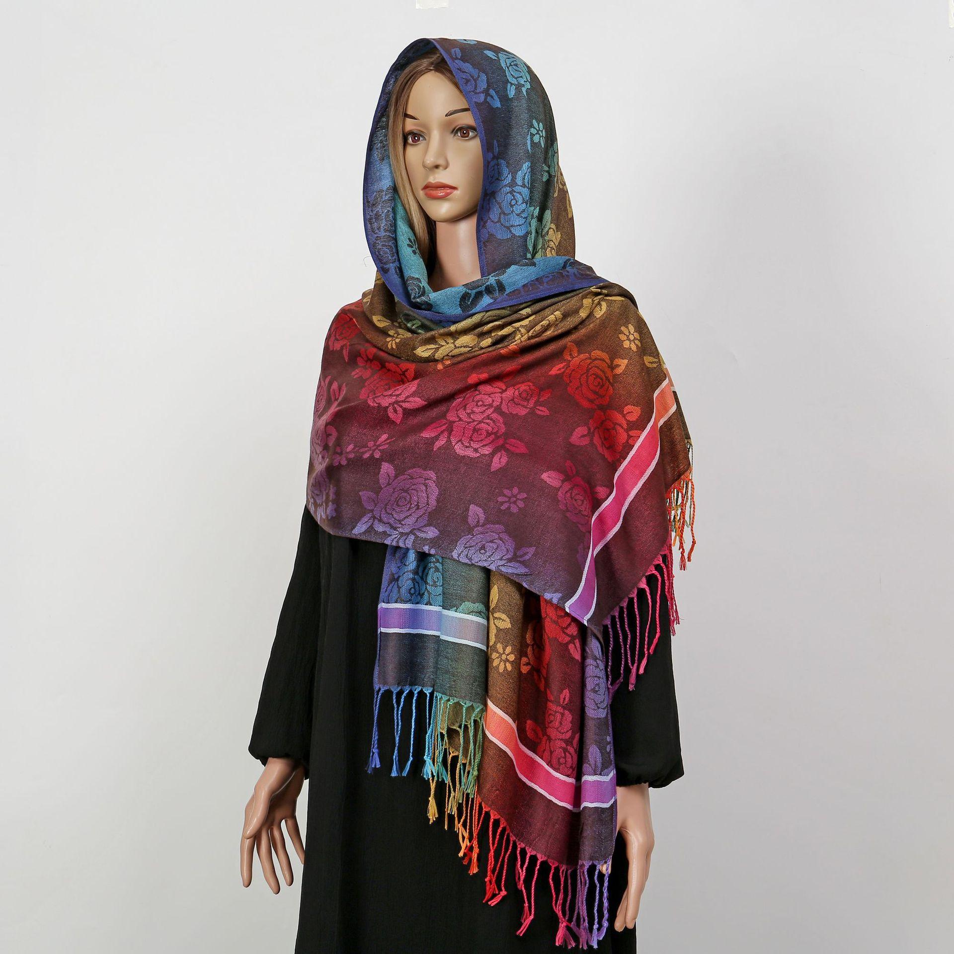 자카드 컬러 캐슈 롱 스카프 여행 사진 목도리 이중 사용 스카프 여성 민족 스타일 선 스크린 믹스 앤 매치 스카프스토어 가기