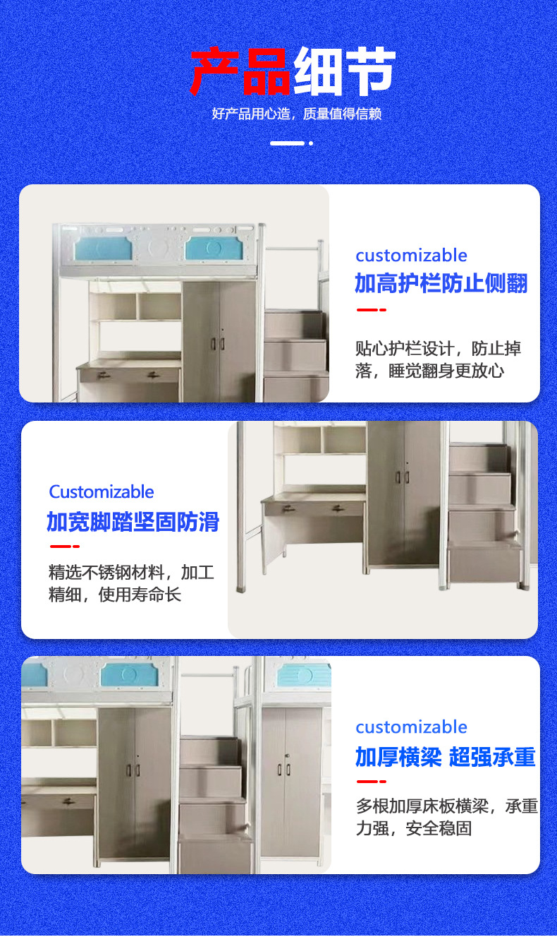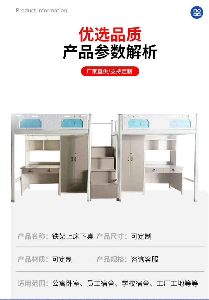 대학생 기숙사 침대, 청년호스텔 이층침대, 철제와 목재 결합 이층침대, 맞춤 제작 가능
