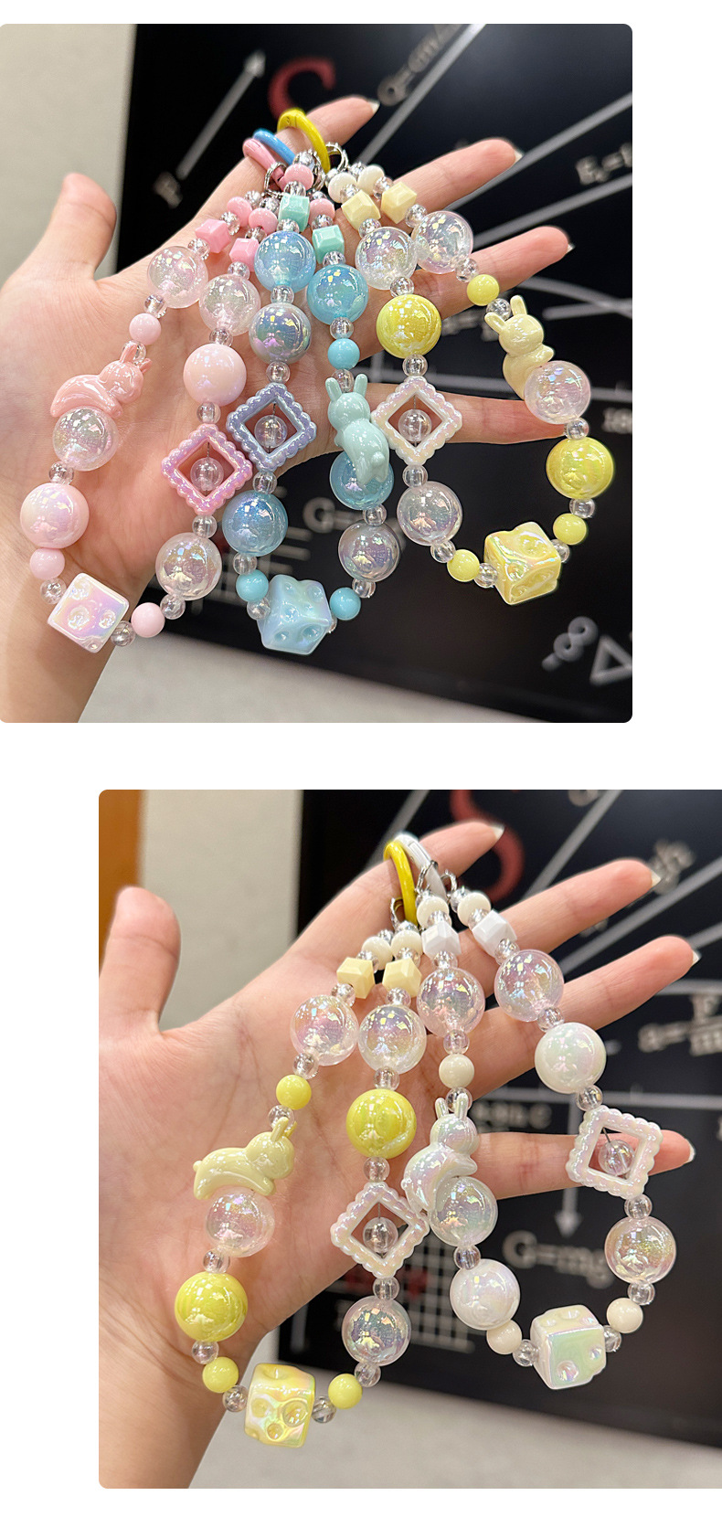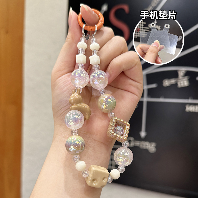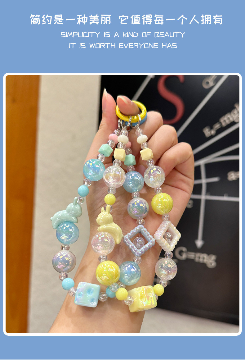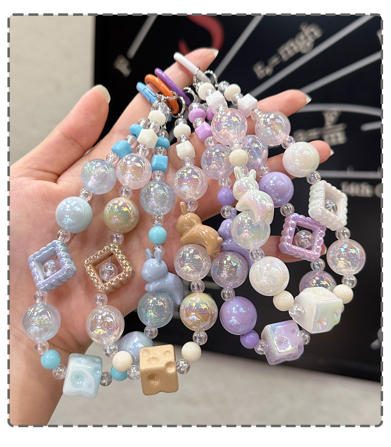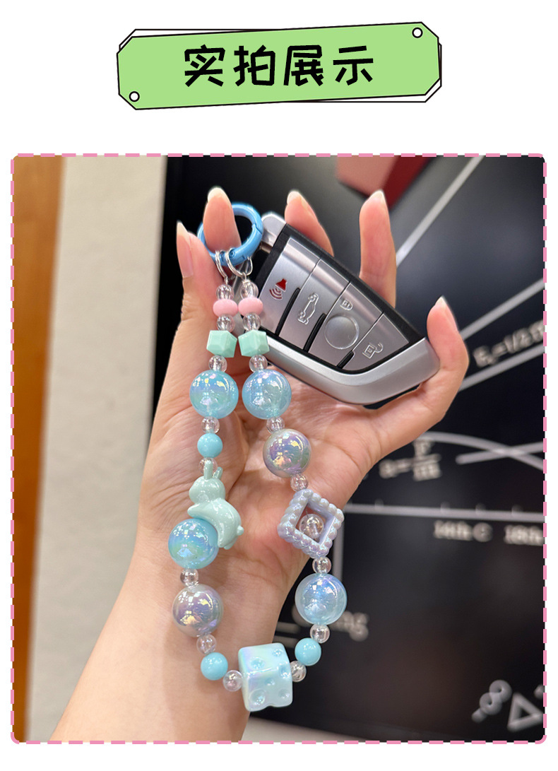 창조적 인 아크릴 토끼 구슬 키 체인 소녀 팔찌 키 펜던트 휴대 전화 체인 구슬 보석 diy