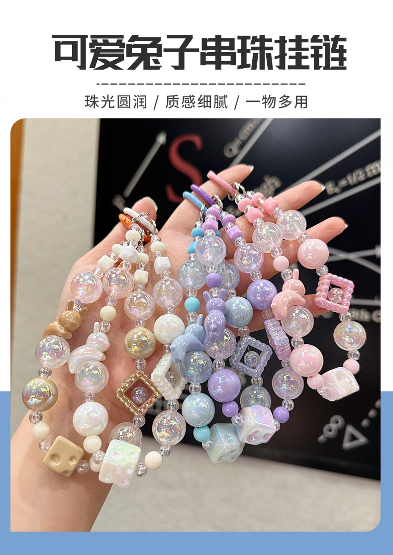 창조적 인 아크릴 토끼 구슬 키 체인 소녀 팔찌 키 펜던트 휴대 전화 체인 구슬 보석 diy스토어 가기