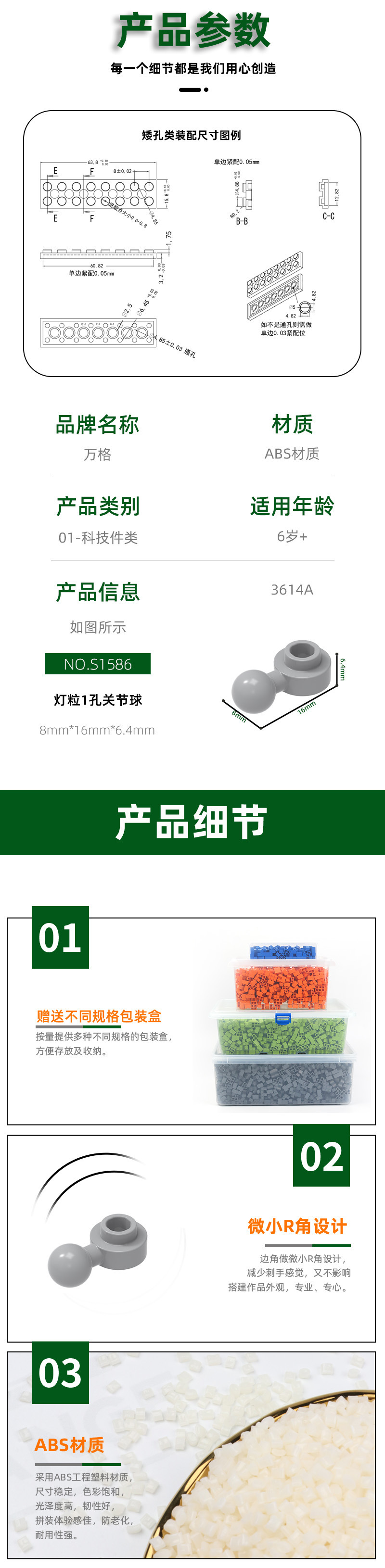 완게 스트레스 해소 퍼즐 소형 블록 국내산 블록 3614 호환 조립 부품 라이트볼 1홀 관절볼 장난감