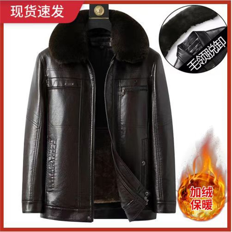 중년 남성 가죽 자켓이 두껍게 플러스 사이즈 가죽 자켓 중년 및 노인 아버지 기모 남성 겨울 모피 원 코트스토어 가기