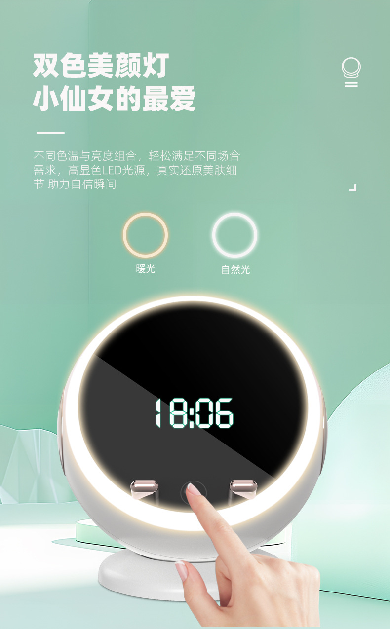창조적 인 지능형 블루투스 오디오 시계 알람 시계 TF 카드 컴퓨터 오디오 무선 충전 메이크업 거울 분위기 빛