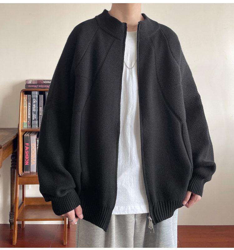 가을과 겨울 게으른 스타일 간단한 올 매치 솔리드 컬러 지퍼 재킷 남자의 새로운 하이 스트리트 패셔너블 브랜드 루즈 캐주얼 탑 남성 패션