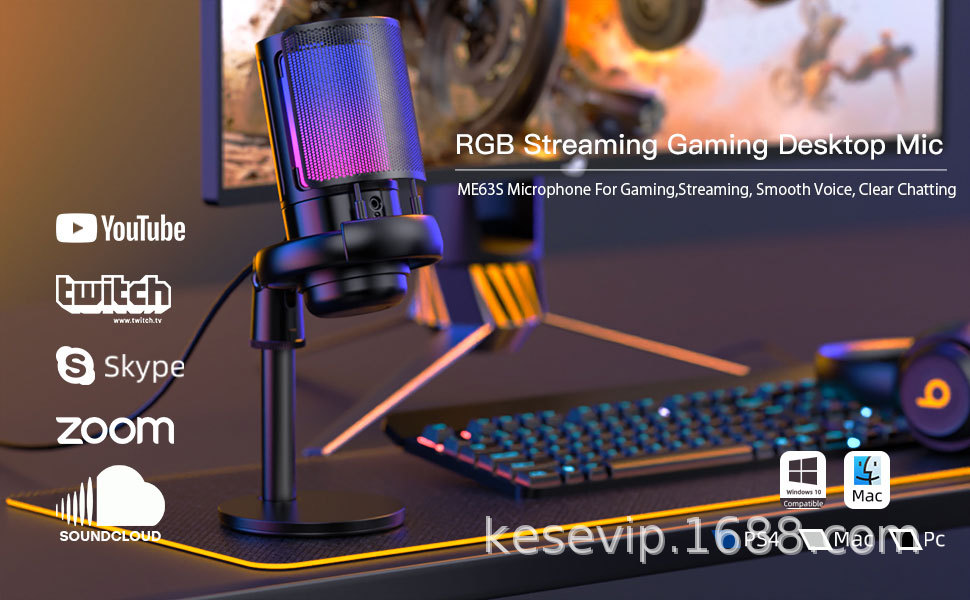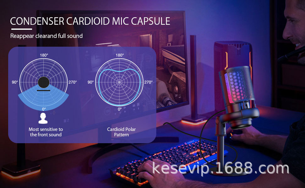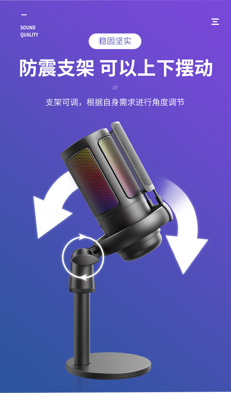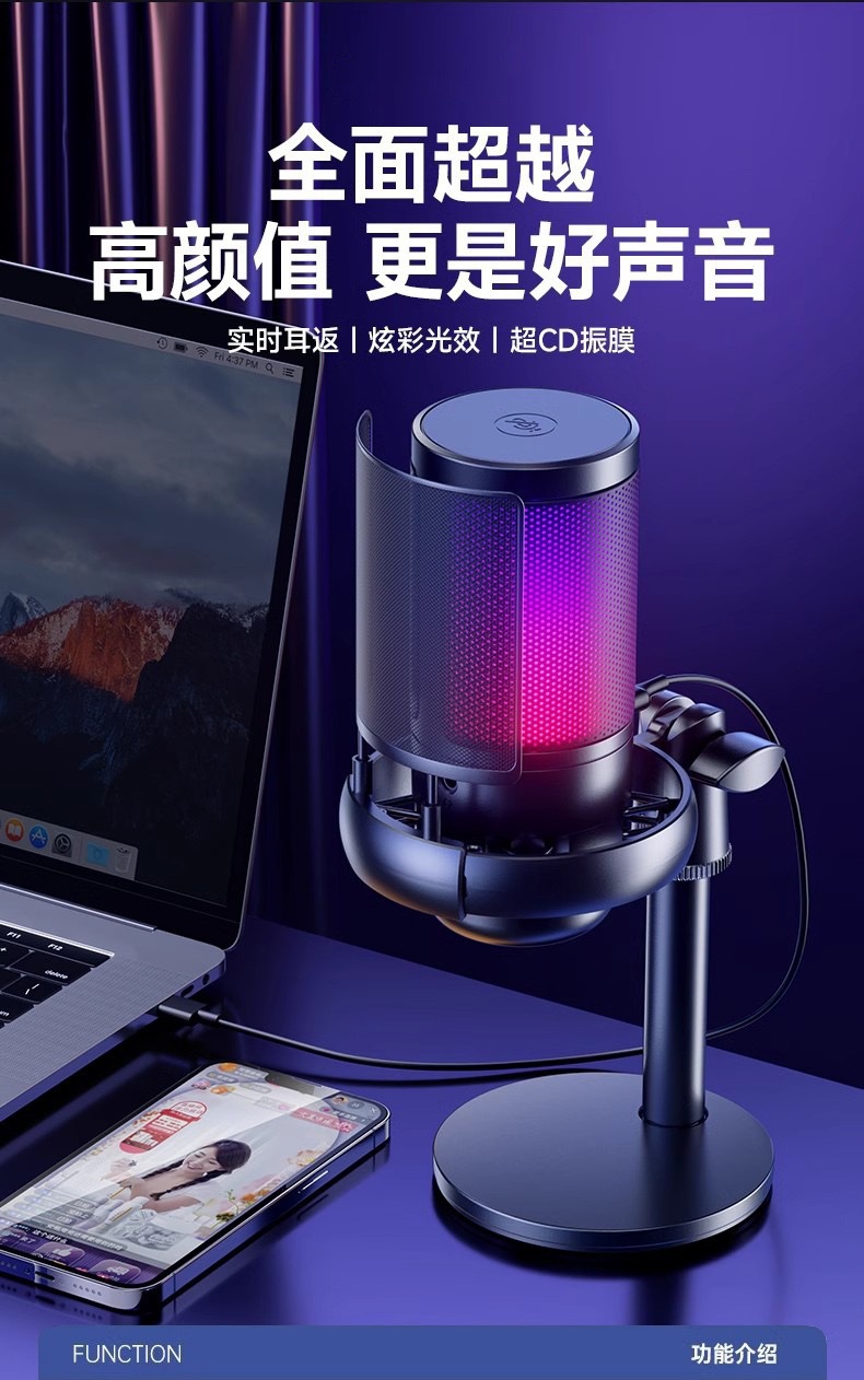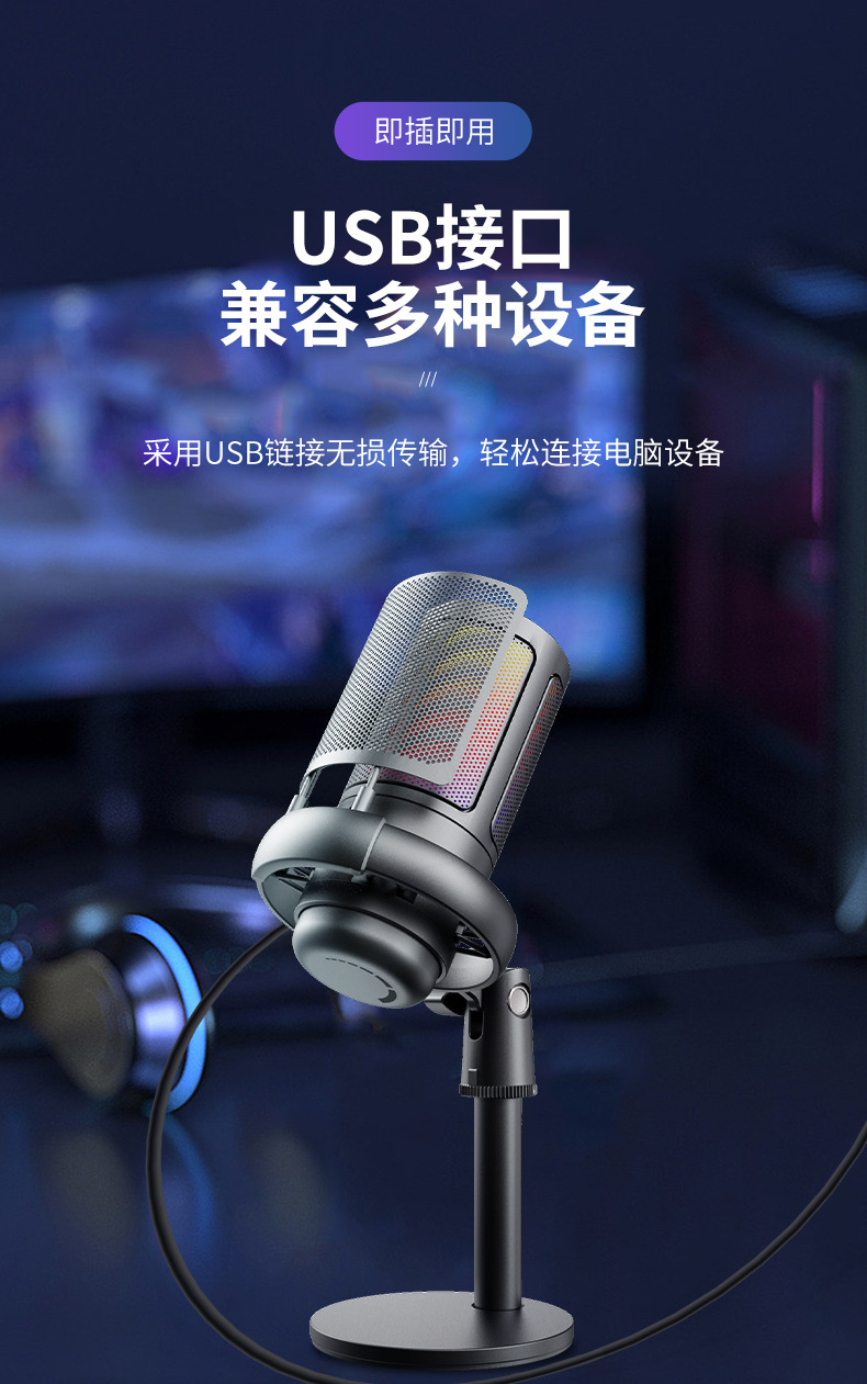 국경 RGB 데스크톱 컴퓨터 마이크 게임 모니터 라이브 K 노래 녹음 특수 노트북 USB 마이크스토어 가기