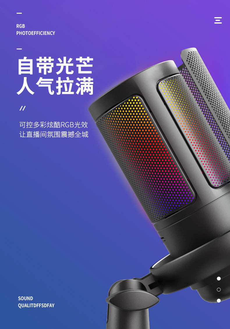 국경 RGB 데스크톱 컴퓨터 마이크 게임 모니터 라이브 K 노래 녹음 특수 노트북 USB 마이크
