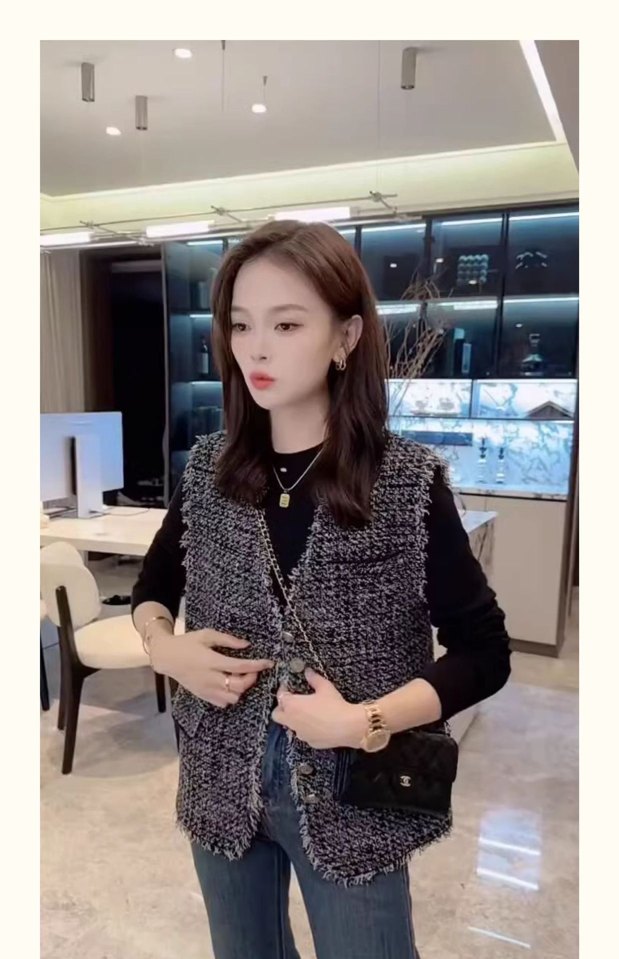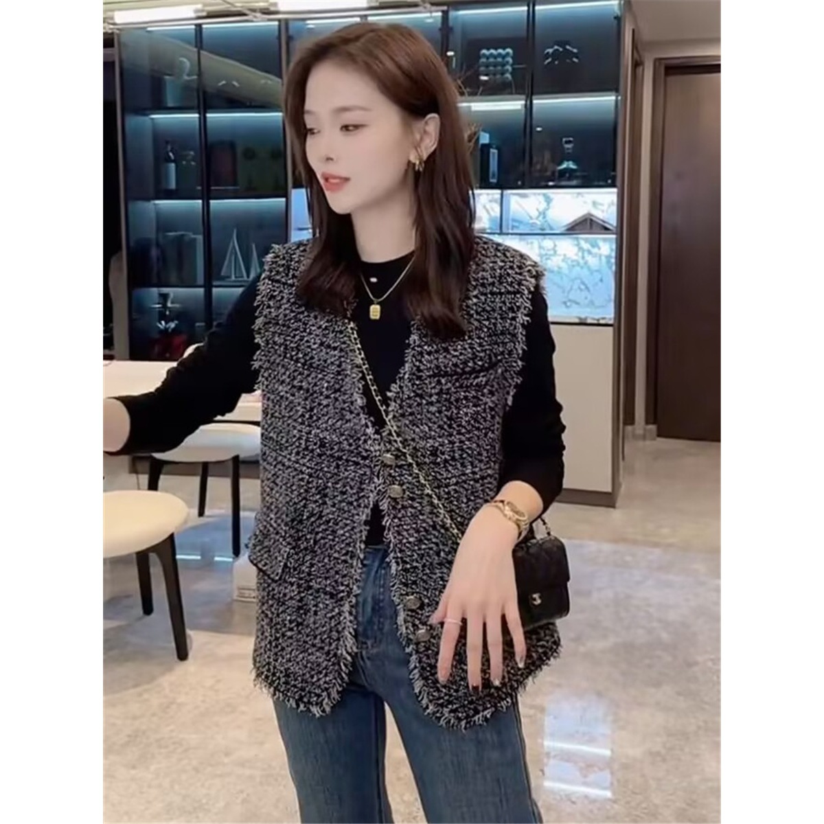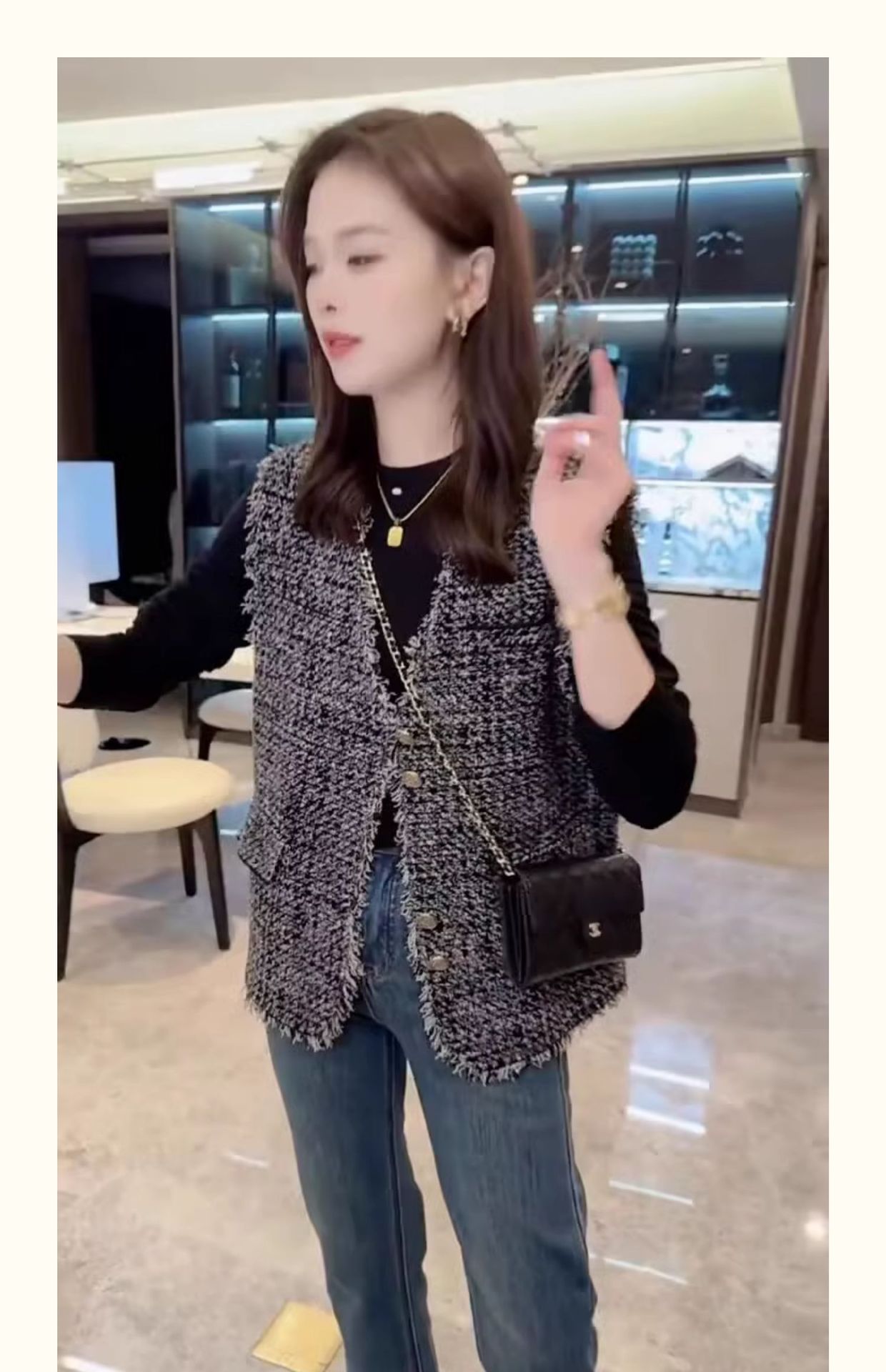 프랑스 스타일 짠 샤넬 스타일 조끼 여성의 짧은 2024 가을 새로운 하이 엔드 센스 민소매 조끼 트렌디스토어 가기