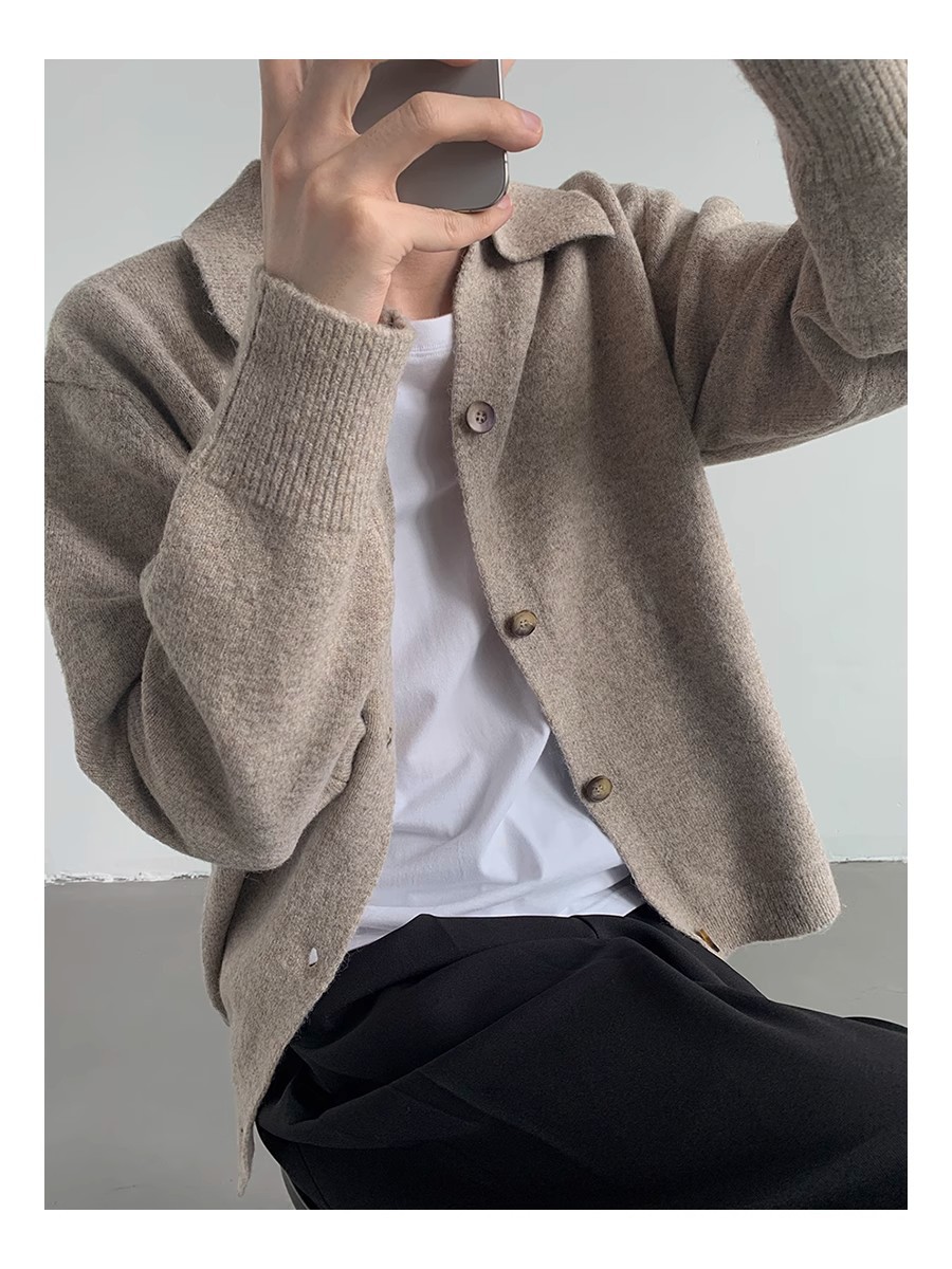 한국 스타일 얇은 바늘 옷깃 카디건 스웨터 재킷 간단한 단색 느슨한 캐주얼 올 매치 긴 소매 니트 탑스토어 가기