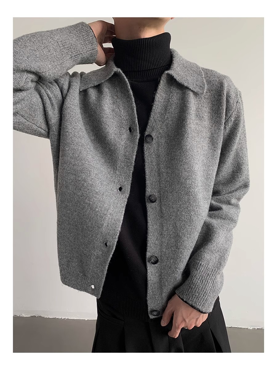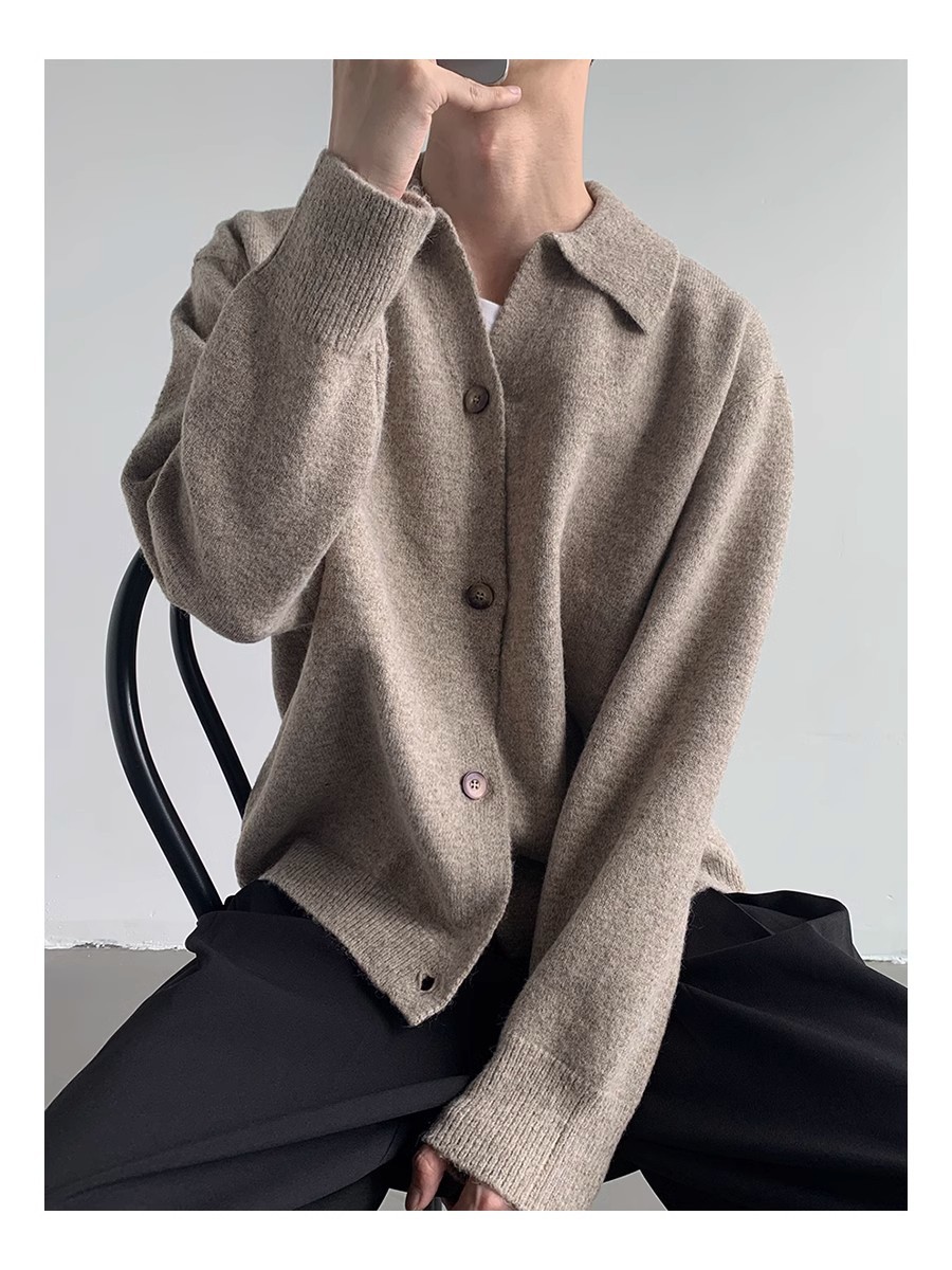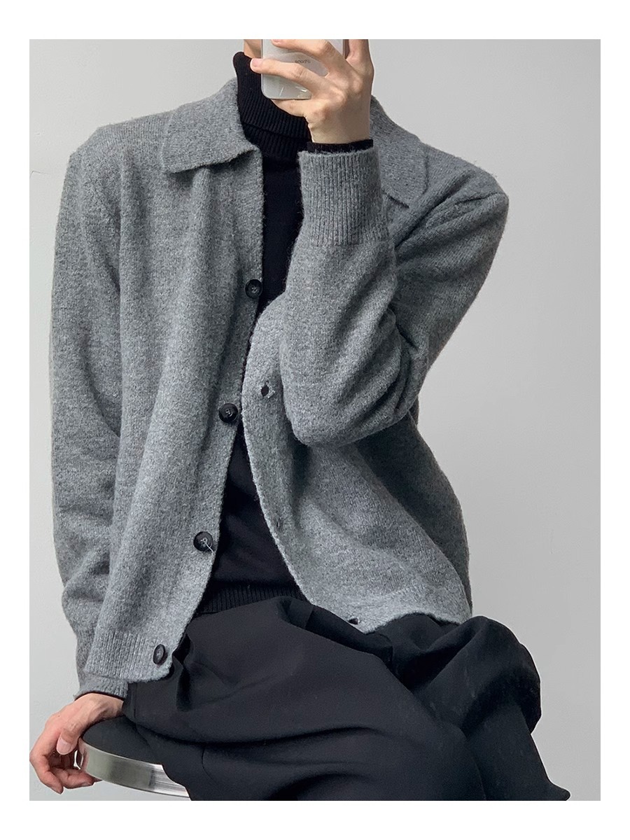 한국 스타일 얇은 바늘 옷깃 카디건 스웨터 재킷 간단한 단색 느슨한 캐주얼 올 매치 긴 소매 니트 탑