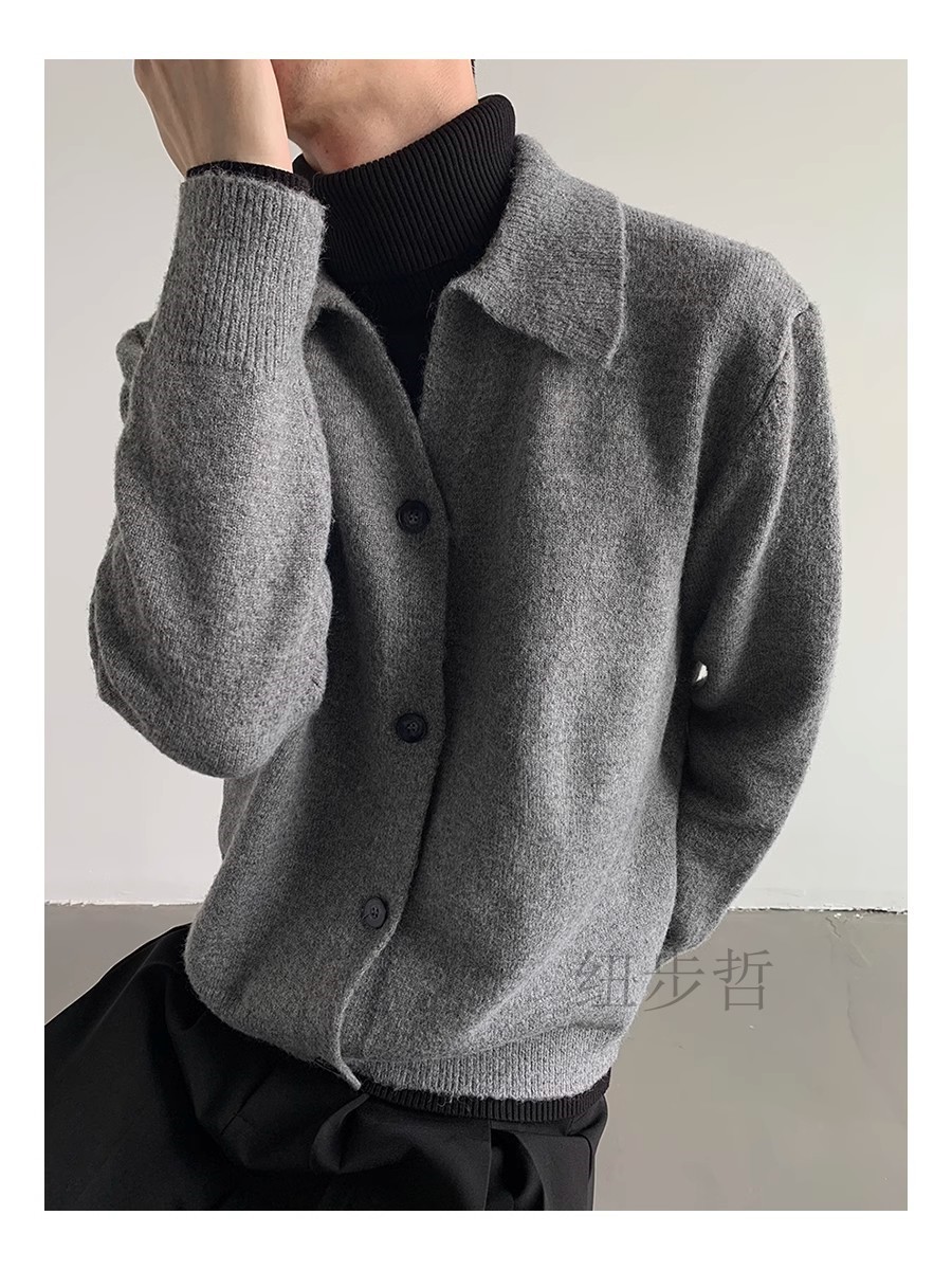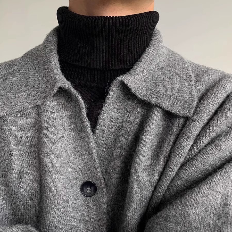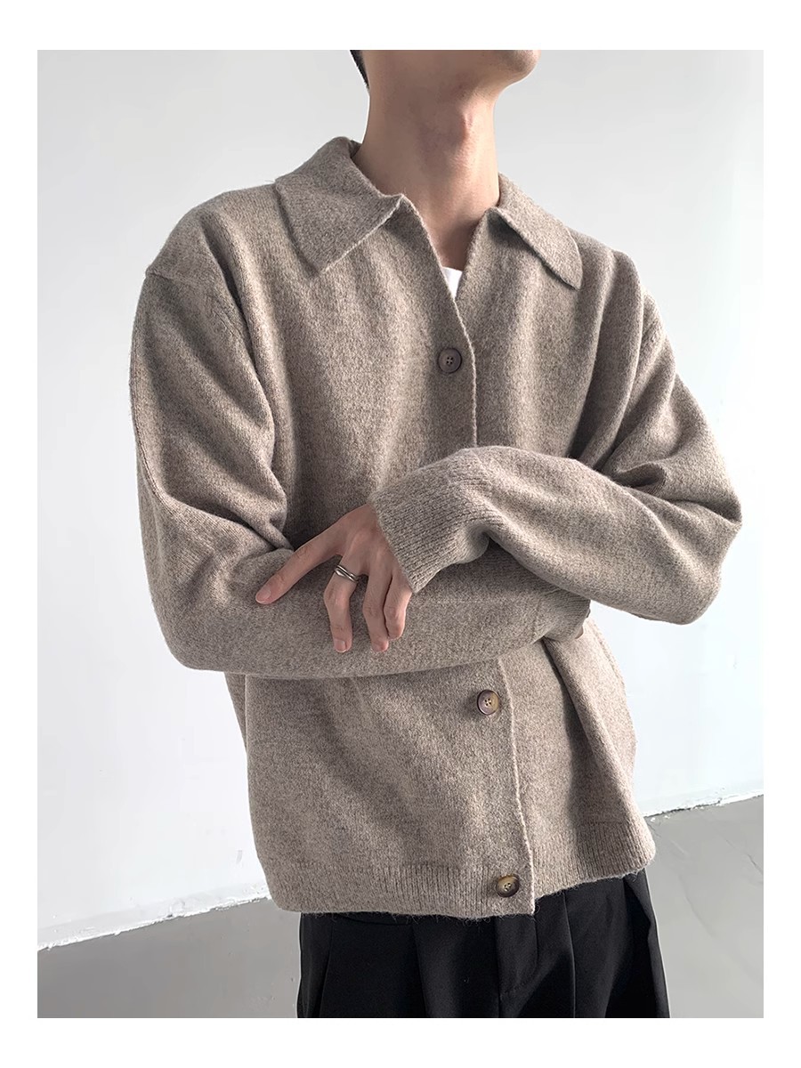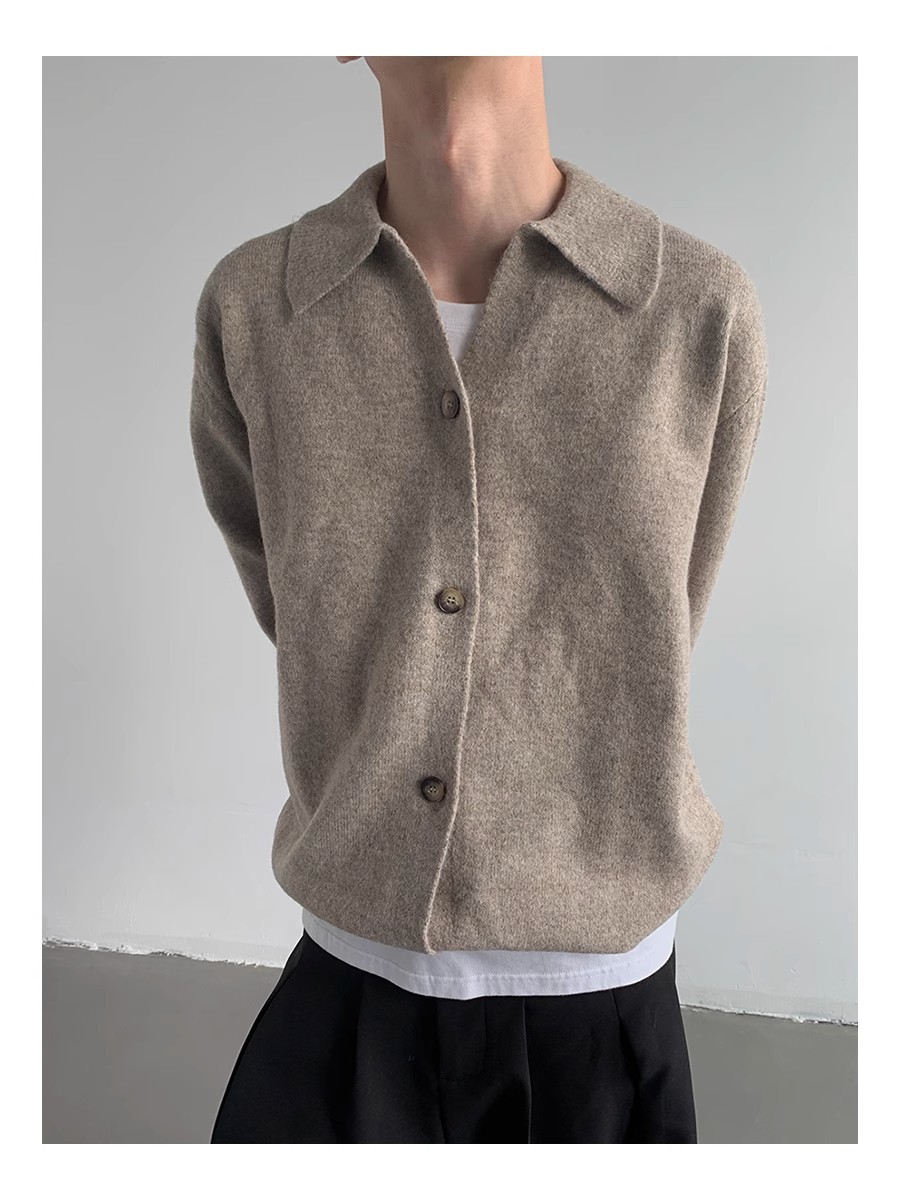 한국 스타일 얇은 바늘 옷깃 카디건 스웨터 재킷 간단한 단색 느슨한 캐주얼 올 매치 긴 소매 니트 탑