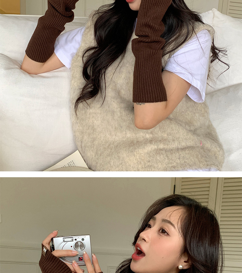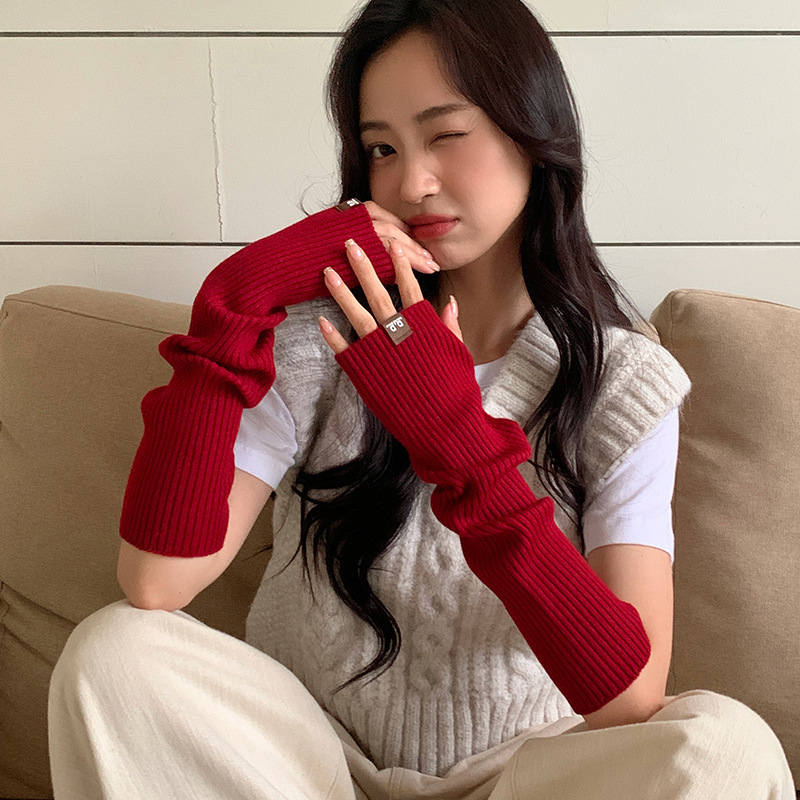 겨울 긴 반 손가락 장갑 여성의 가을과 겨울 학생 소매 고급 손가락 노출 양모 니트 따뜻한 장갑스토어 가기