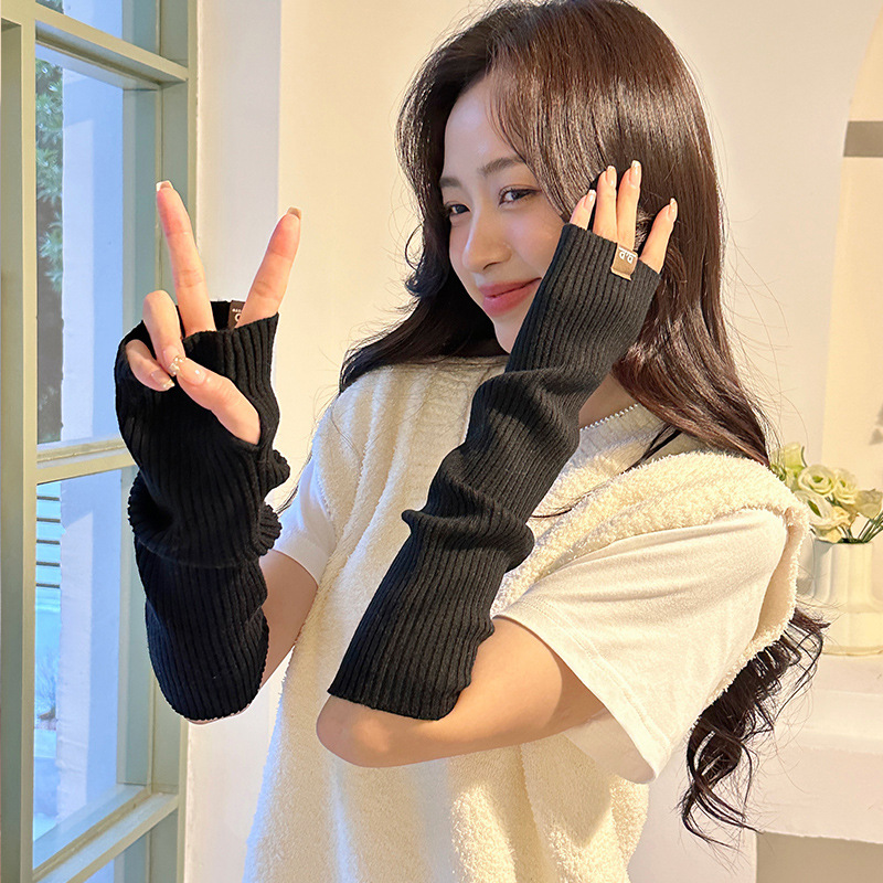 겨울 긴 반 손가락 장갑 여성의 가을과 겨울 학생 소매 고급 손가락 노출 양모 니트 따뜻한 장갑