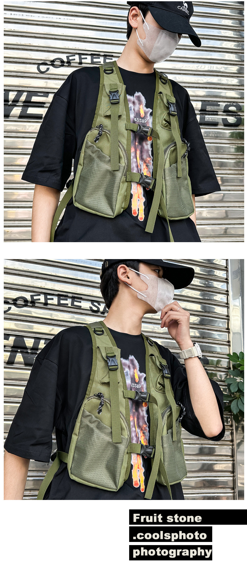 트렌디 한 브랜드 기능성 전술 말 클립 백 새로운 힙합 작업 조끼 남자 개인 올 매치 크로스 보더 승마 가슴 가방 배낭