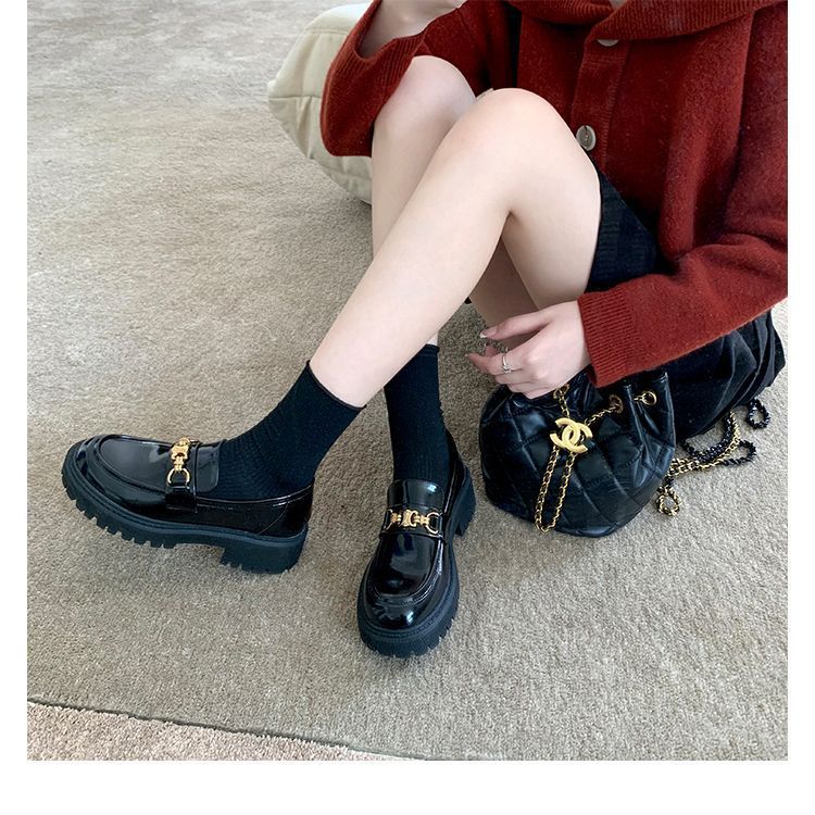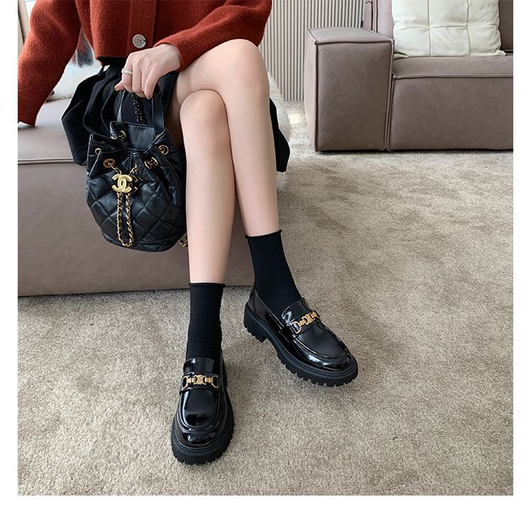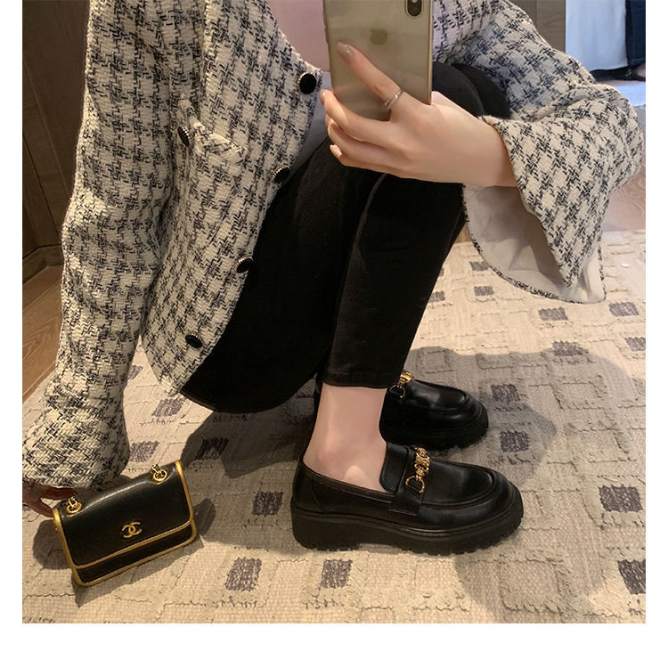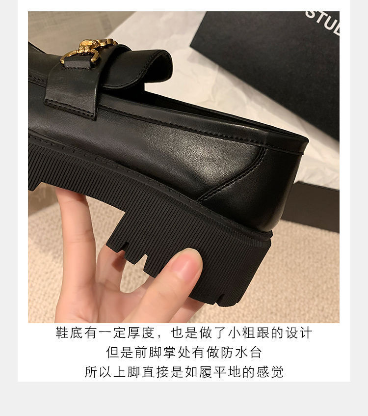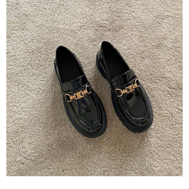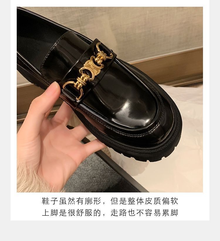 정품 가죽 아크 드 개선문 두꺼운 밑창 로퍼 여성의 2024 가을 및 겨울 새로운 슬립 온 신발 두꺼운 힐 영국 스타일 가죽 신발스토어 가기
