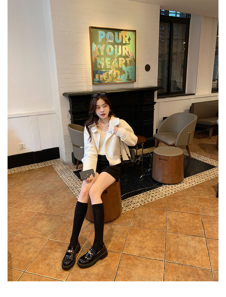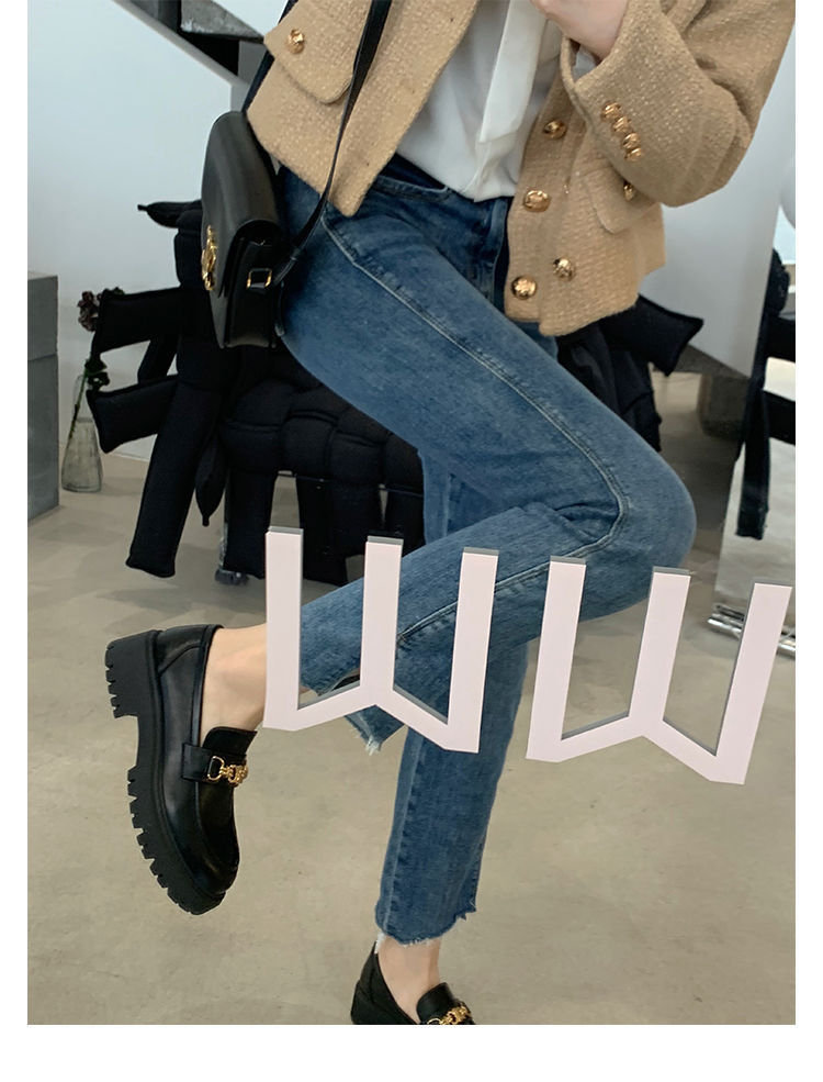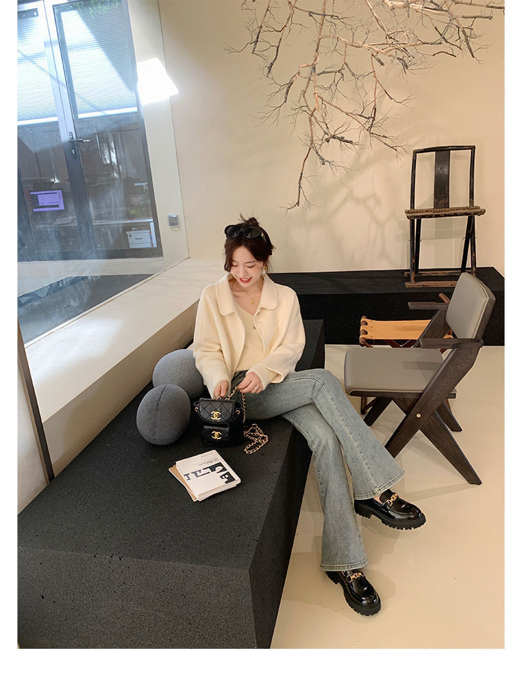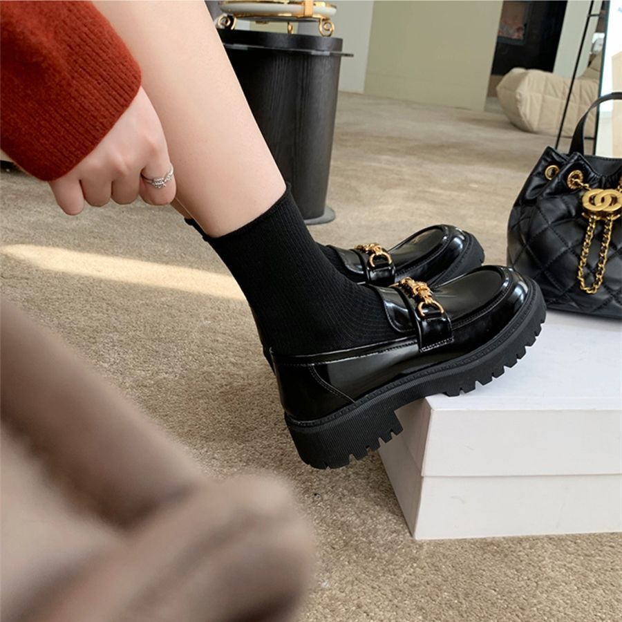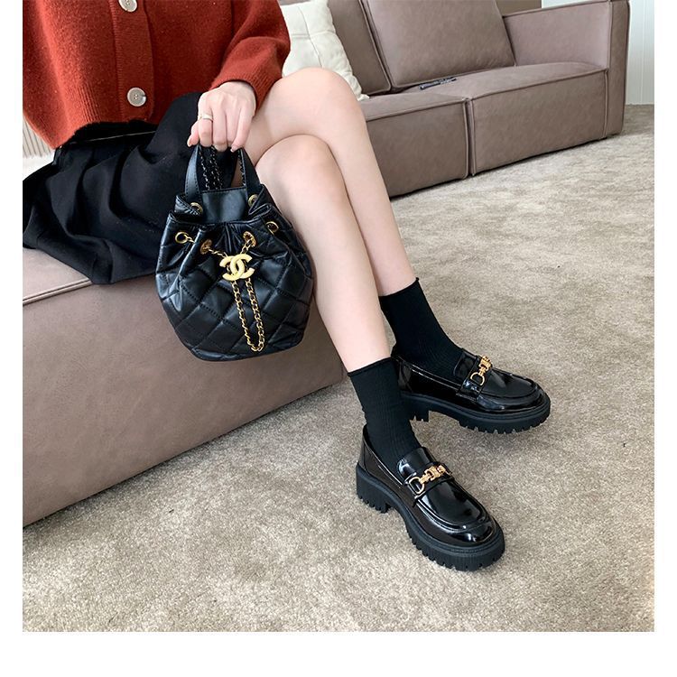 정품 가죽 아크 드 개선문 두꺼운 밑창 로퍼 여성의 2024 가을 및 겨울 새로운 슬립 온 신발 두꺼운 힐 영국 스타일 가죽 신발스토어 가기