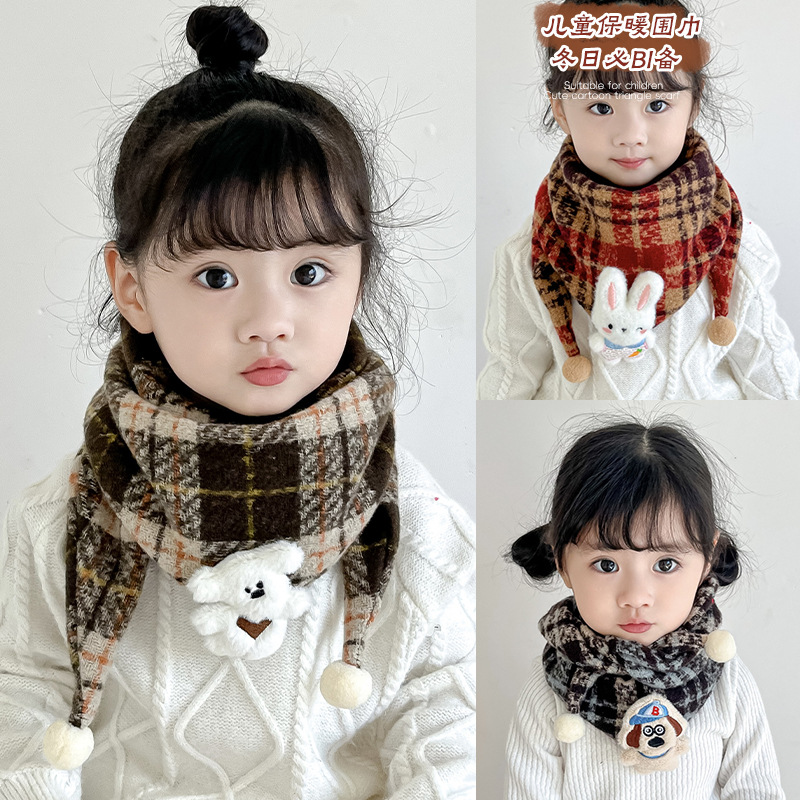어린이 스카프 가을과 겨울 따뜻한 방풍 아기 만화 삼각형 스카프 소년과 소녀 어린이를위한 양면 두꺼운 소녀 스카프스토어 가기