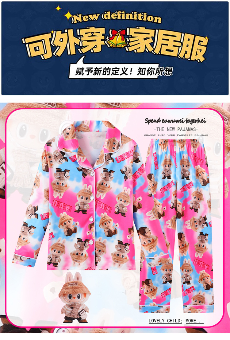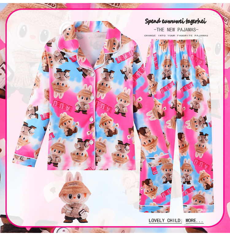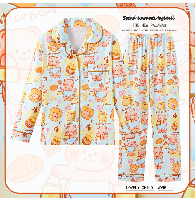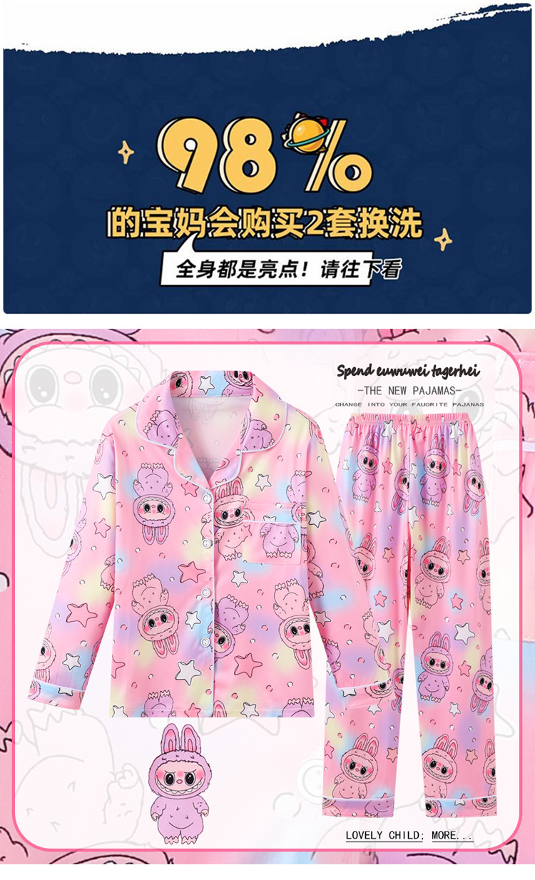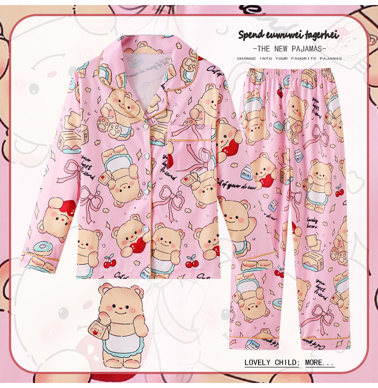 동남아시아 소녀 잠옷 봄과 가을 얇은 긴 소매 카디건 세트 귀여운 만화 어린 소녀 어린이 집 옷스토어 가기