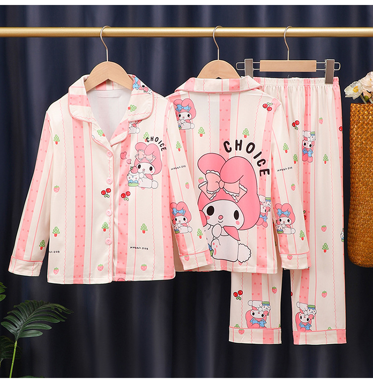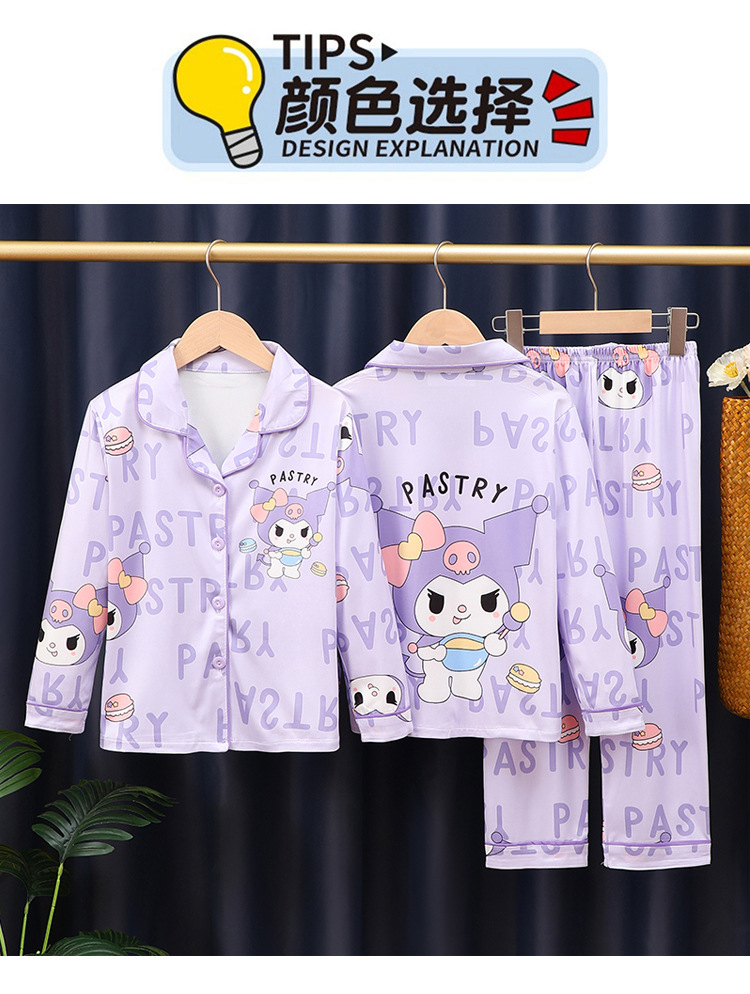 동남아시아 소녀 잠옷 봄과 가을 얇은 긴 소매 카디건 세트 귀여운 만화 어린 소녀 어린이 집 옷