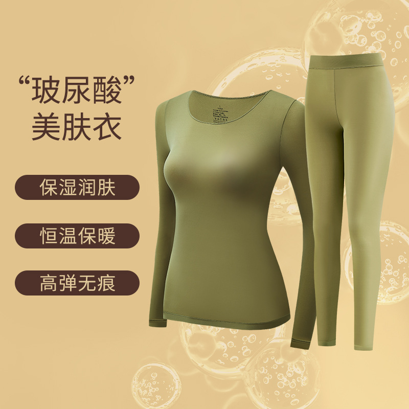 보이지 않는 근육베이스 옷 여성용 초박형 마스크 Hyaluronic Acid Base Traceles가없는 세트 열 속옷 가을 옷과 바지