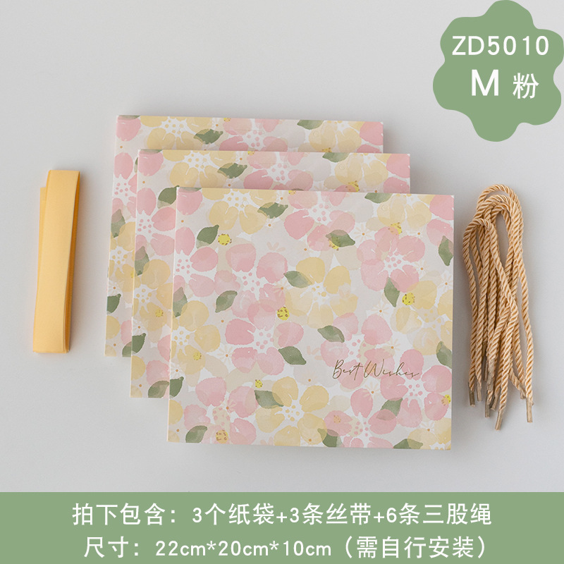 • M 노란색(3개 팩)-ZD5003 꽃말 컬렉션 선물 가방, 흰색 판지, 그림과 같이