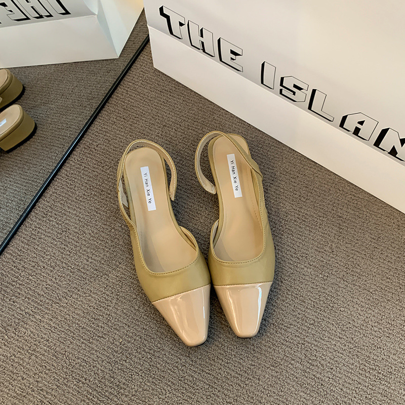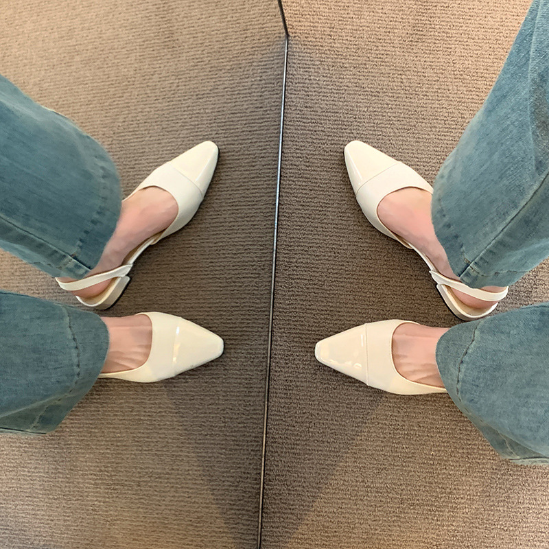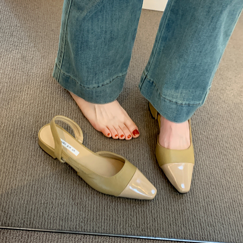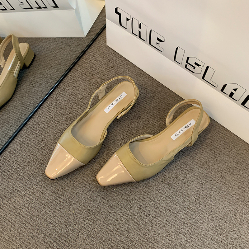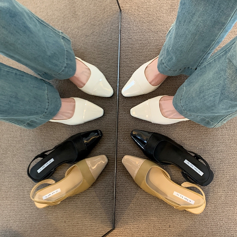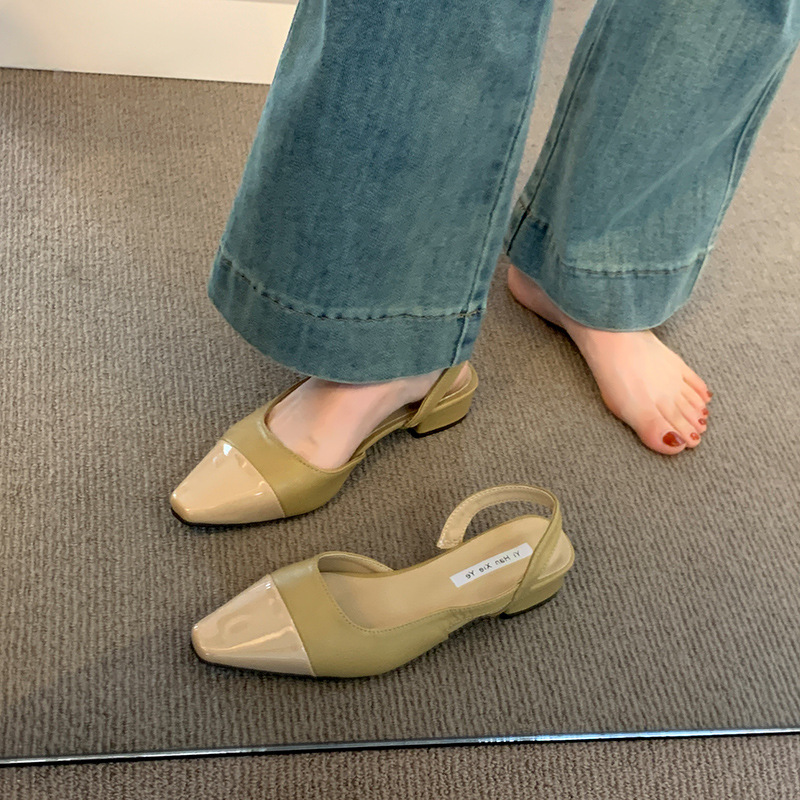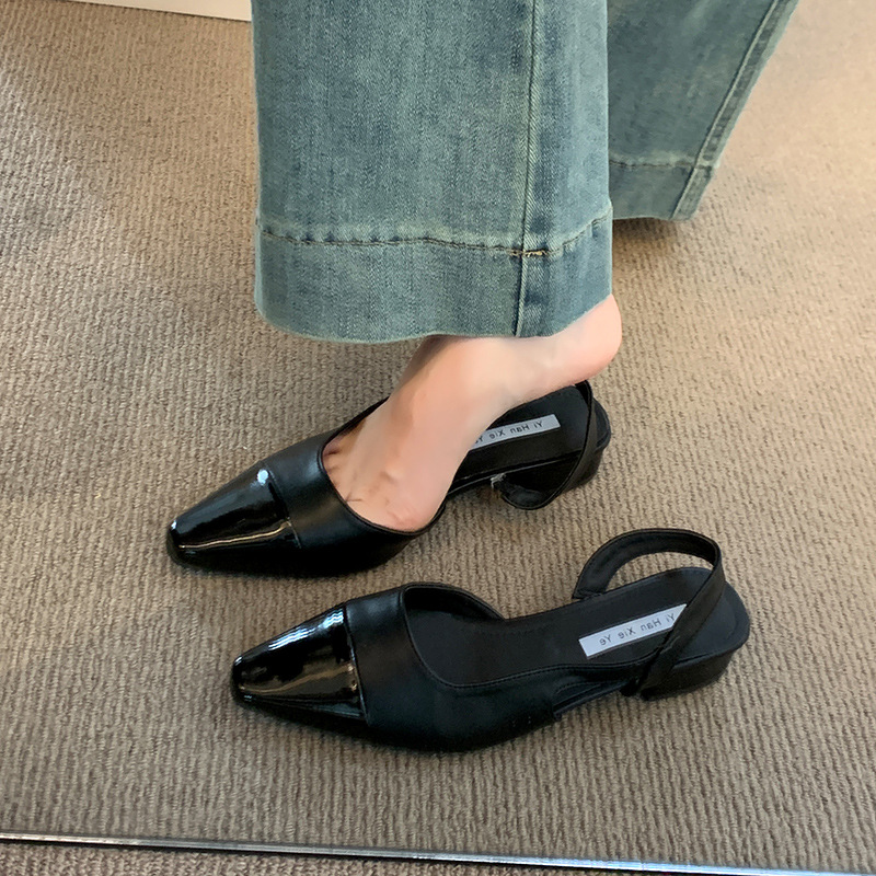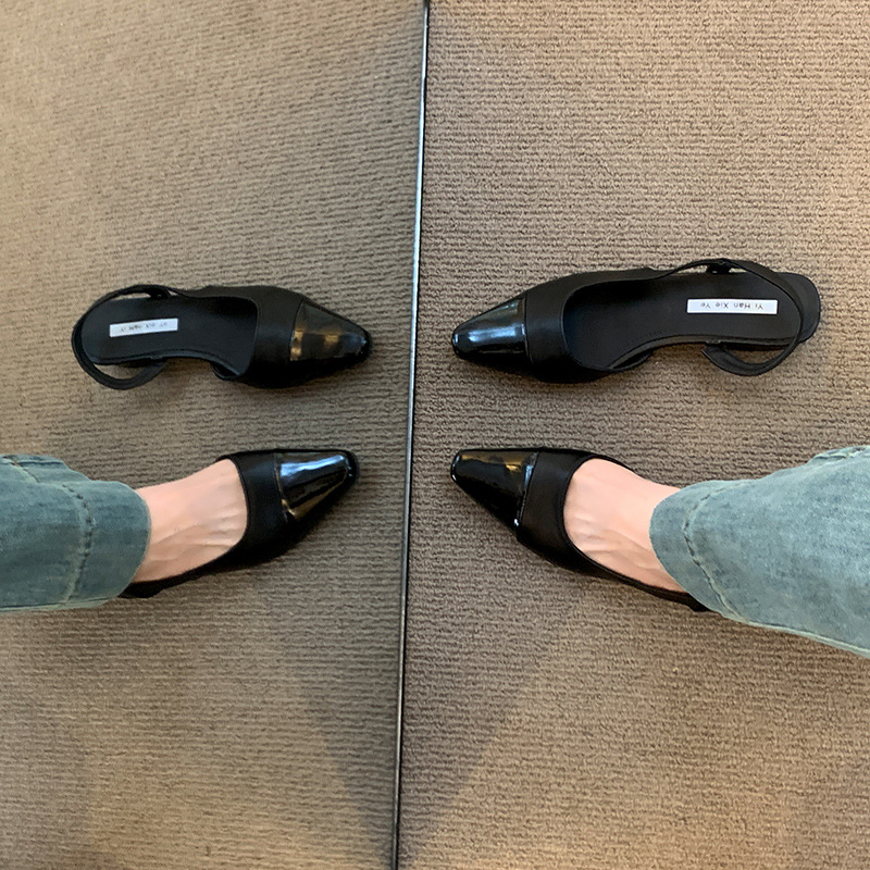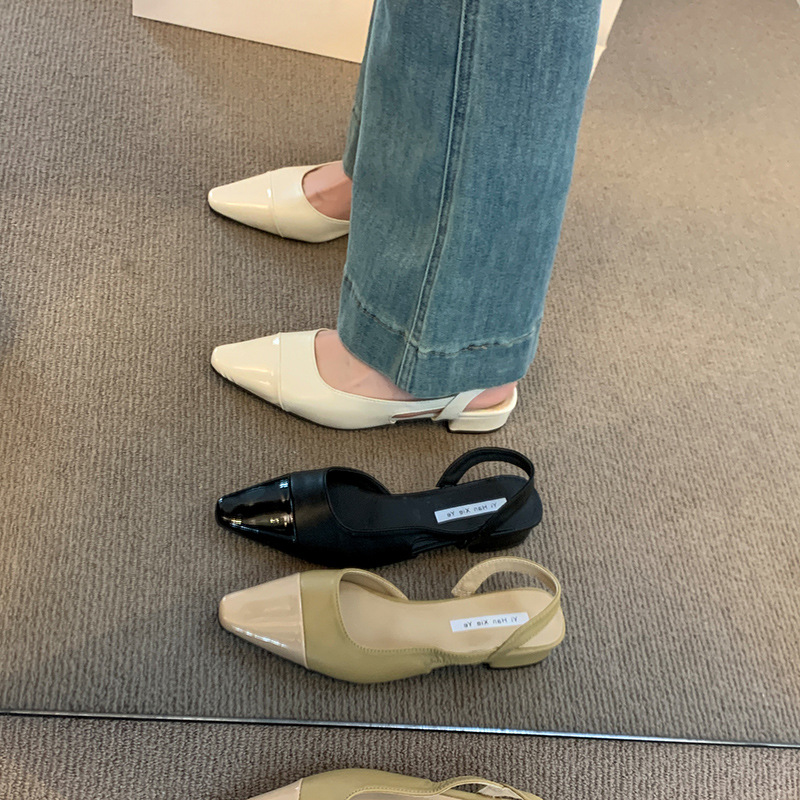 여성용 로우 힐 토드 샌들 프랑스 스타일 부드러운 저녁 누드 포인팅 작은 샤넬 스타일 레이디의 두꺼운 힐 공기질 신발스토어 가기