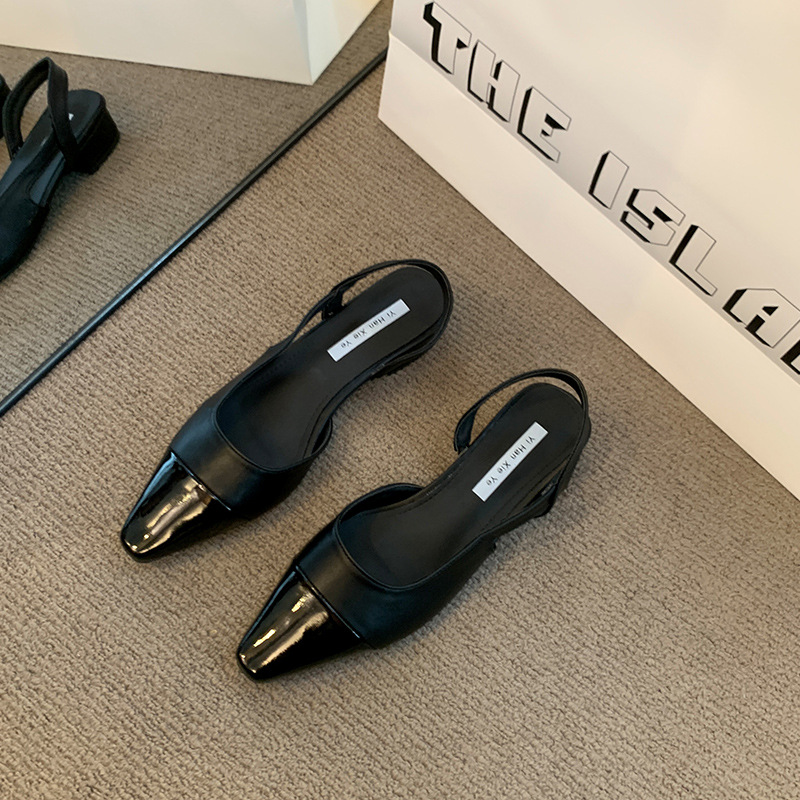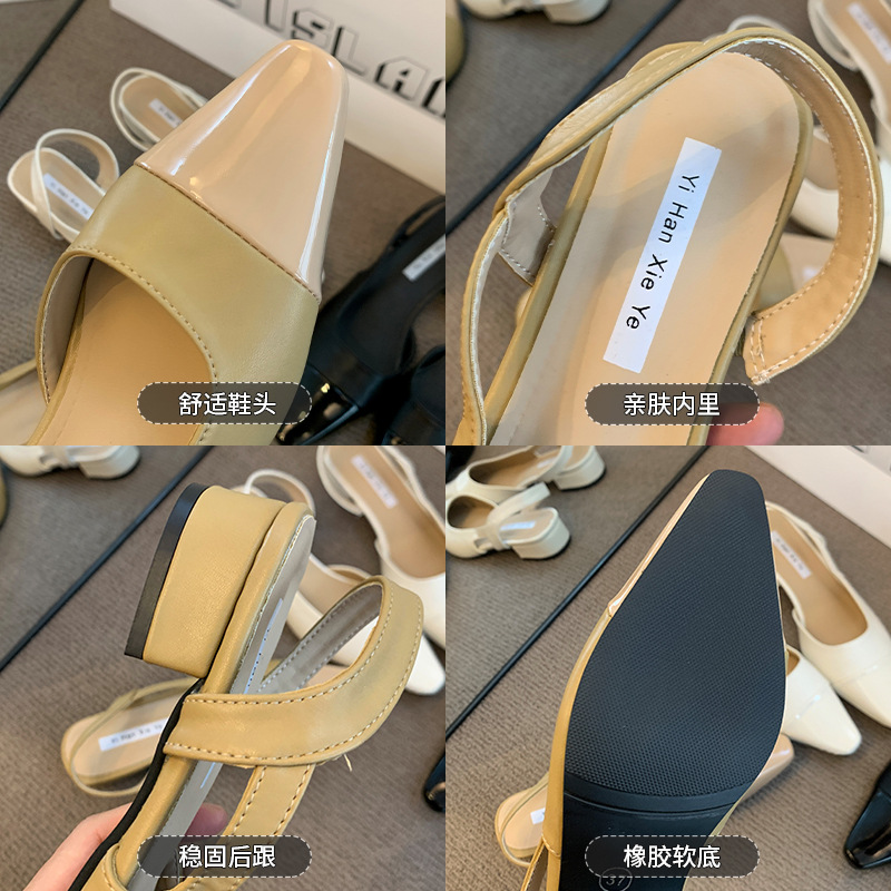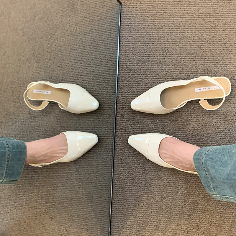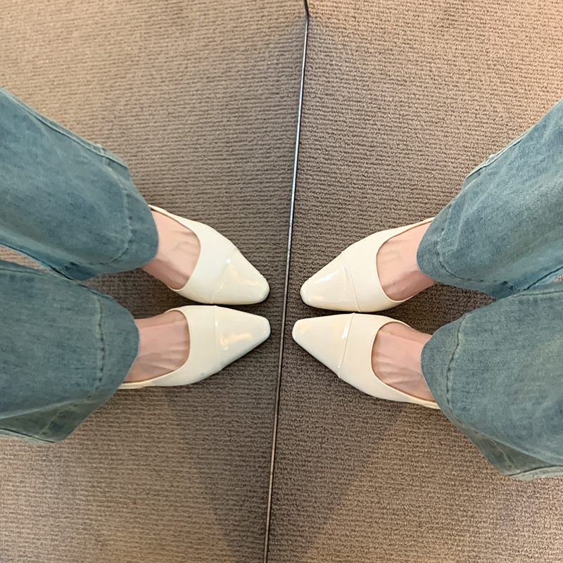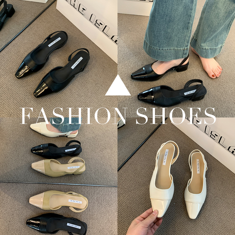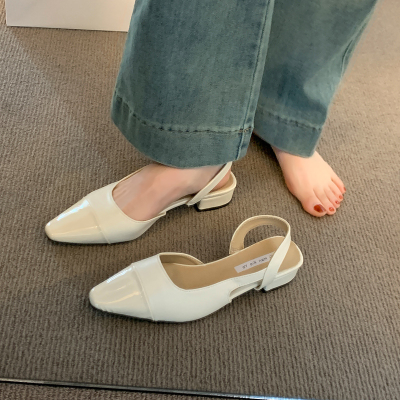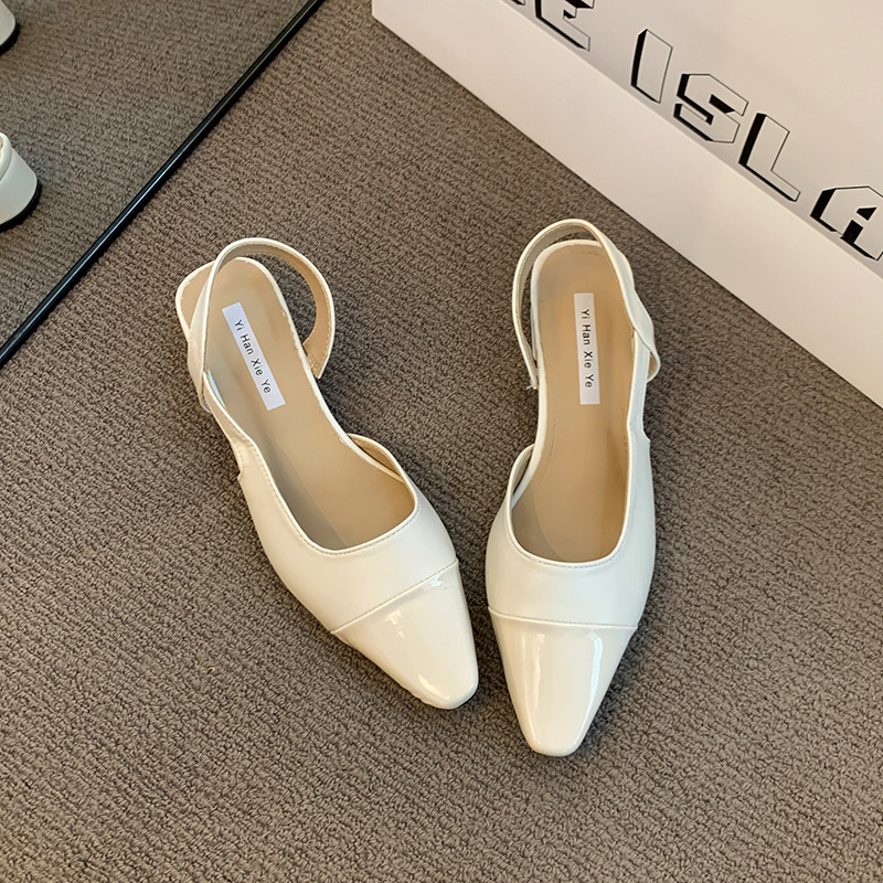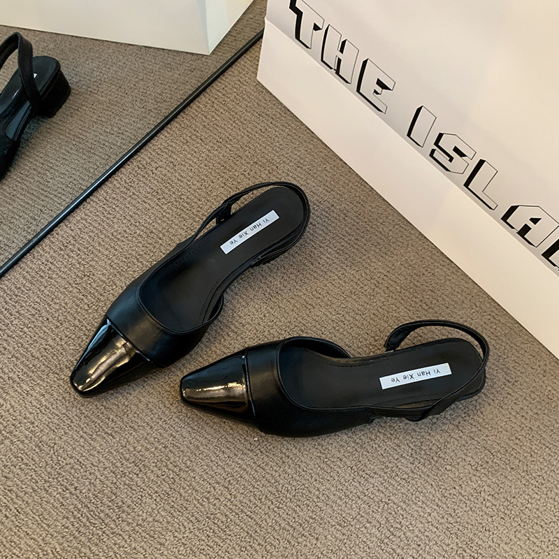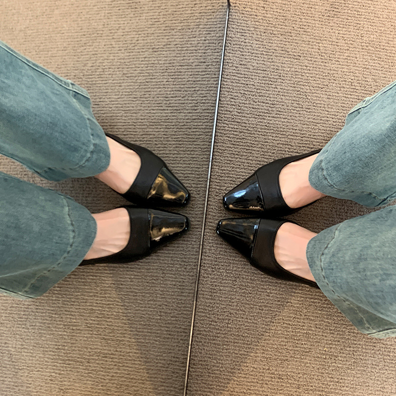 여성용 로우 힐 토드 샌들 프랑스 스타일 부드러운 저녁 누드 포인팅 작은 샤넬 스타일 레이디의 두꺼운 힐 공기질 신발스토어 가기