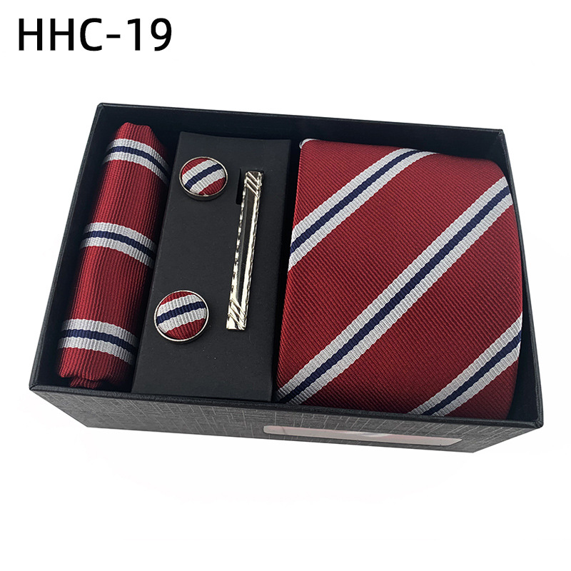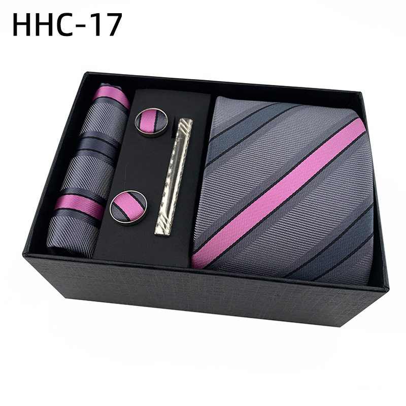 2025 남성용 스트라이프 작은 꽃무늬 체크 넥타이, 스카프, 커프스 링, 넥타이핀, 선물세트, 비즈니스 캐주얼 넥타이, 블랙