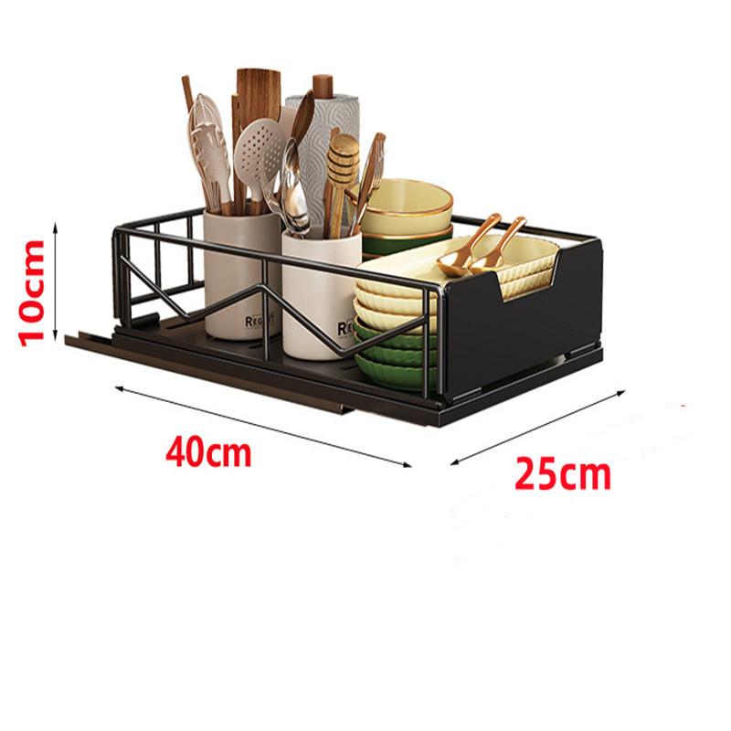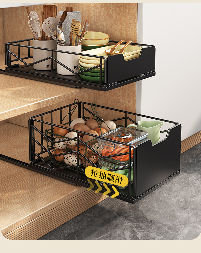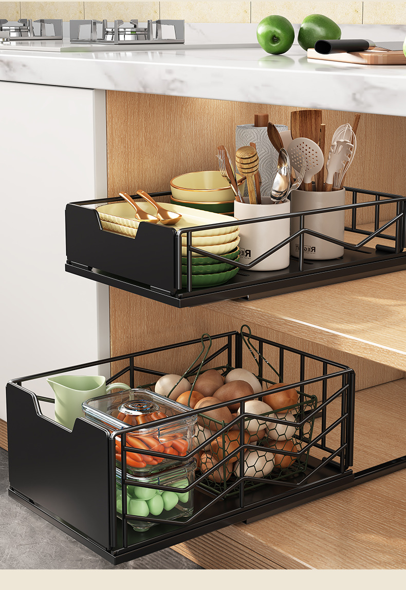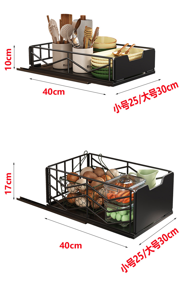 주방 다기능 접이식 풀아웃 보관 바구니 보관 랙 캐비닛 싱크대 서랍 풀아웃 바구니 조미료 랙 크로스보더스토어 가기