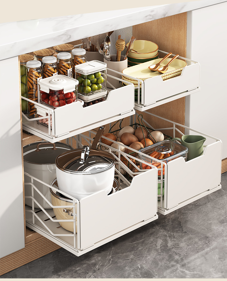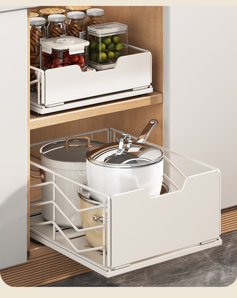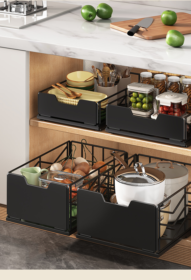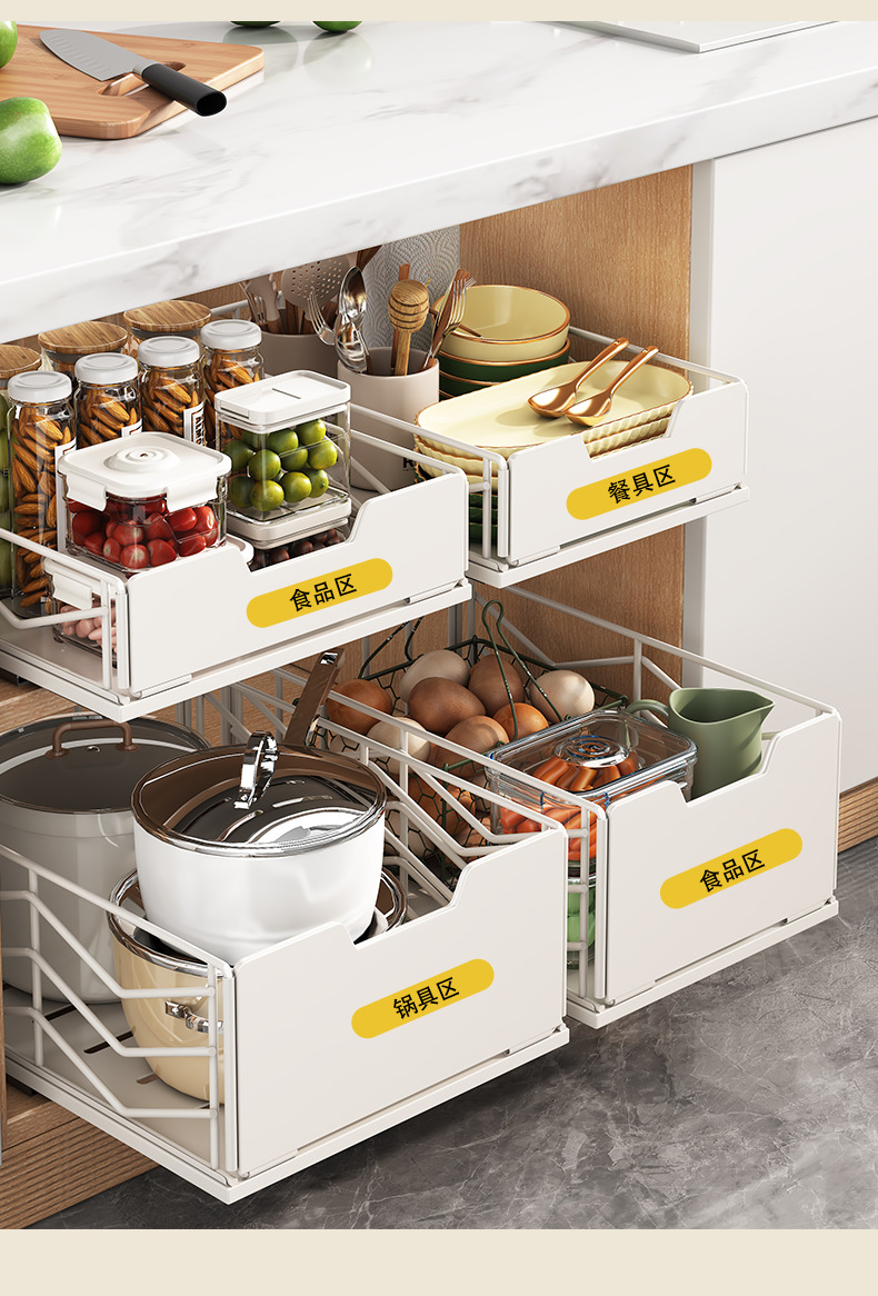 주방 다기능 접이식 풀아웃 보관 바구니 보관 랙 캐비닛 싱크대 서랍 풀아웃 바구니 조미료 랙 크로스보더스토어 가기