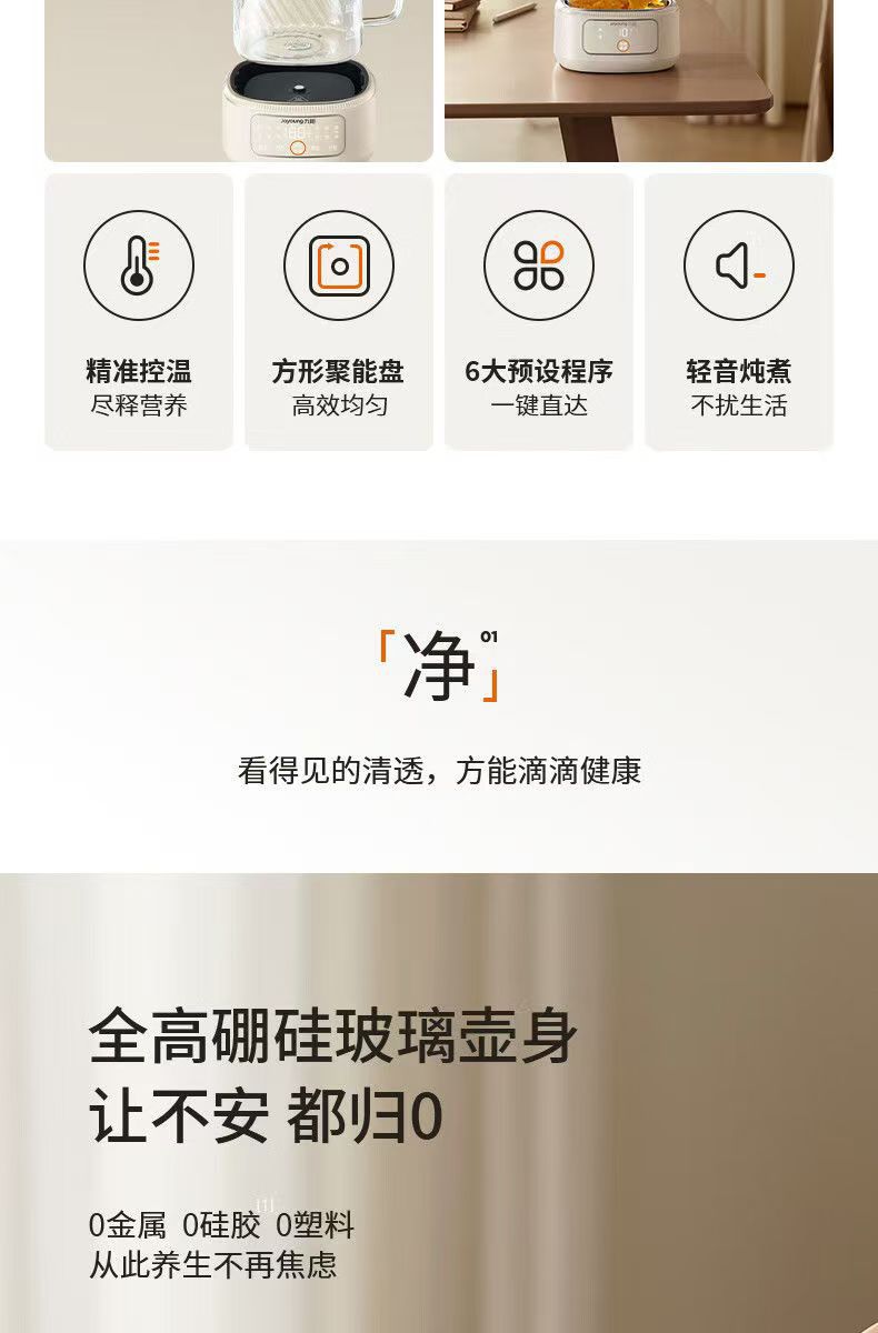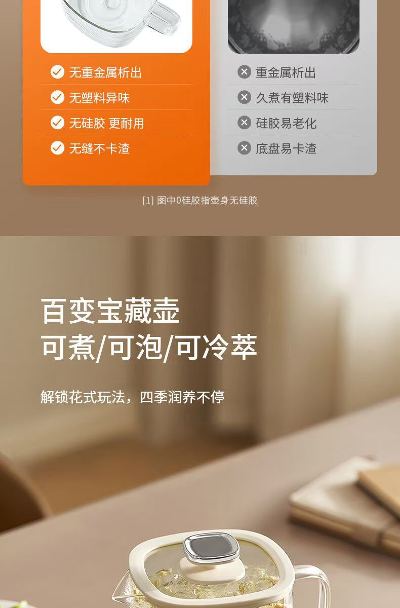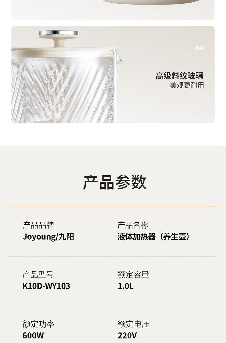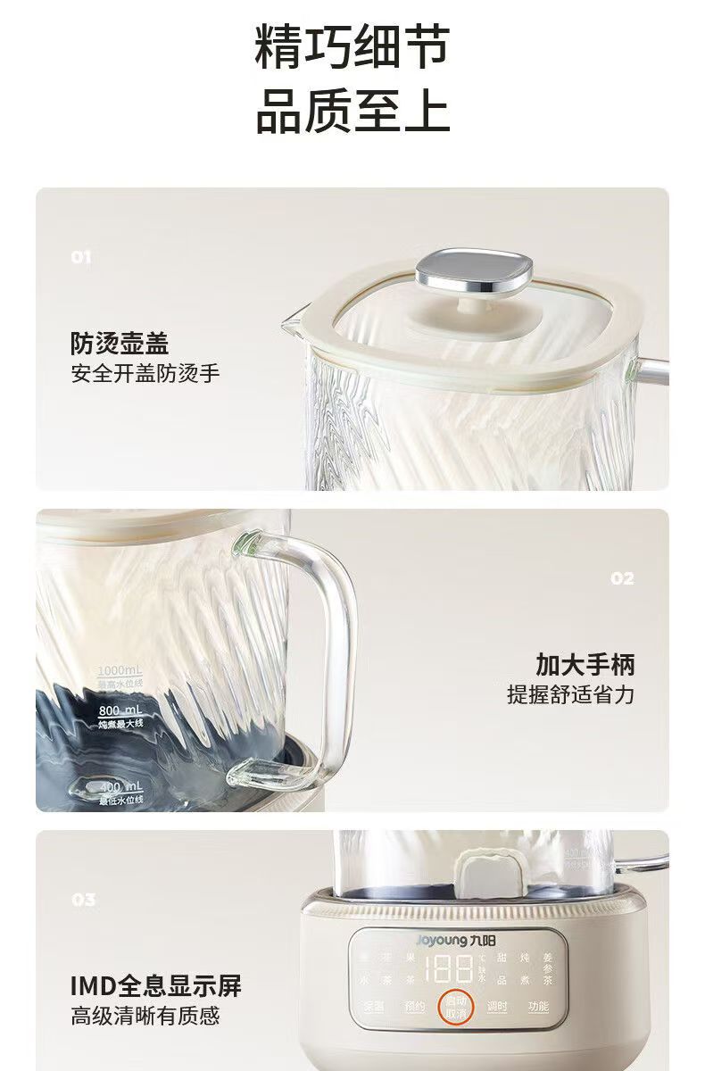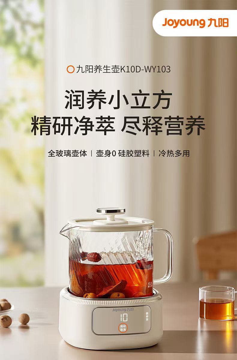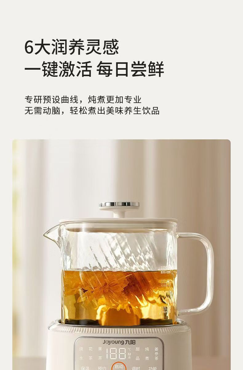 Jiuyang 건강 냄비 K10D-WY103 가구 다기능 전체 유리 주전자 1L 사무실 차 메이커스토어 가기