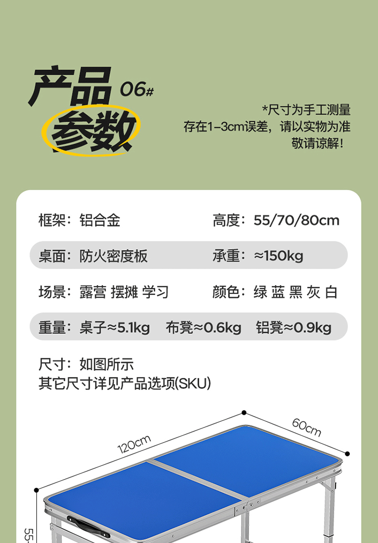 • [두꺼워짐] 120*60 녹색 + 2 알루미늄 의자