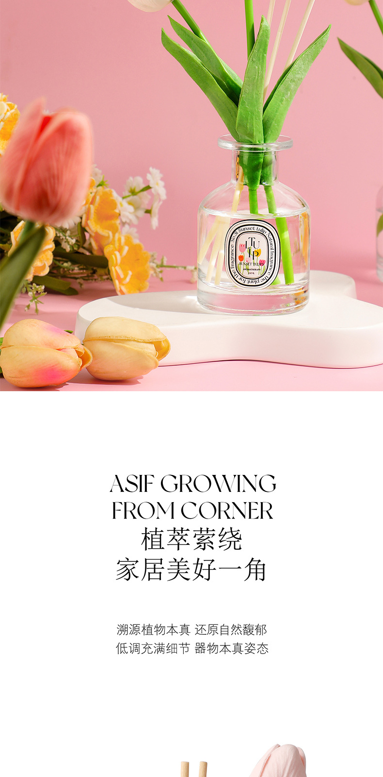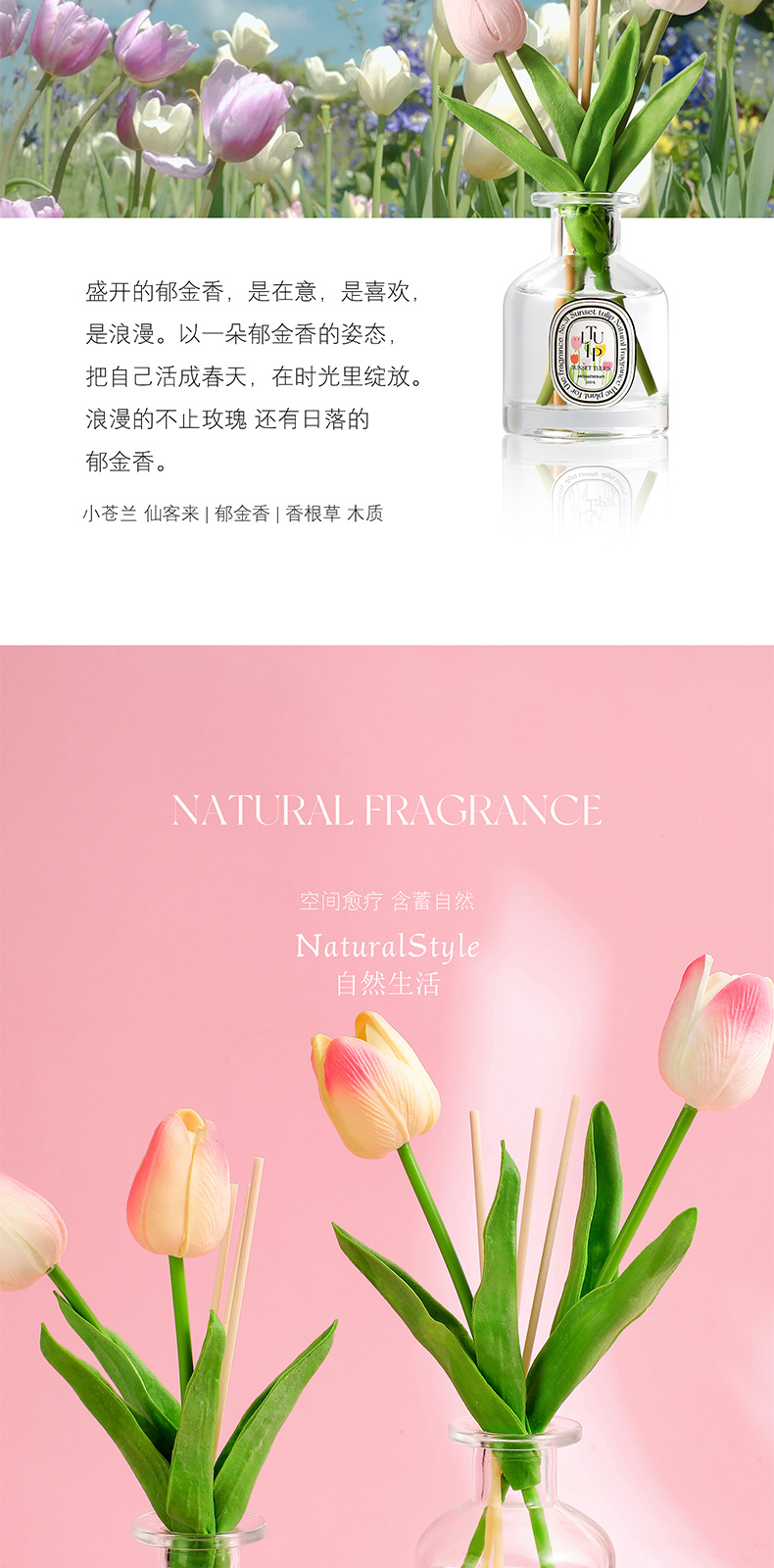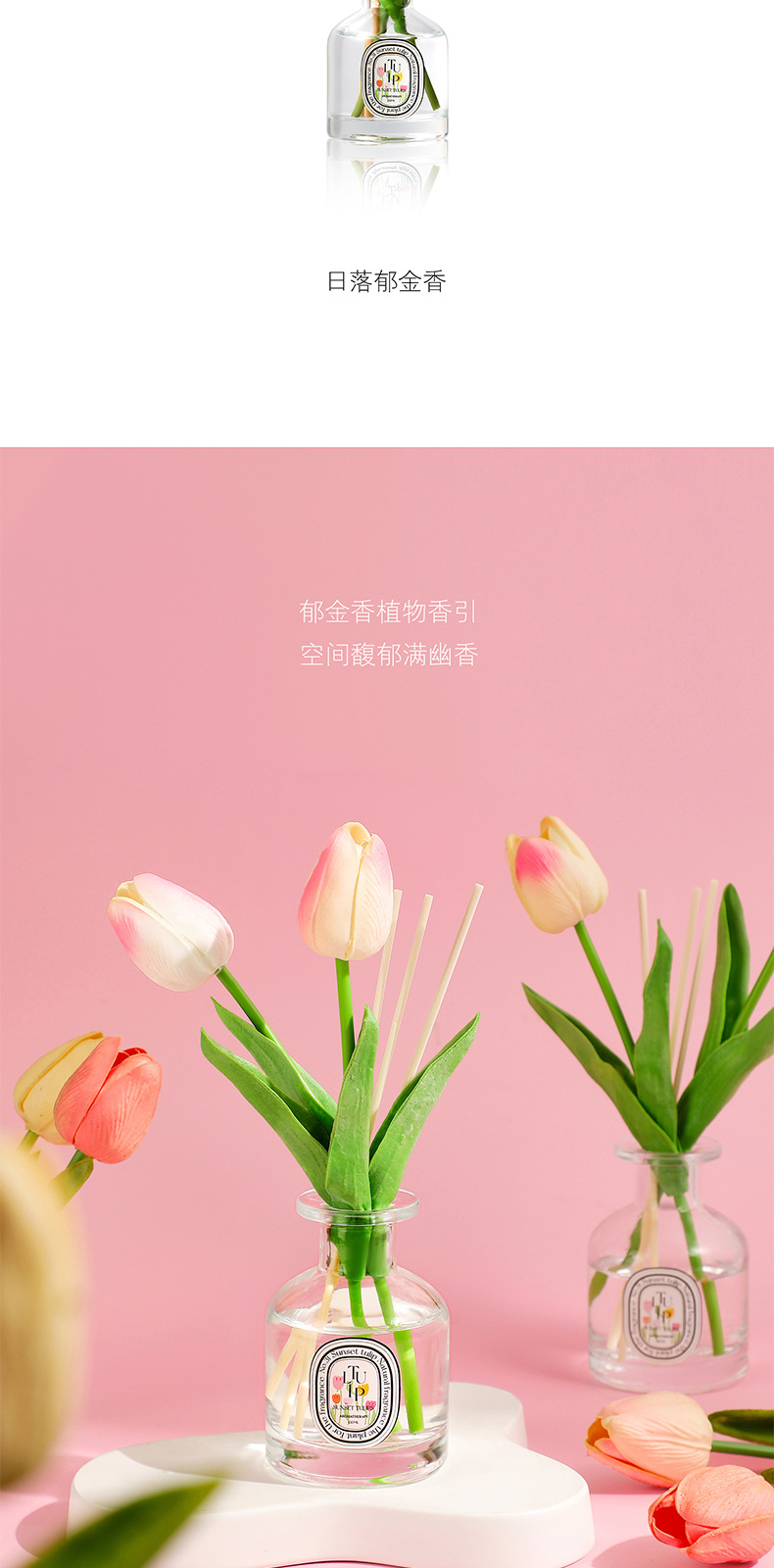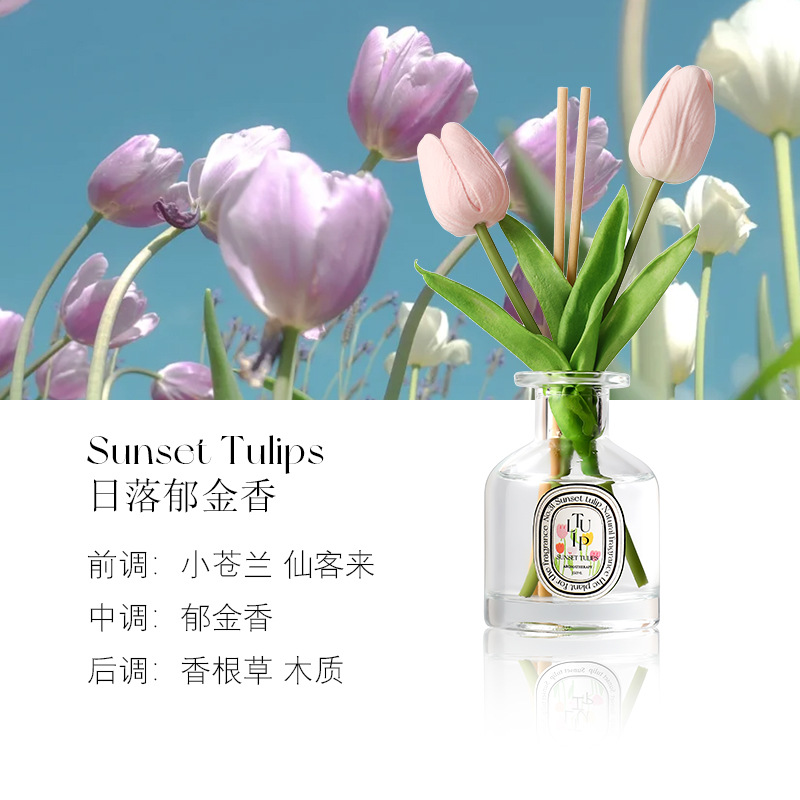 선셋 튤립 150ml 대용량 홈 욕실 아로마 테라피 꽃 오래 지속되는 빛 향기 침실 불없는 향기스토어 가기
