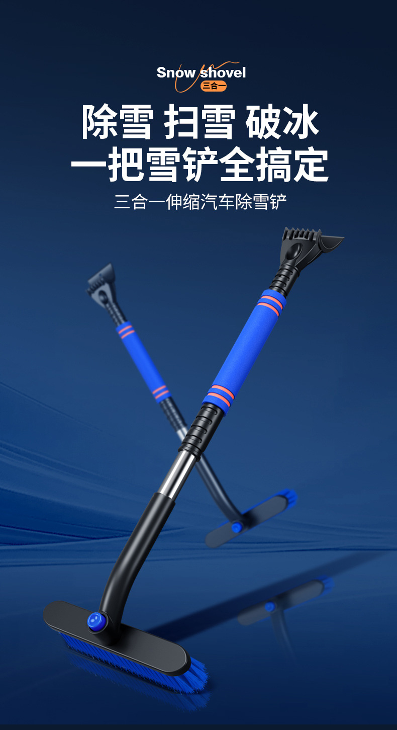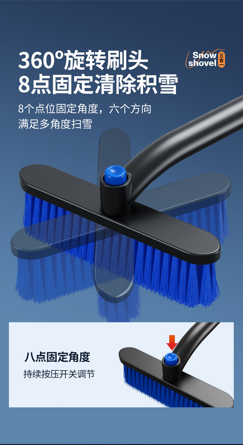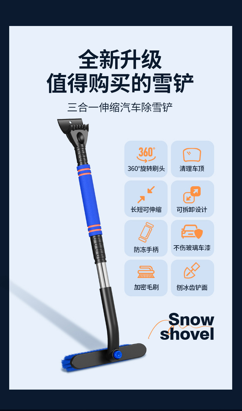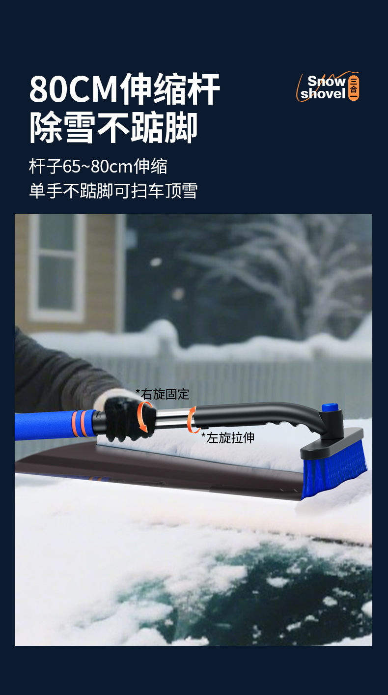 【产品特点】:可伸缩可拆卸,360°旋转,铲刷两用可防滑手杆,不伤车漆!