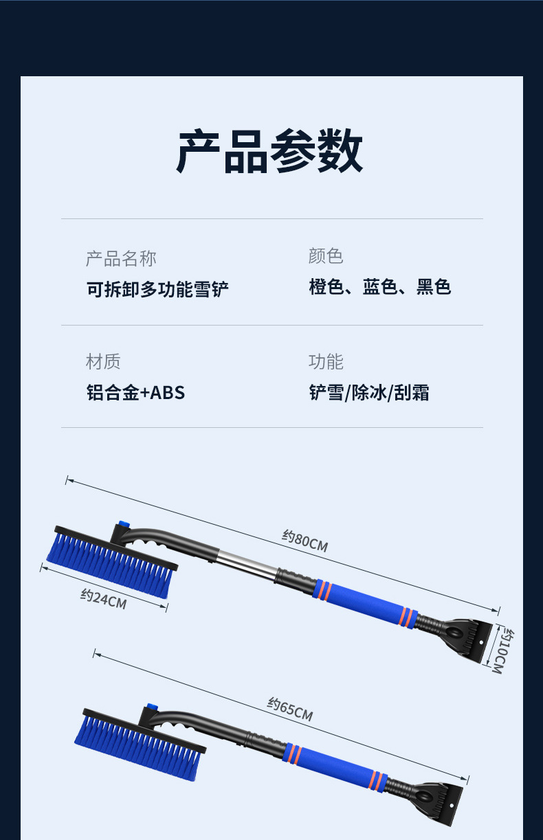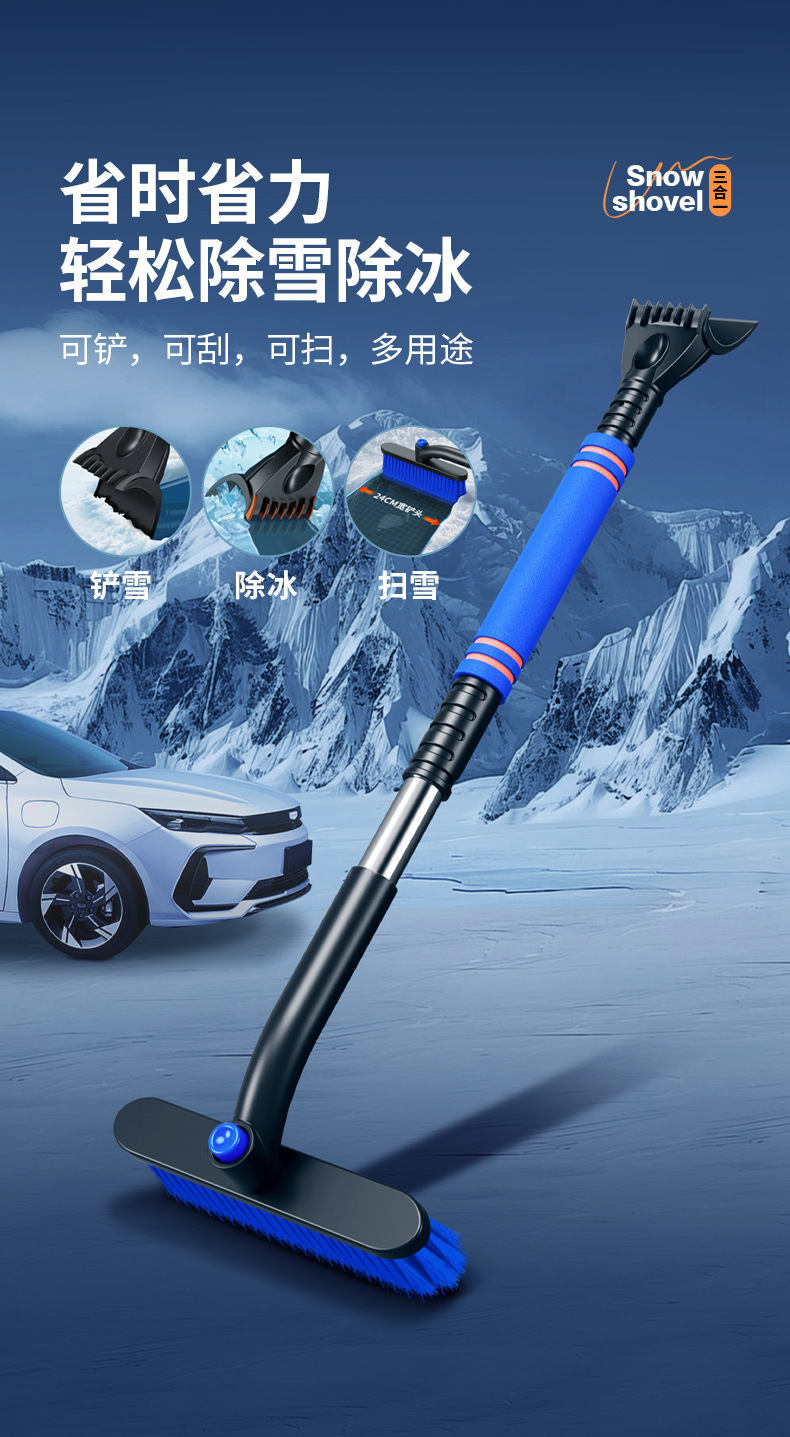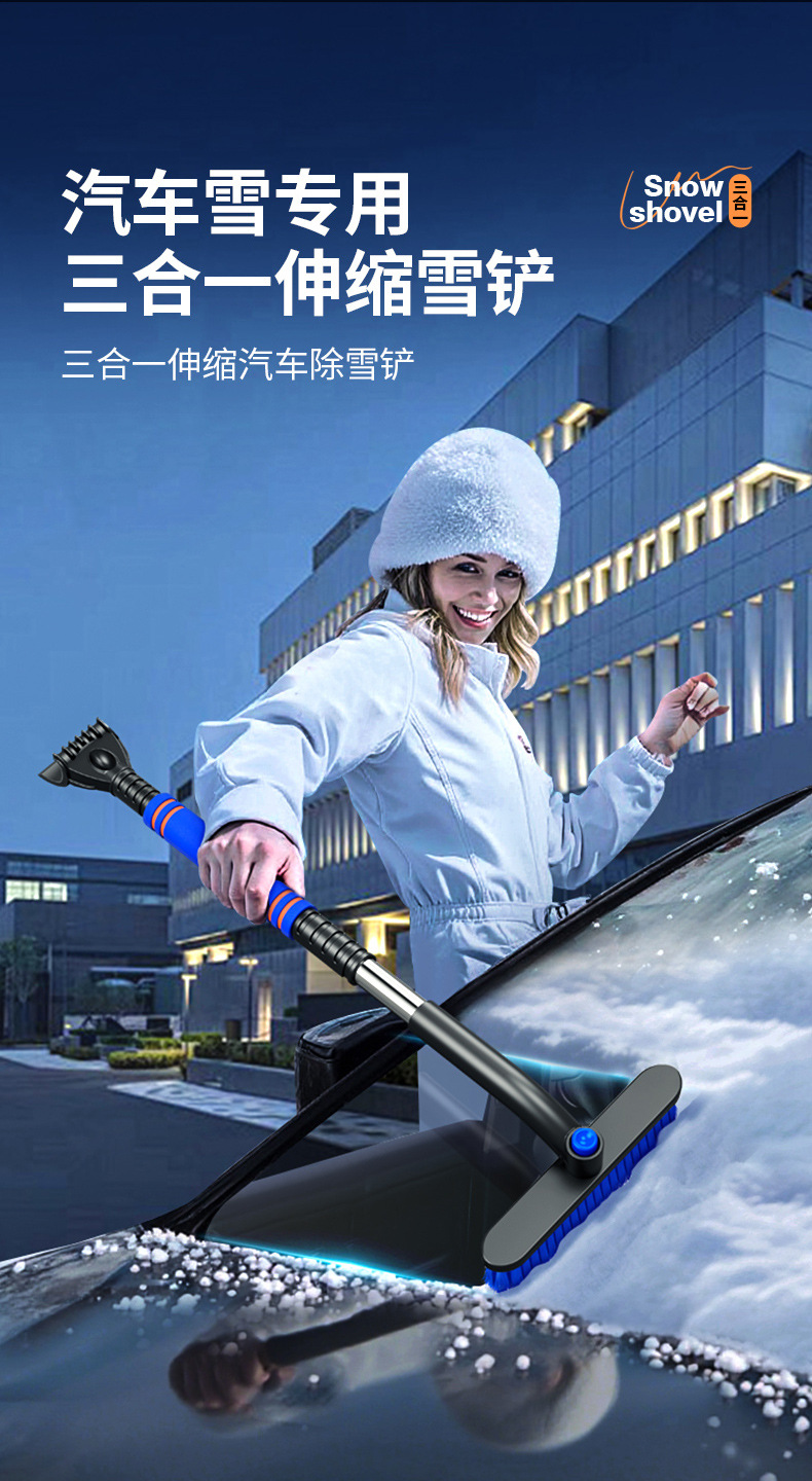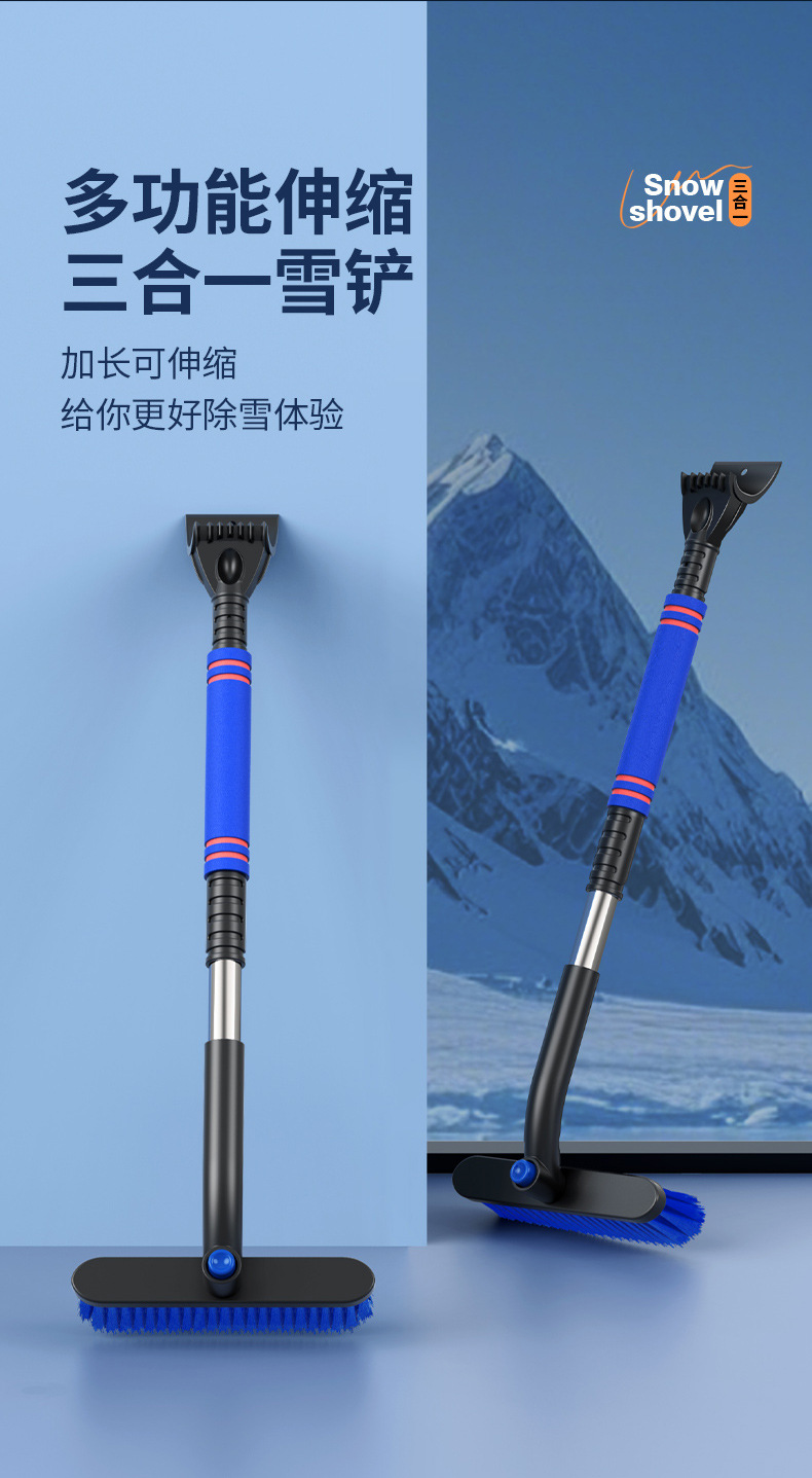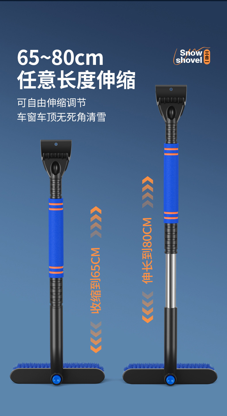 【产品特点】:可伸缩可拆卸,360°旋转,铲刷两用可防滑手杆,不伤车漆!