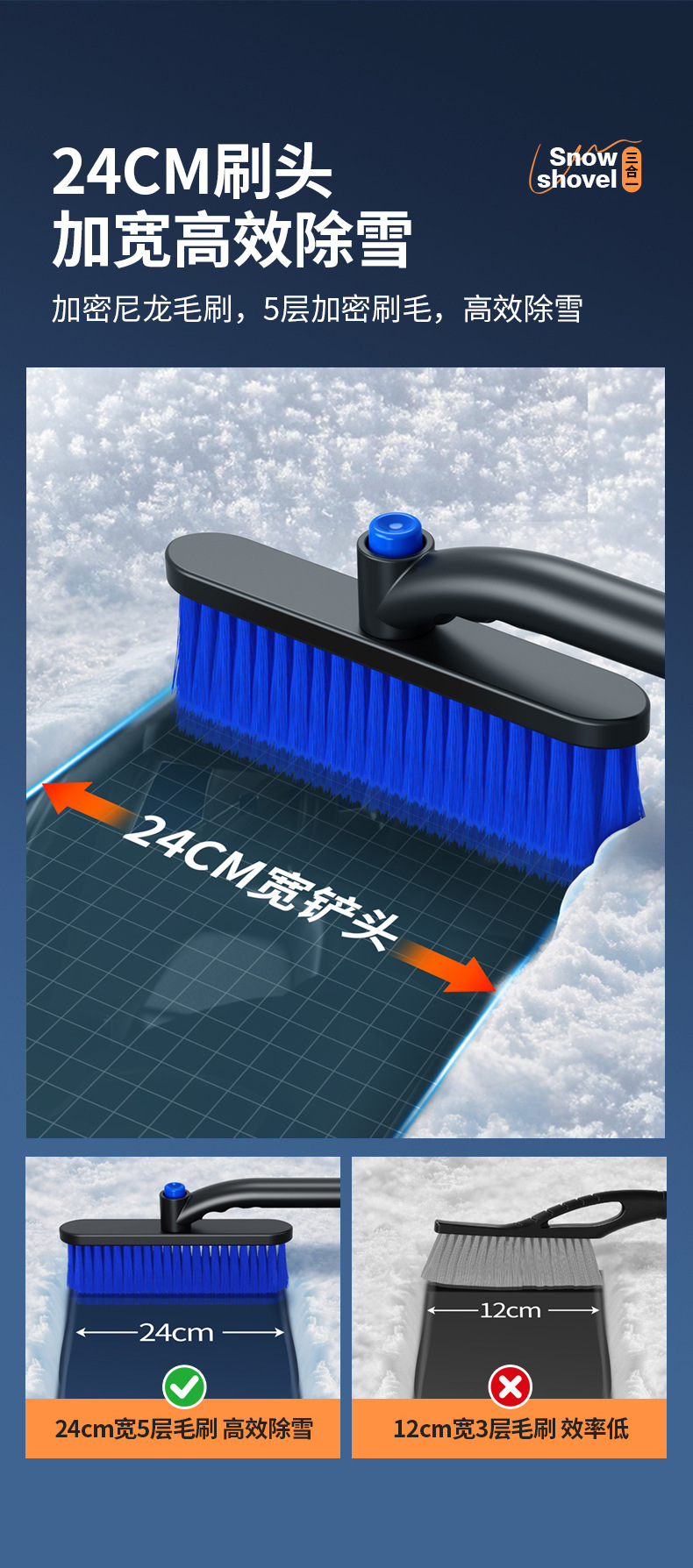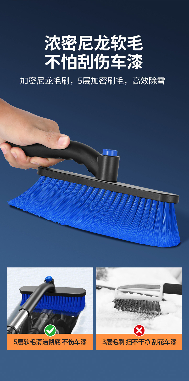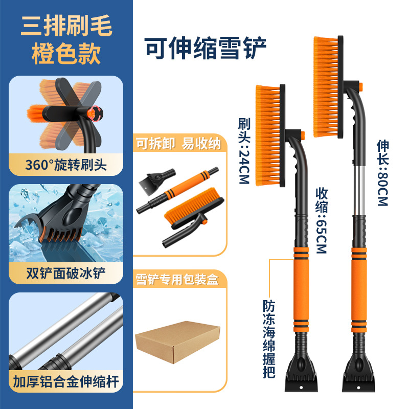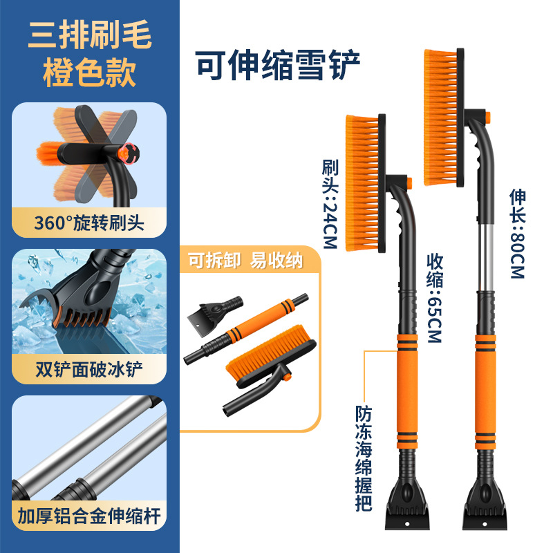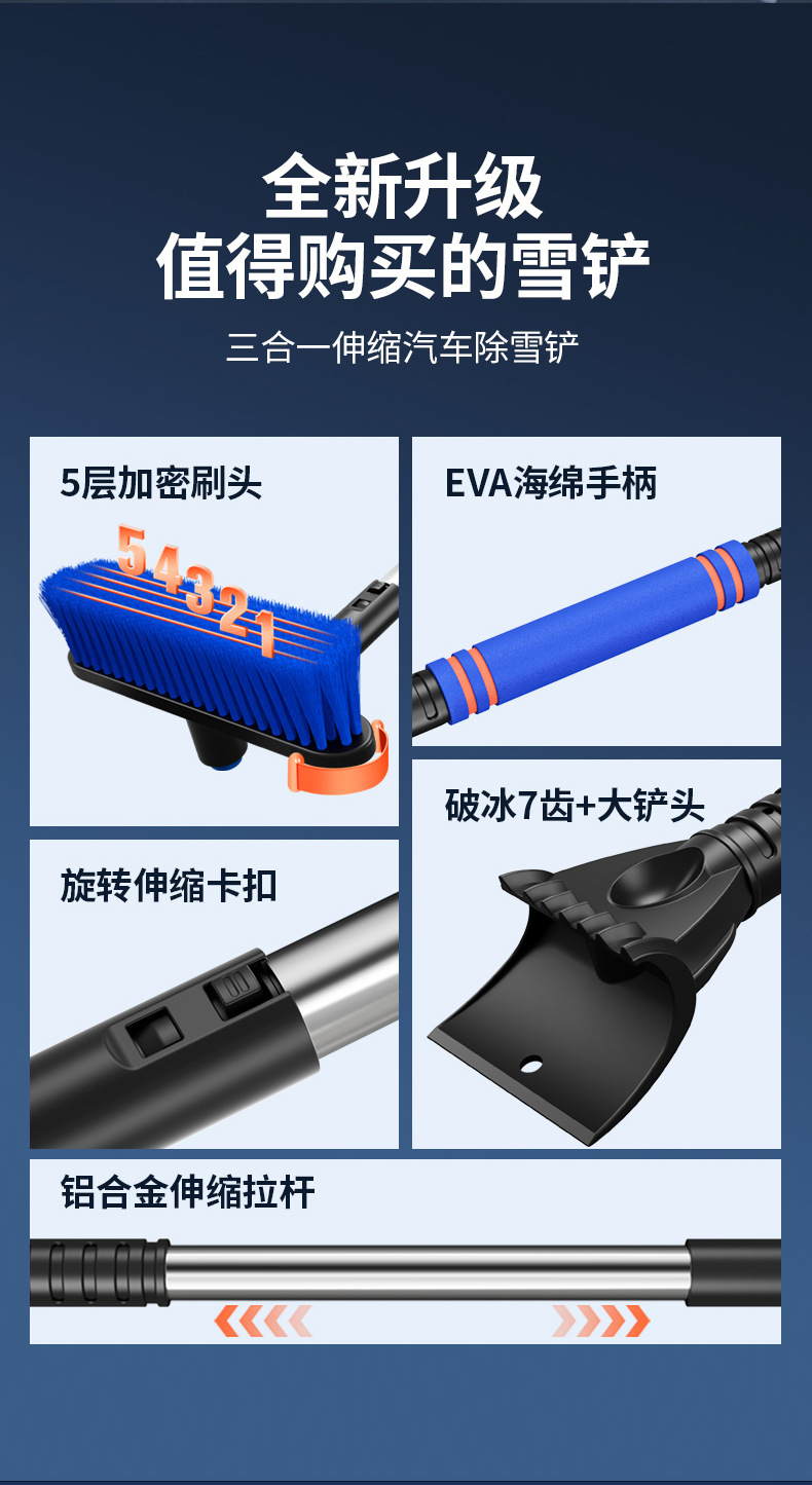 【产品特点】:可伸缩可拆卸,360°旋转,铲刷两用可防滑手杆,不伤车漆!