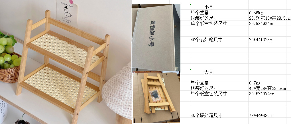 Ins 골동품 등나무 크림 컬러 더블 레이어 데스크탑 스토리지 랙 기숙사 침실 사무실 주방 컵 랙스토어 가기