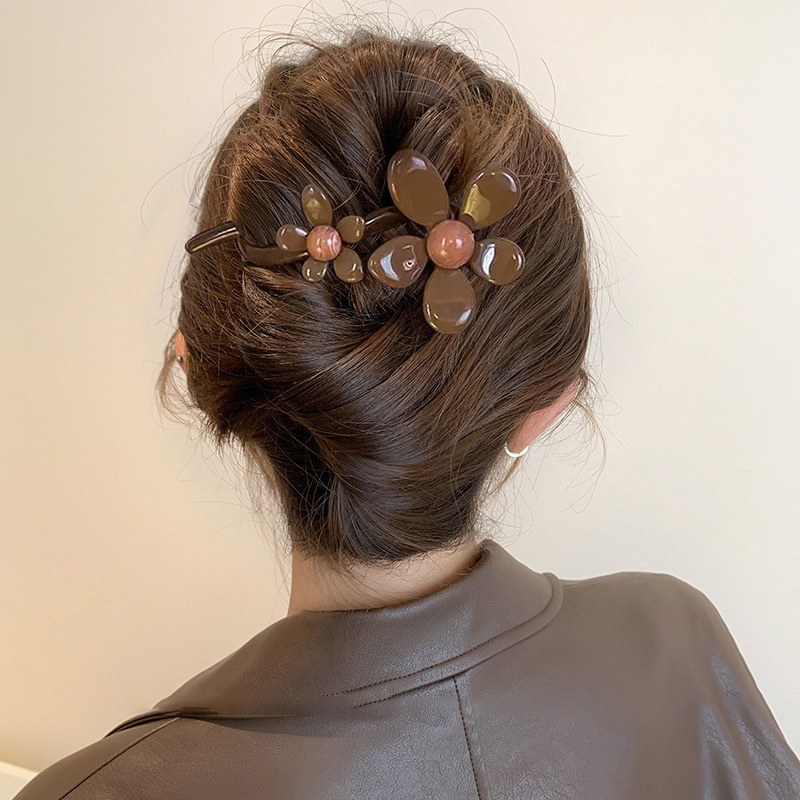 • 4#브라운 플라워 트위스트 클립 - 약 10.5cm