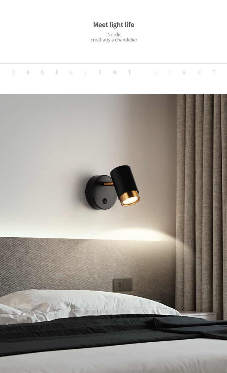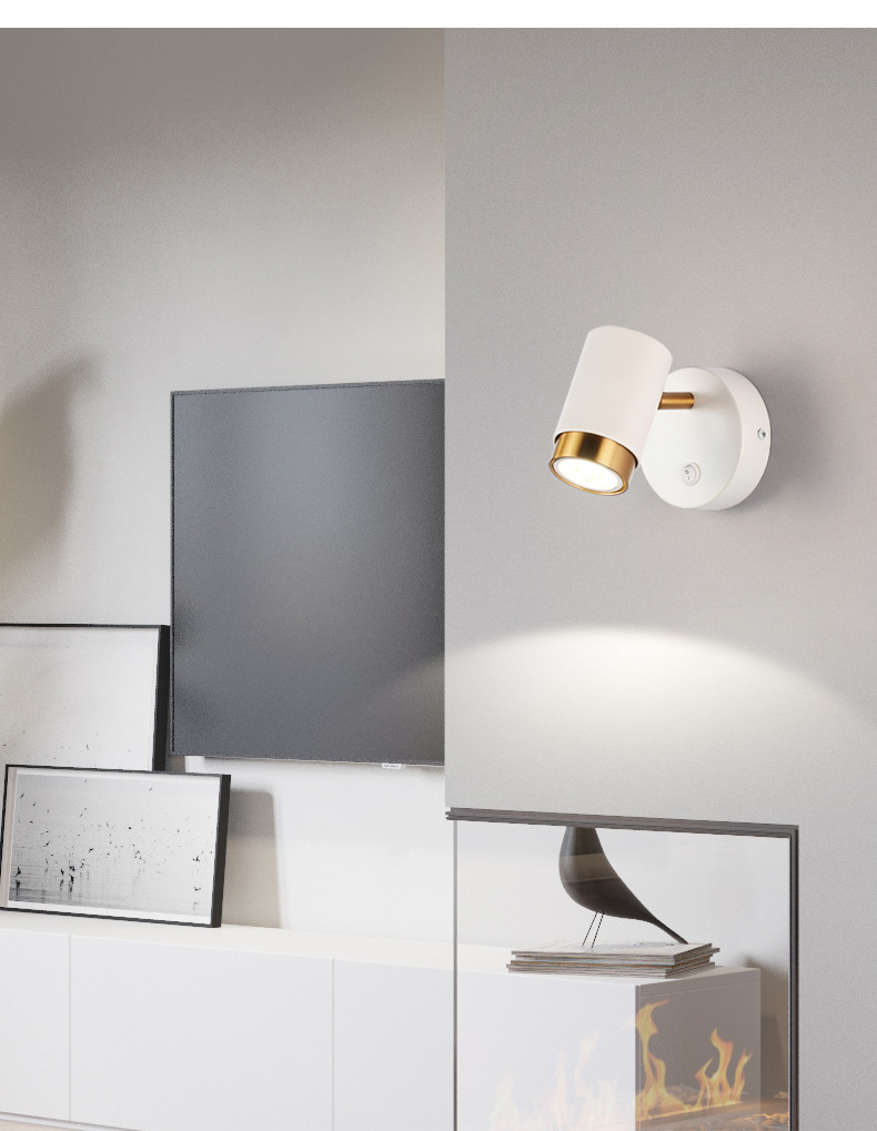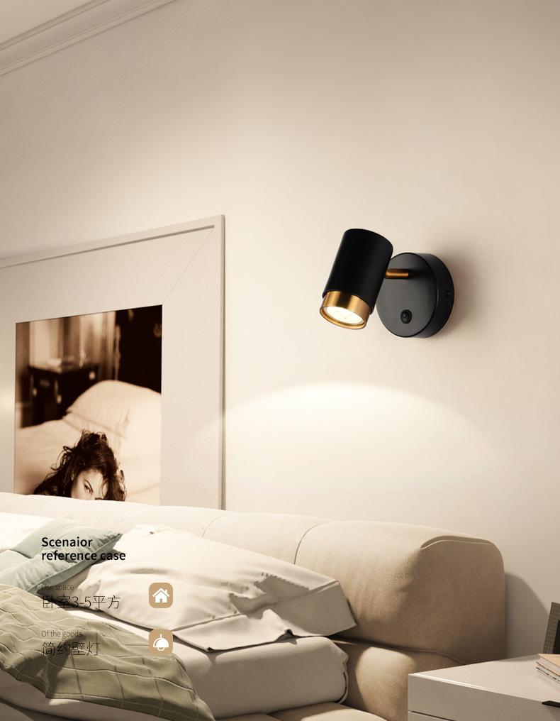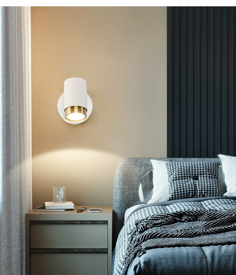 벽 램프 현대 간단한 침실 침대 옆 램프 창조적 인 배경 벽 LED 북유럽 거실 스위치 회전 벽 램프