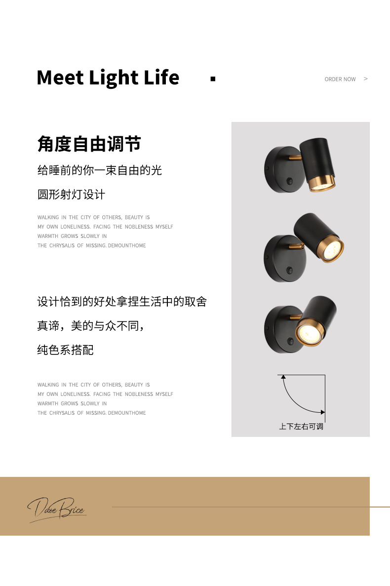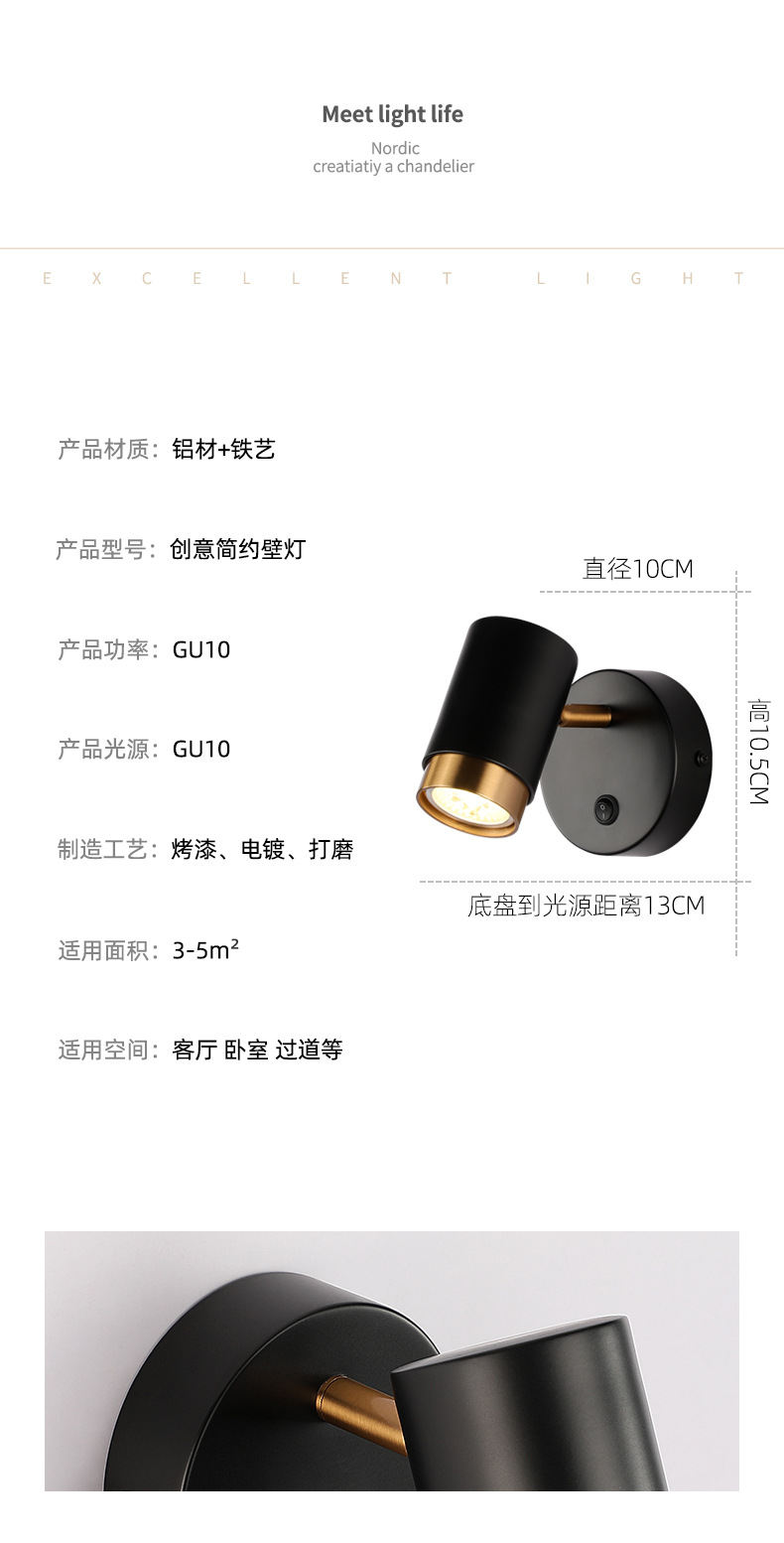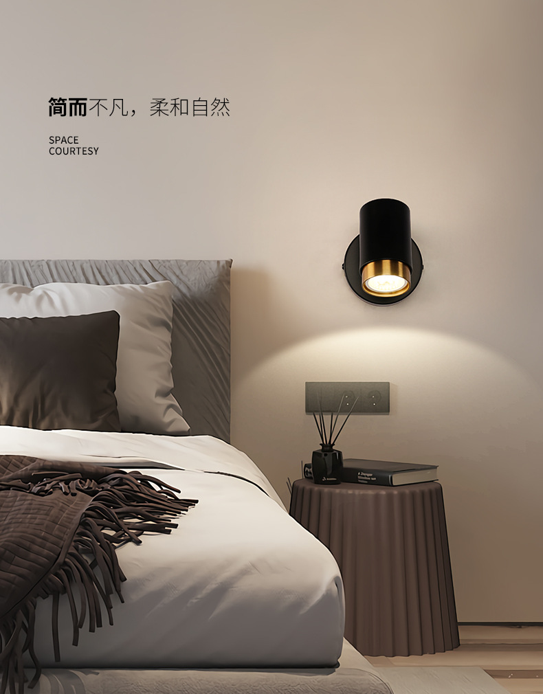 벽 램프 현대 간단한 침실 침대 옆 램프 창조적 인 배경 벽 LED 북유럽 거실 스위치 회전 벽 램프