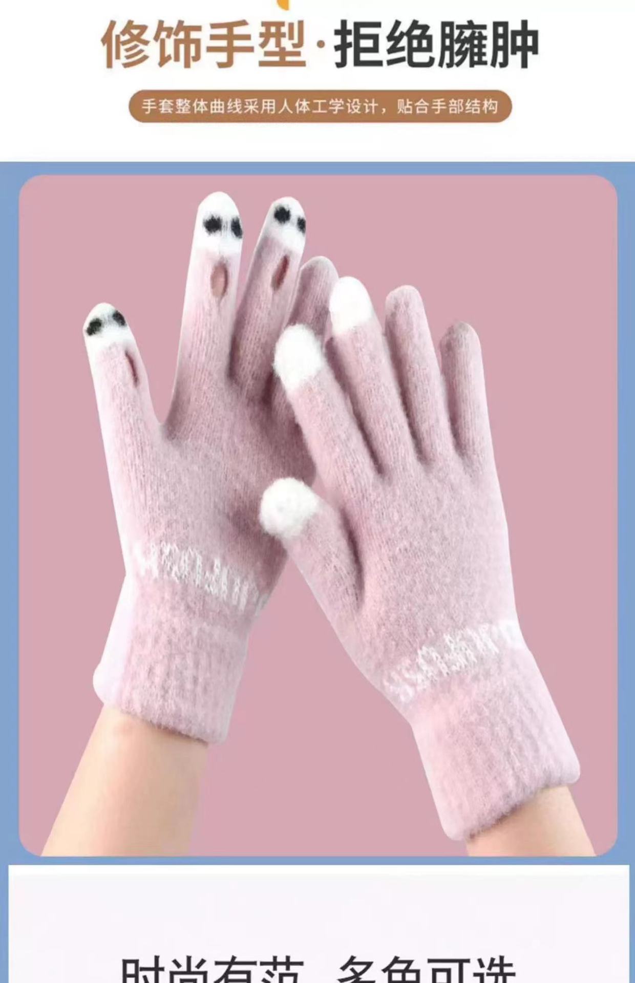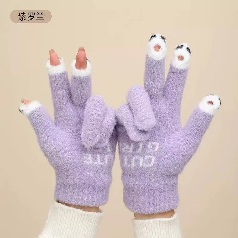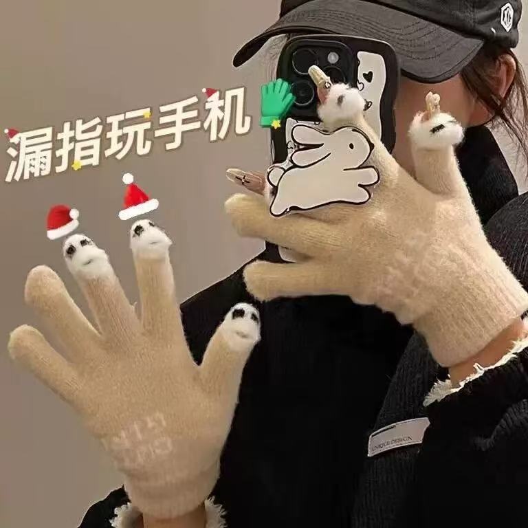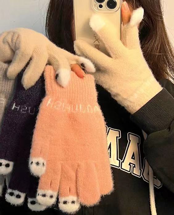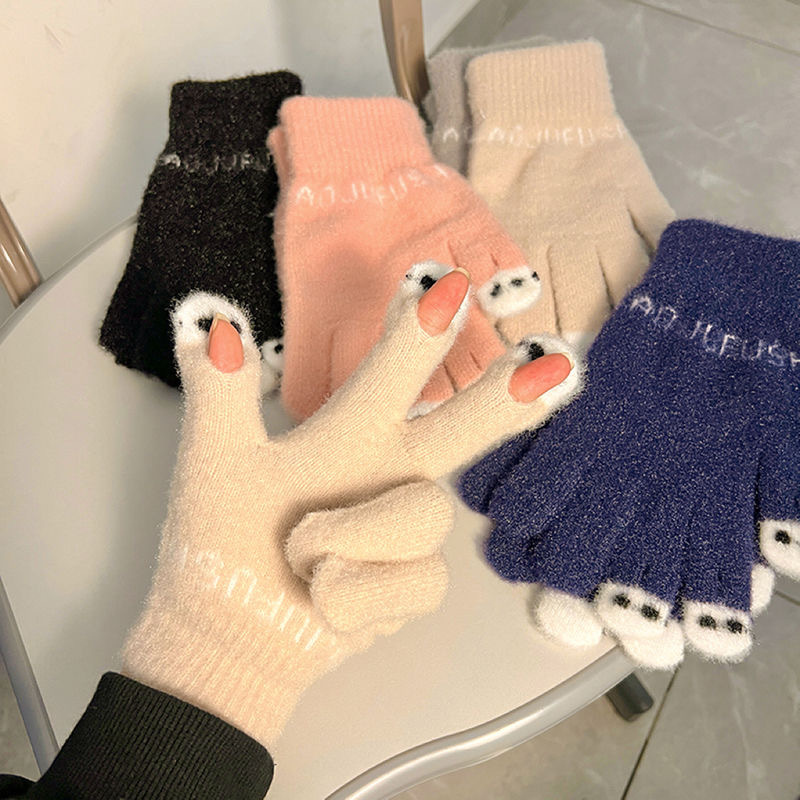 니트 울 따뜻한 장갑 귀여운 가을과 겨울 방한 기모 겨울 학생 장갑 터치 스크린 노출 된 손가락을 타고 다섯 손가락