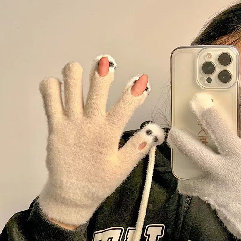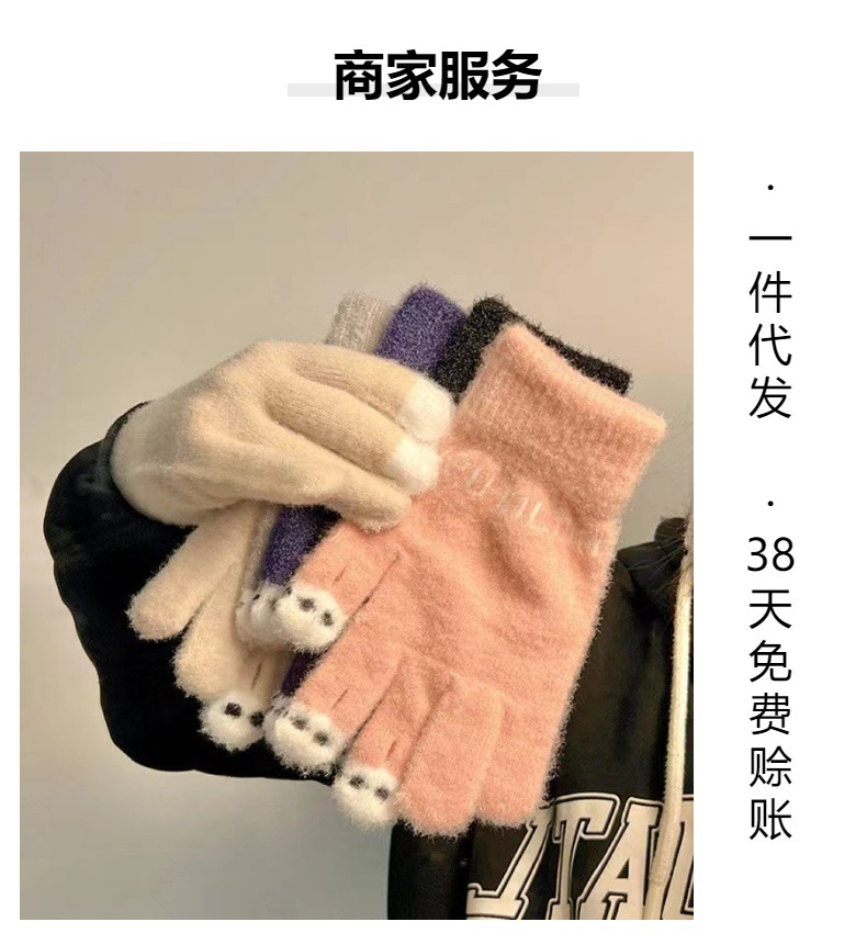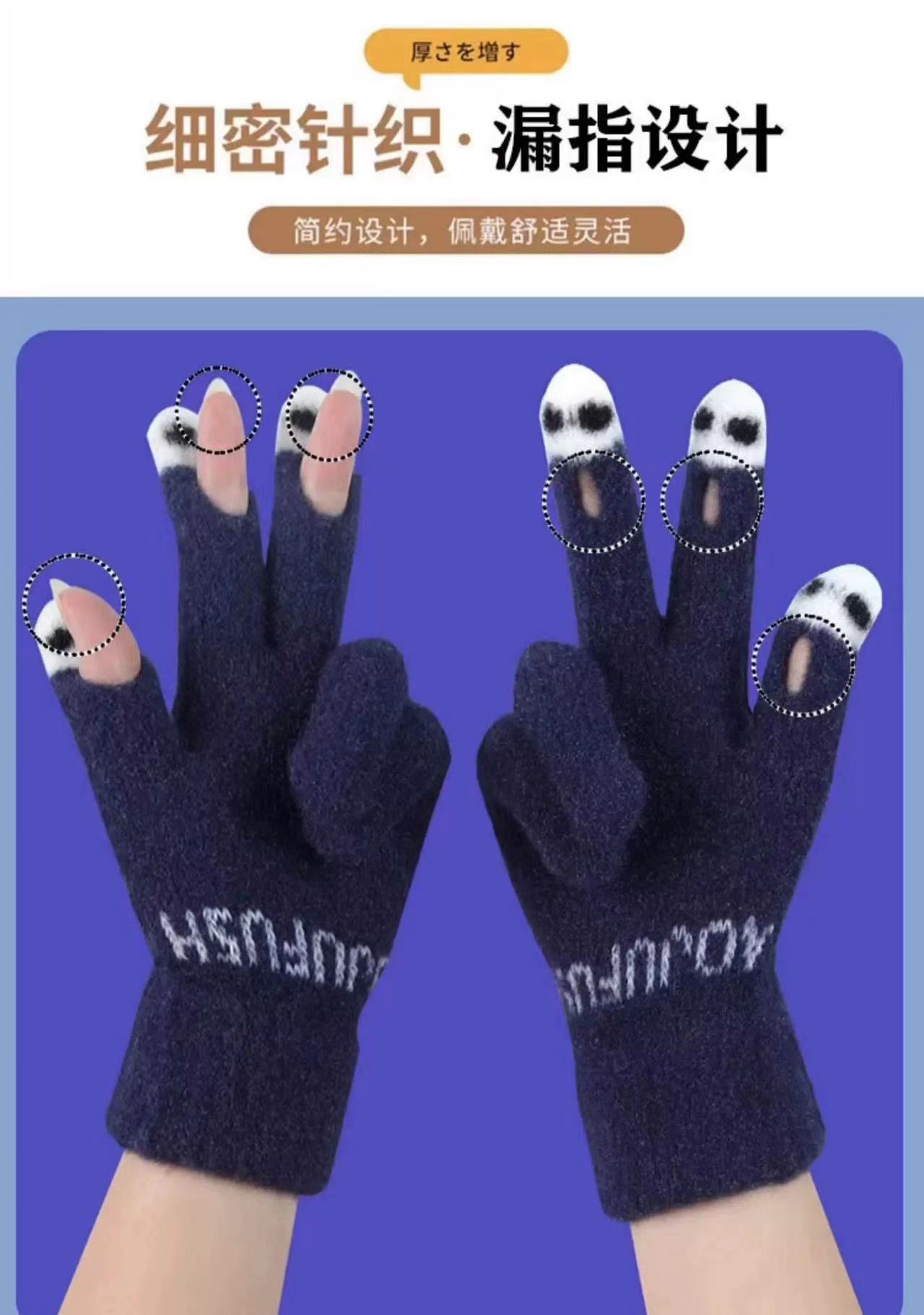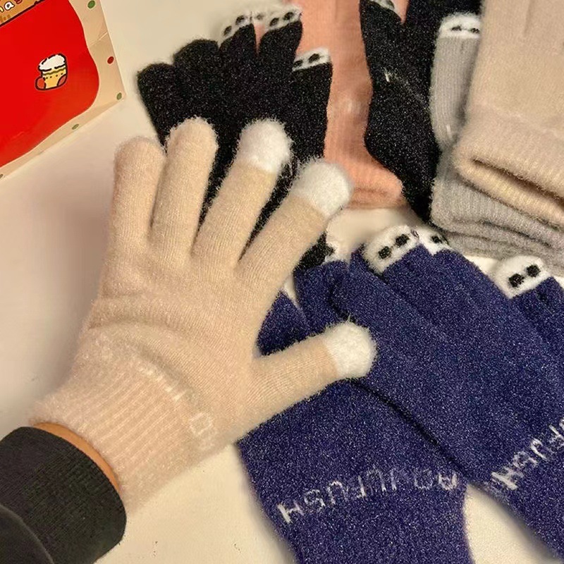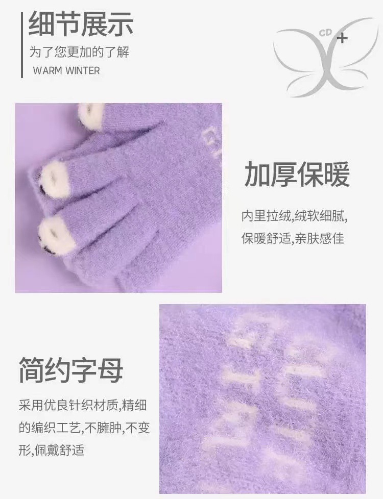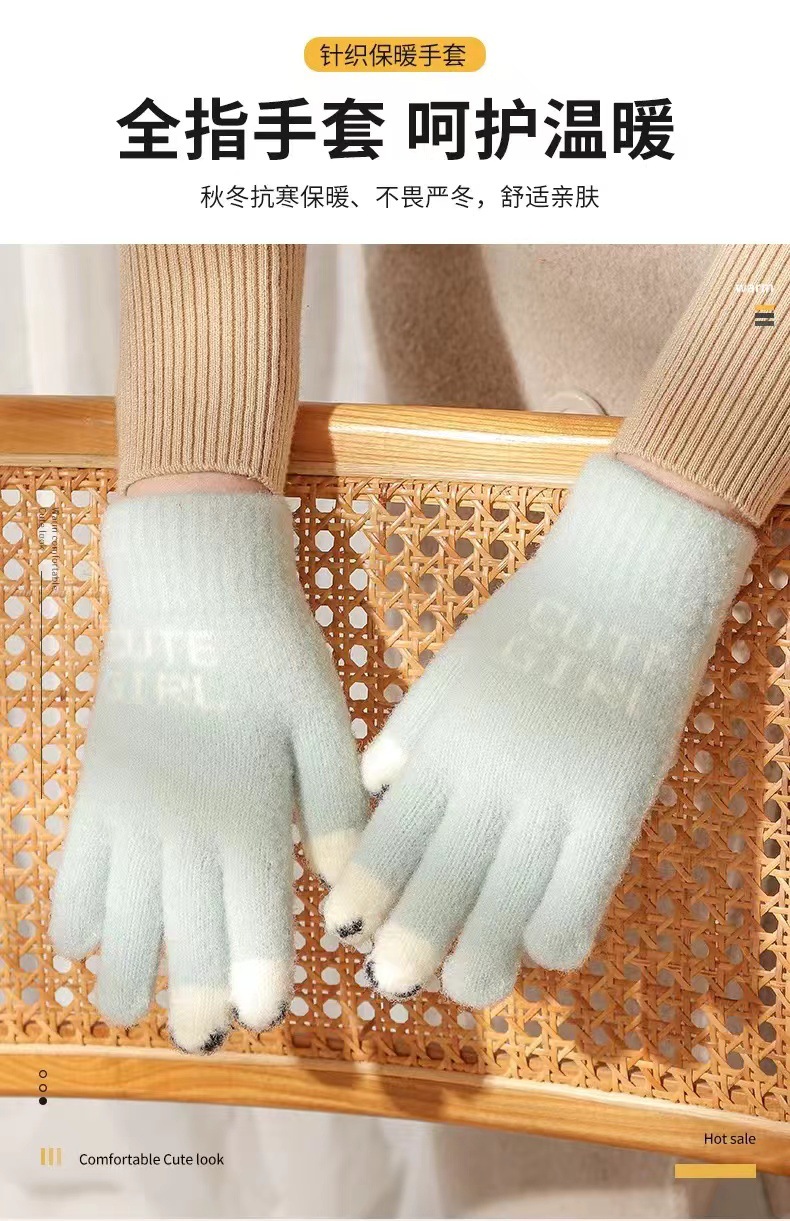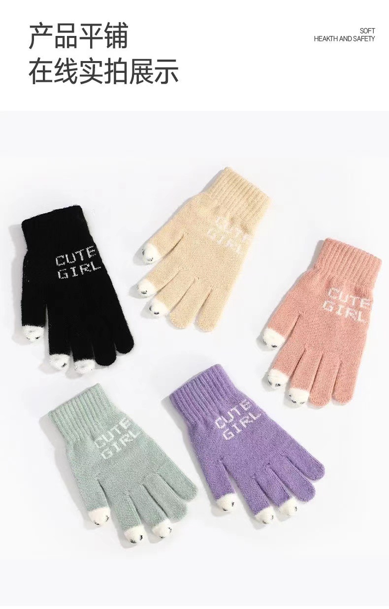 니트 울 따뜻한 장갑 귀여운 가을과 겨울 방한 기모 겨울 학생 장갑 터치 스크린 노출 된 손가락을 타고 다섯 손가락스토어 가기