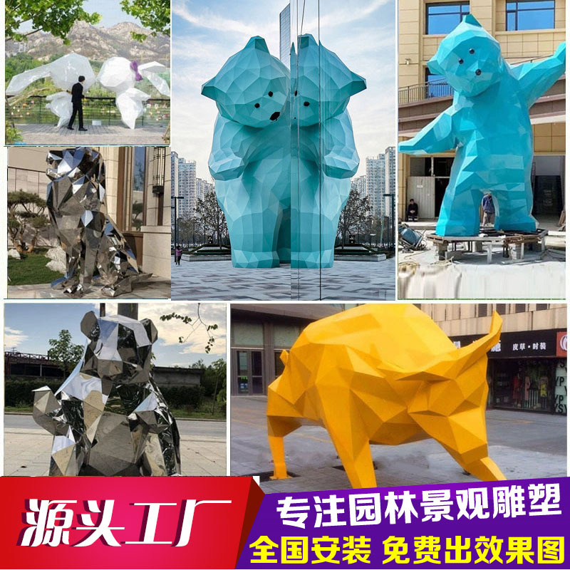 대형 스테인레스 스틸 기하학적 동물 조각 만화 사이버 레드 팬더 토끼 사슴 창조적 인 금속 아름다움 첸 풍경 장식품스토어 가기