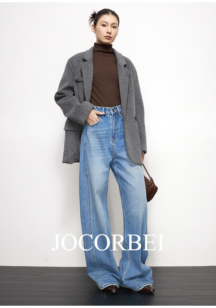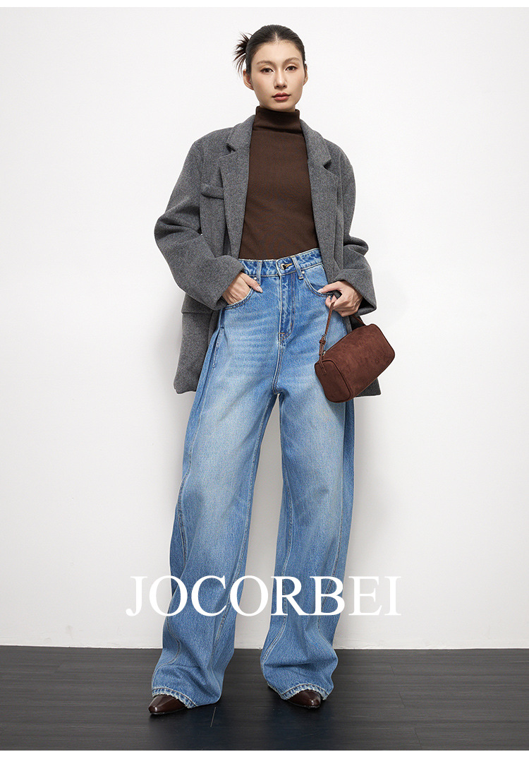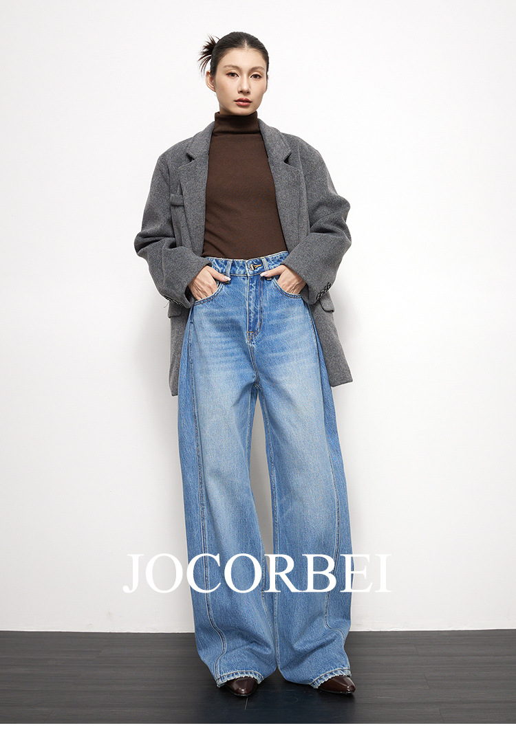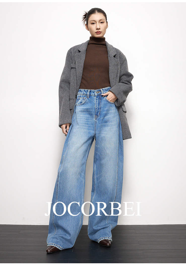 JOCORBEI [게으르고 편안한] 와이드 레그 청바지 여성용 루즈 슬리밍 캐주얼 올드 머니 스타일 바지스토어 가기